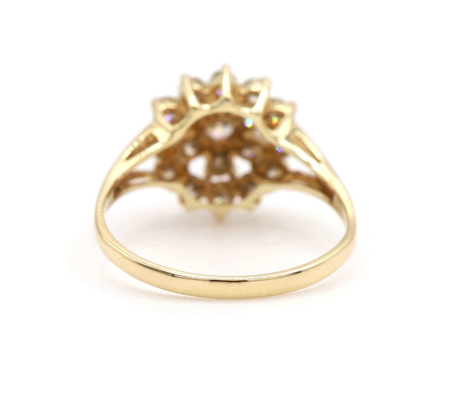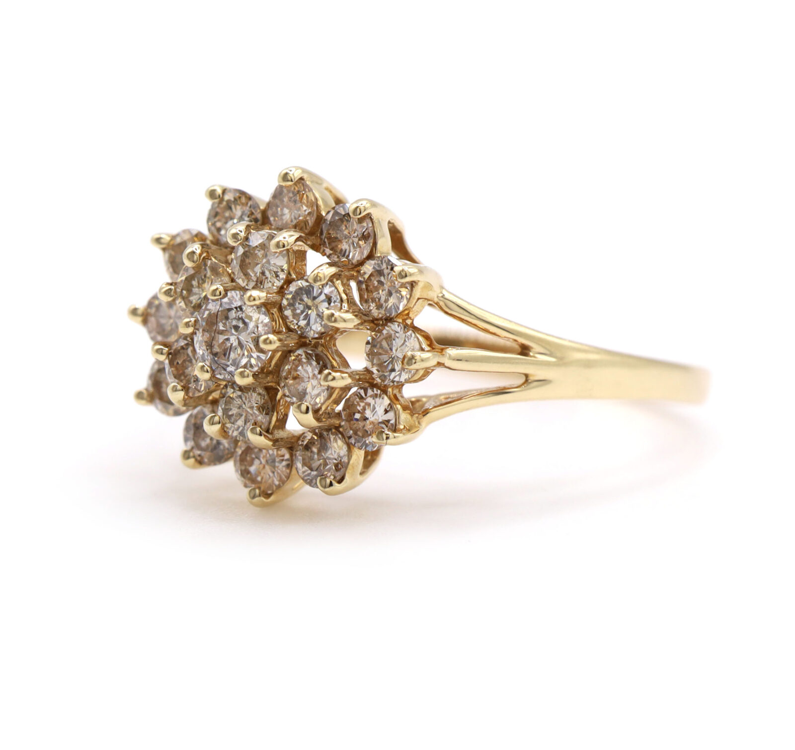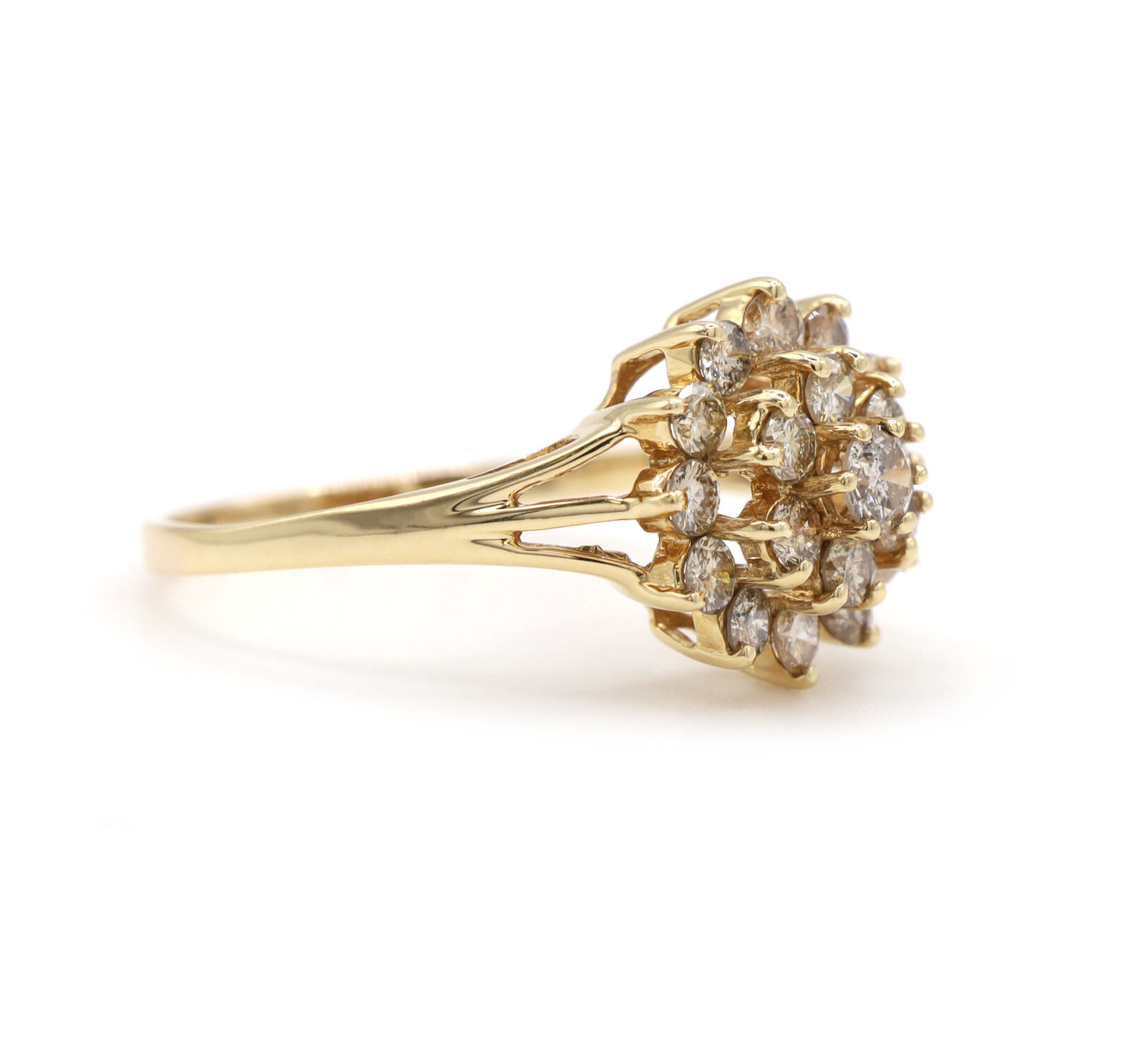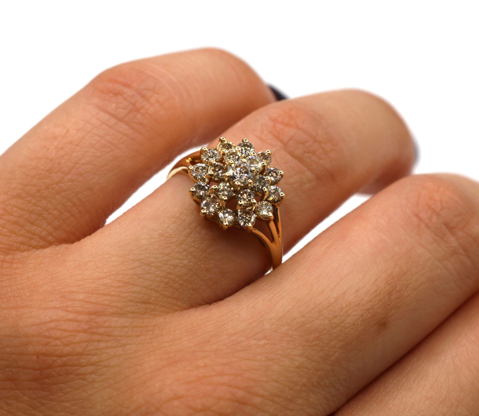 Material: 14k Yellow Gold Gemstone: Natural Diamond Carat Weight: Approximately 1.15 Carat Diamond Cut: Round Clarity: I1 Color: I Size: 7.75 Front Width: 12.3mm Weight: 2.6 Grams