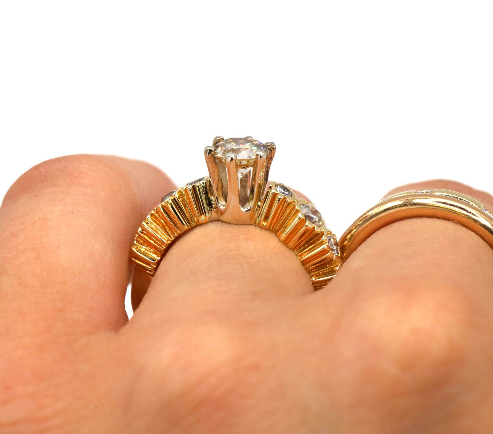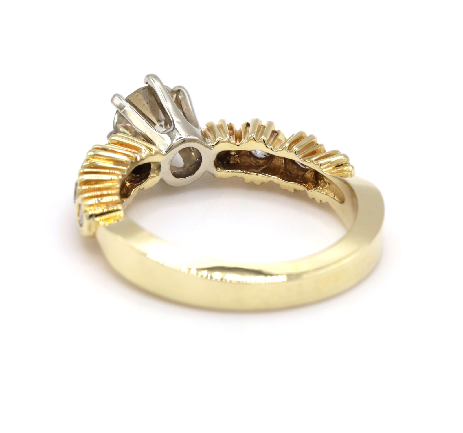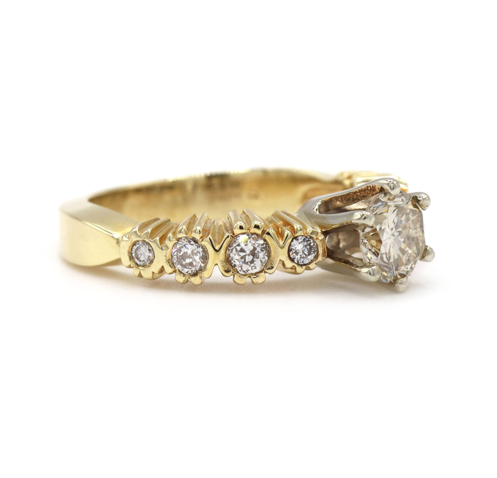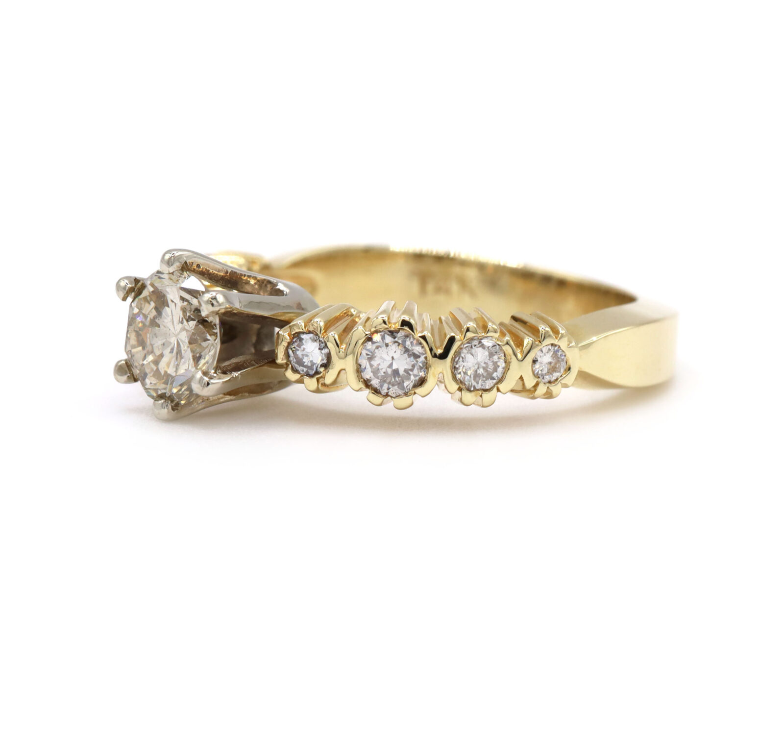 1.15CT Diamond Six Prong 14K Yellow Gold Bezel Set White Prong Engagement Ring