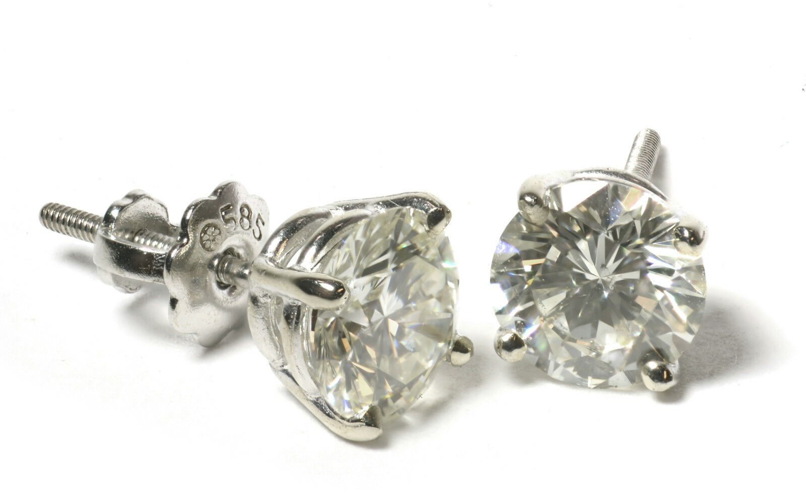 condition:new earring approximate diamond color:h/i earring approximate diamond clarity:si1/si2 earring approximate diamond carat weight:1.5 earring backing:screw backing earring stone type:diamond gender:men’s, women’s jewelry brand:fine jewelry jewelry type:earrings material:14k white gold