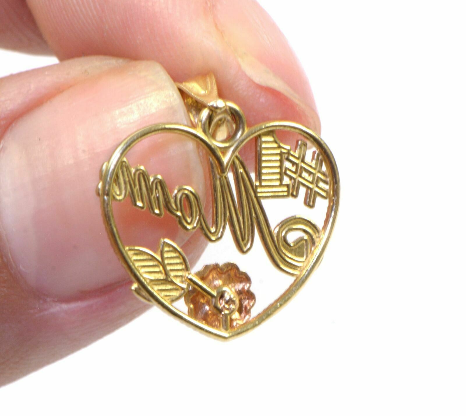 this creative #1 mom necklace charm is crafted in 14k yellow gold. It weighs 1.18 grams.the widest part is 0.7 of an inch, and from top to bottom is 0.6 of an inch. This pendant makes a classic gift.