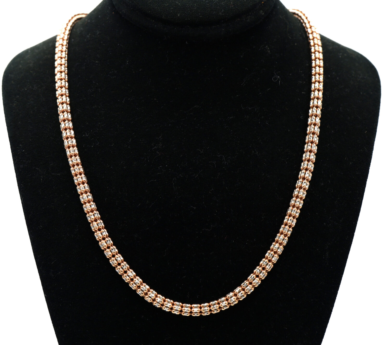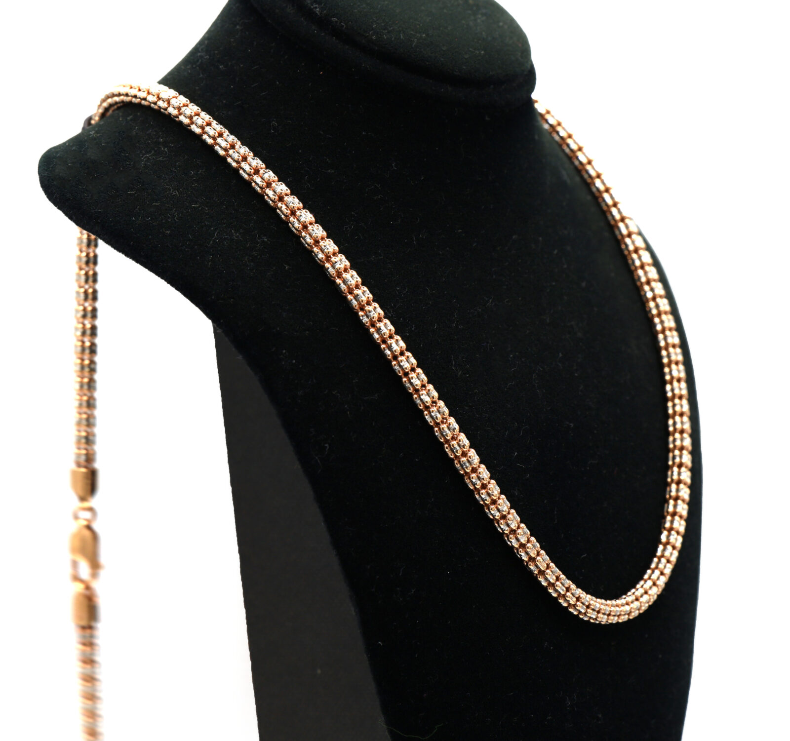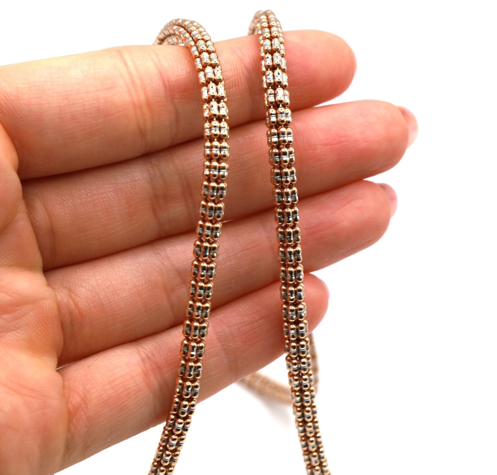 Material: 10k Rose and White Gold Type: Rope Link Length: 26 Inches Width: 4mm Weight: 31 Grams