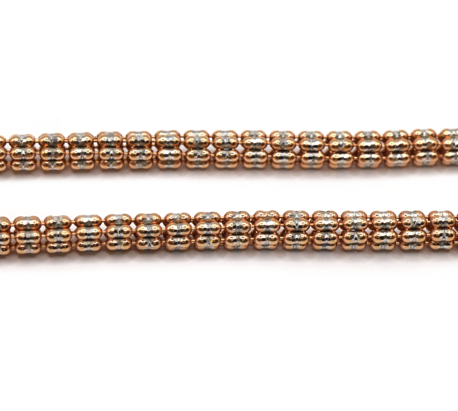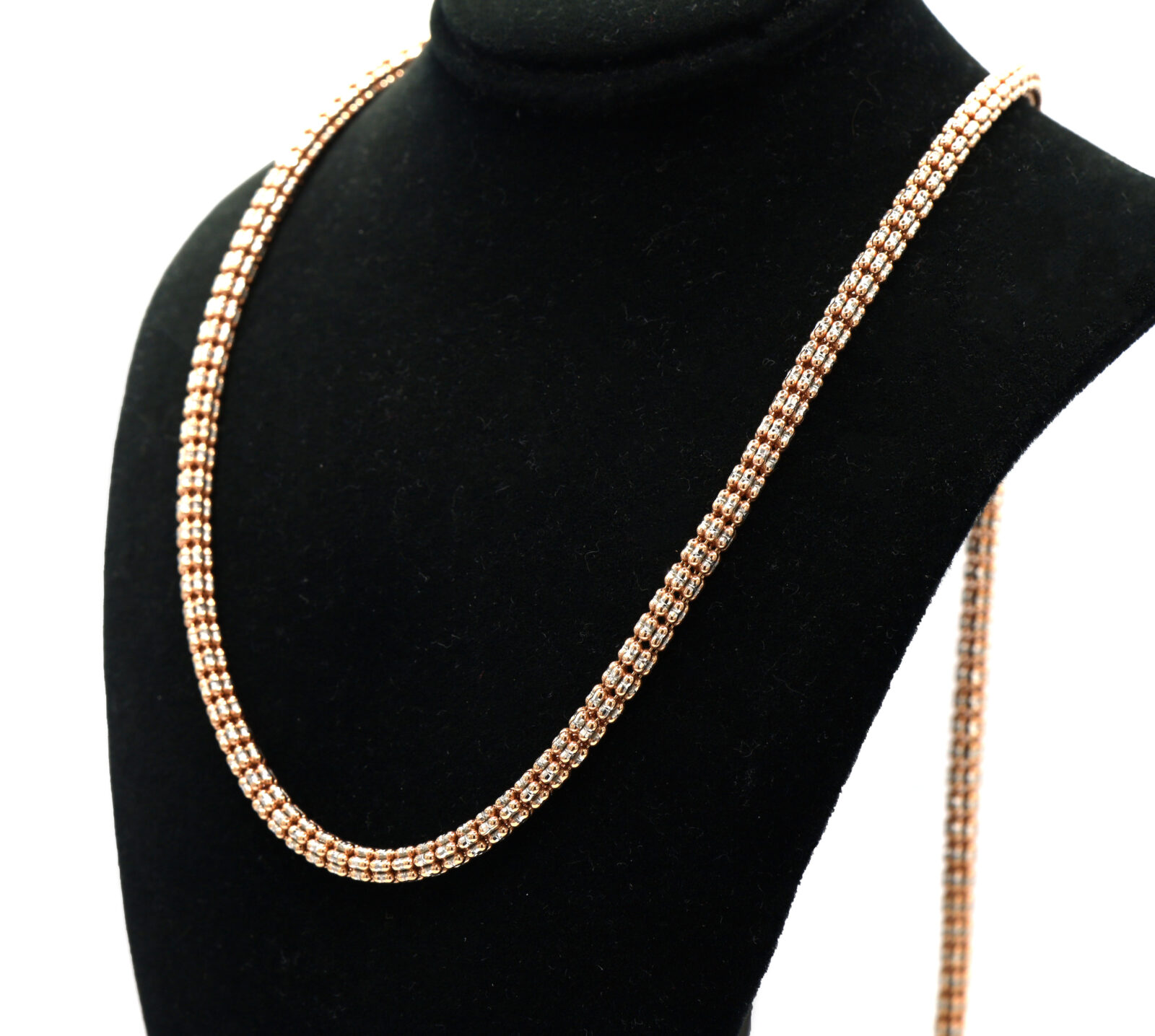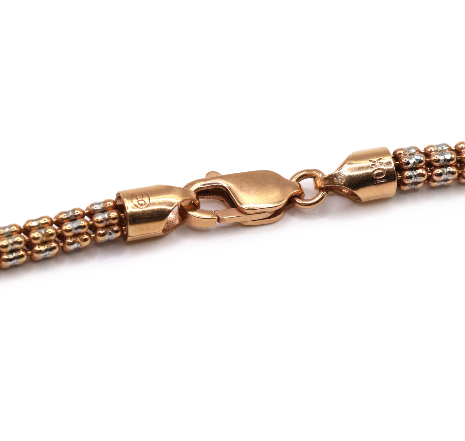 Material: 10k Rose and White Gold Type: Rope Link Length: 26 Inches Width: 4mm Weight: 31 Grams