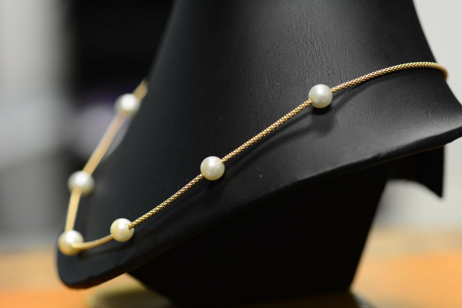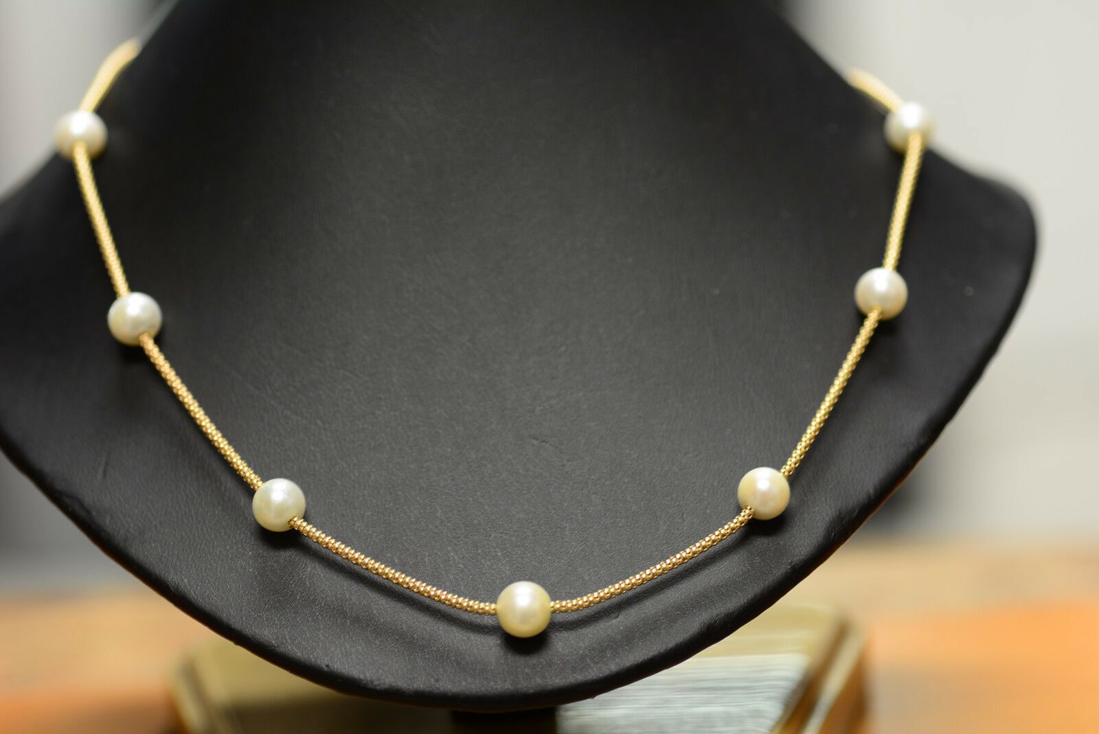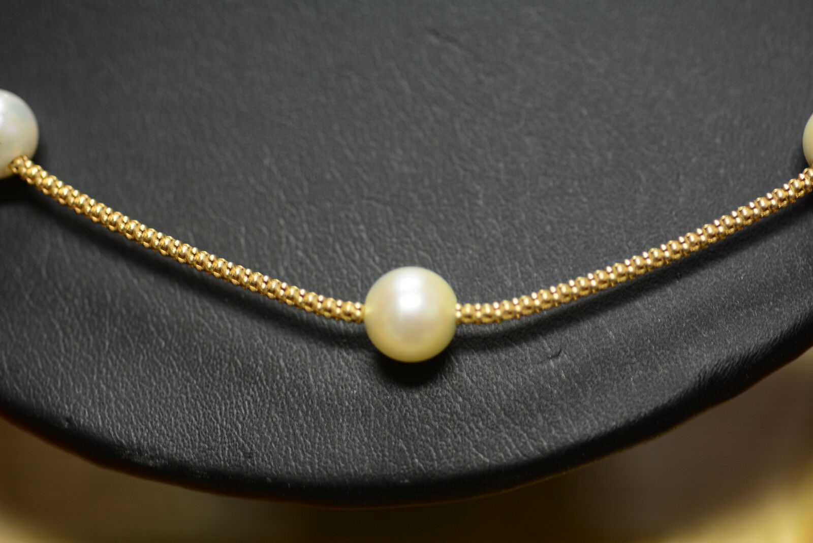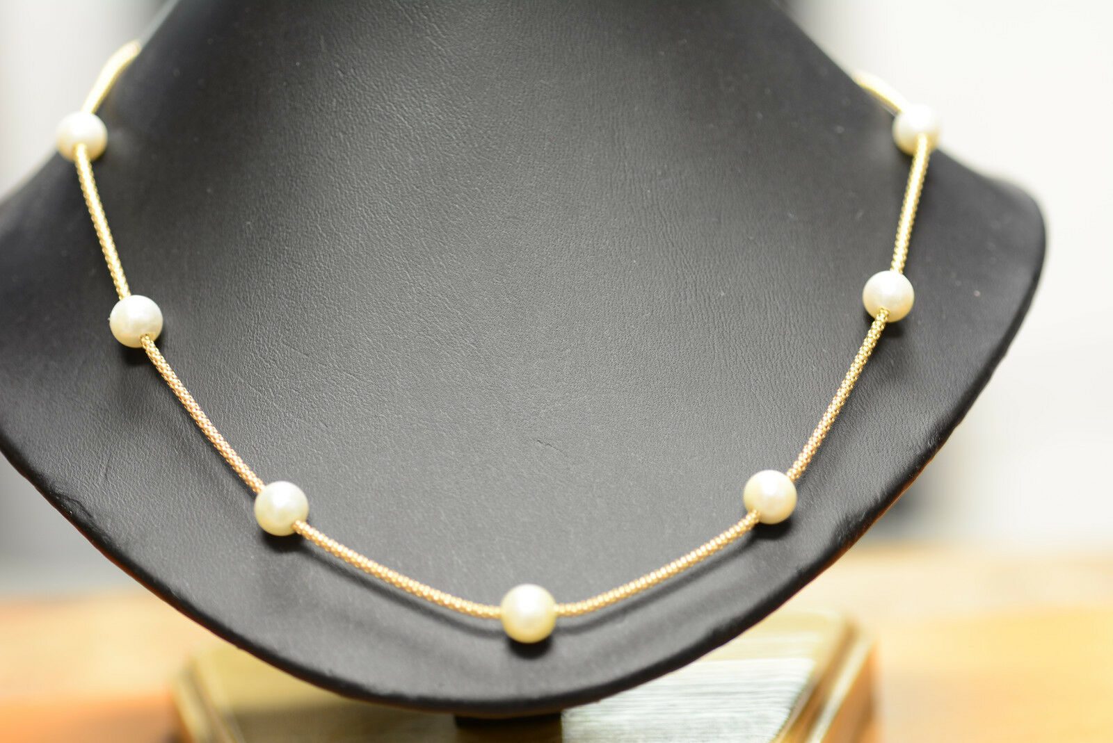 14k yellow gold freshwater cultured pearl 7mm necklace.