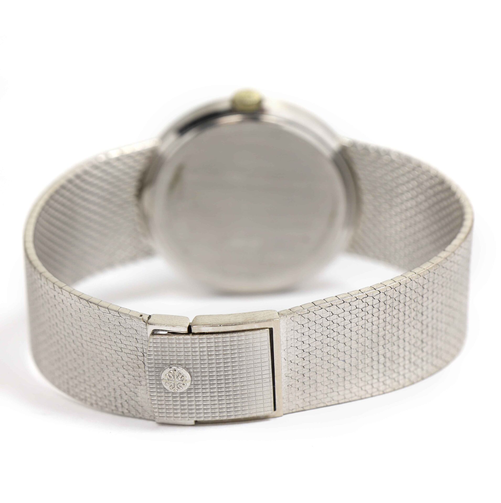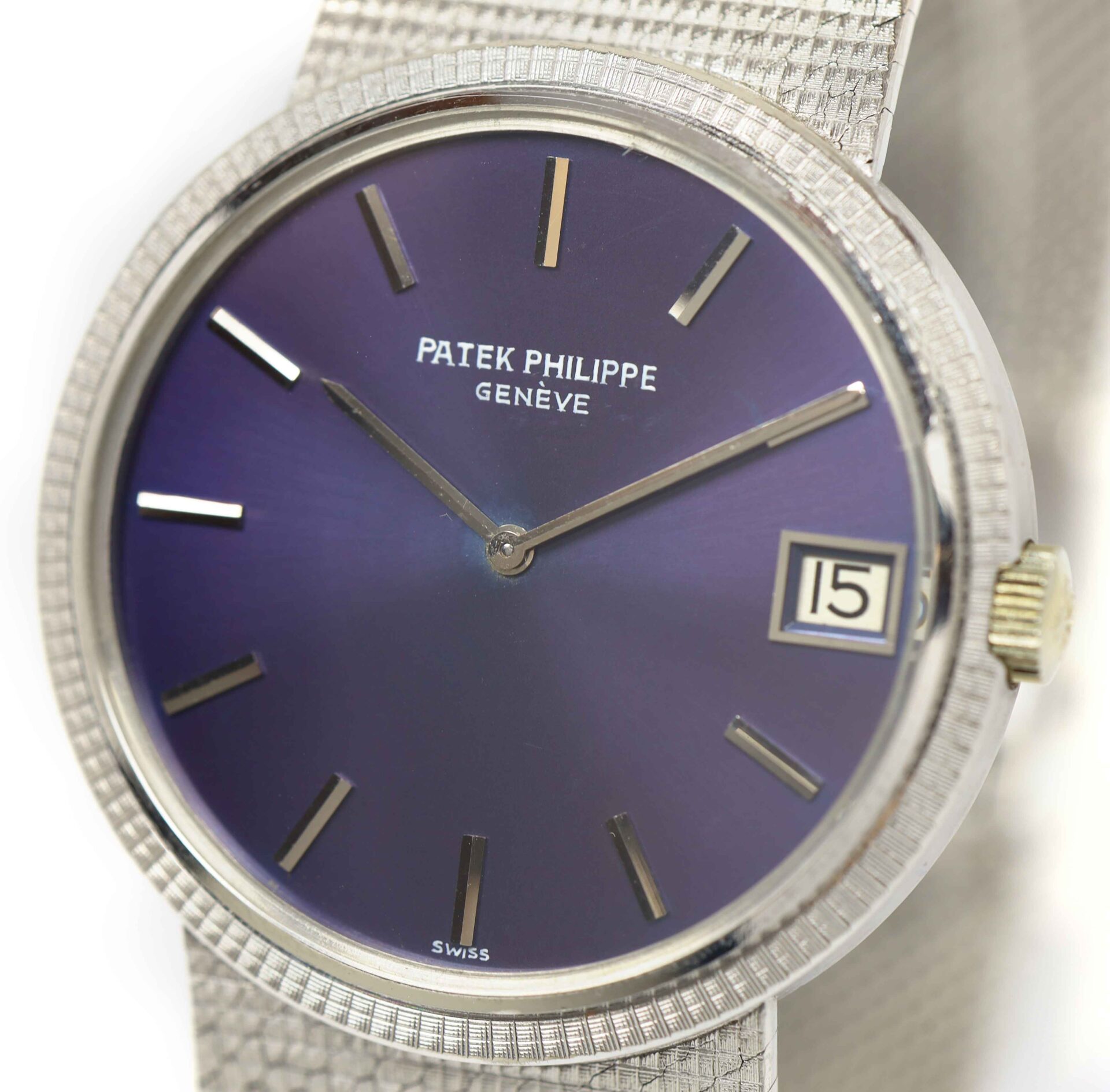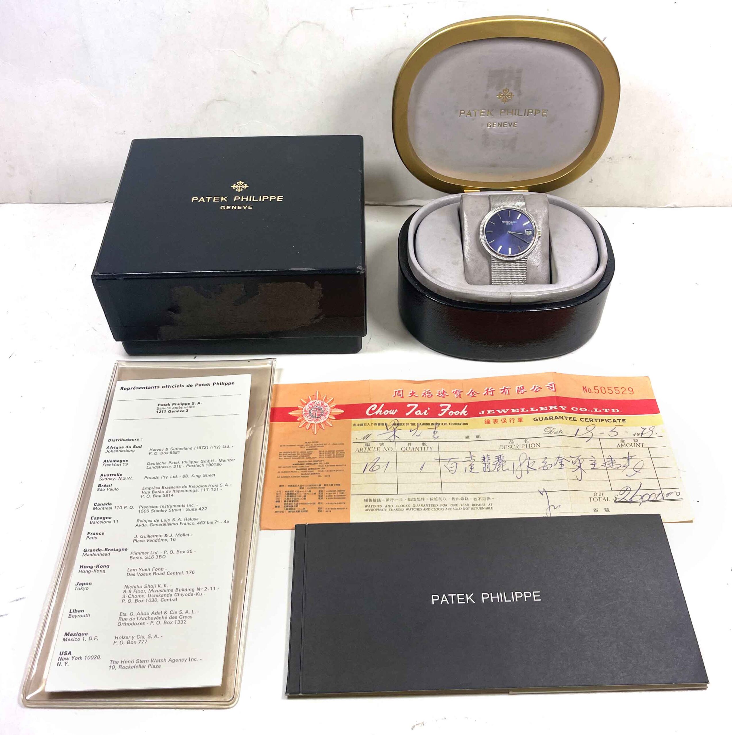 THIS PATEK IS IN AMAZING UNPOLISHED CONDITION FOR THE AGE OF THE WATCH AND COMES WITH ITS BOX, BOOKLETS, AND ORIGINAL PURCHASE RECEIPT DATED MAY 18TH, 1978 AS SHOWN IN THE PICTURES ATTACHED. THIS WATCH ORIGINALLY CAME WITH A BLUE DIAL, BUT NATURALLY AGED IN...