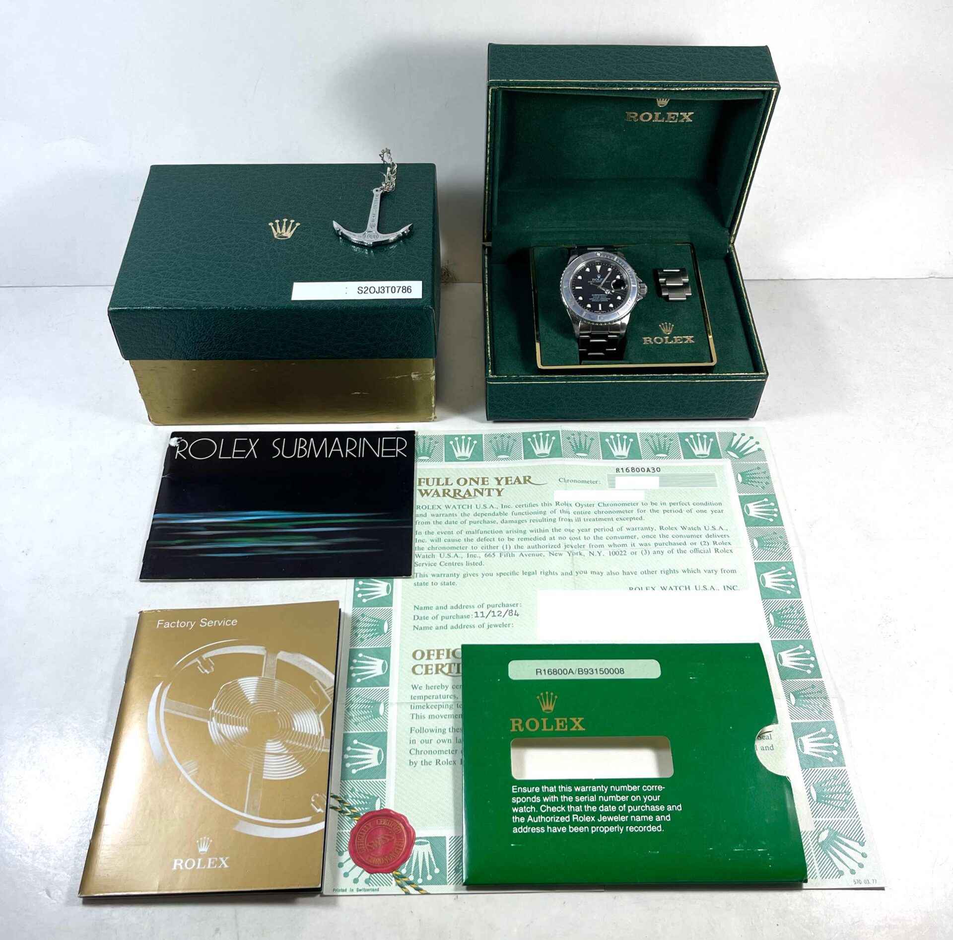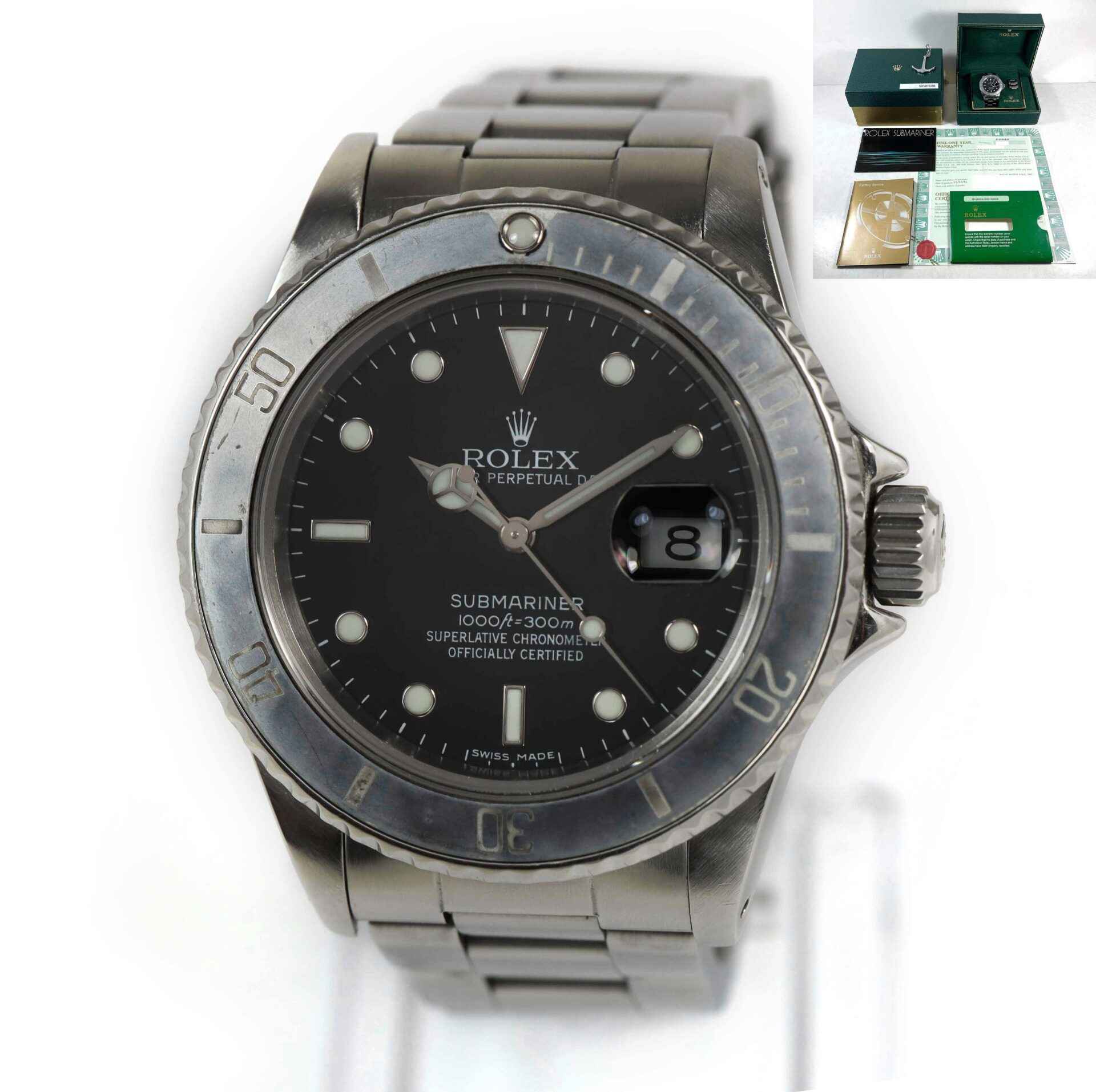 Read Morethis rolex is in excellent condition showing some minor signs of wear on the bracelet and case consistent with preowned watches. This watch comes with its box, booklets, spare links, rolex anchor, and warranty paper dated november 12th, 1984 as shown in the pictures attached. The dial was replaced during a factory service at one point, otherwise the watch looks to be all original.