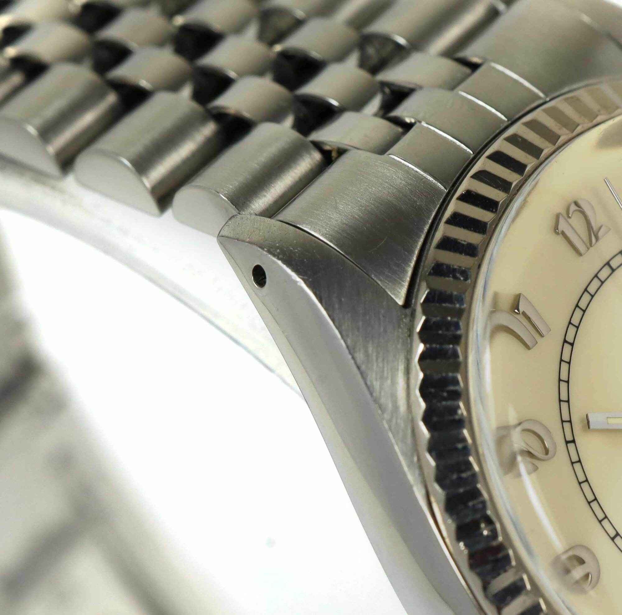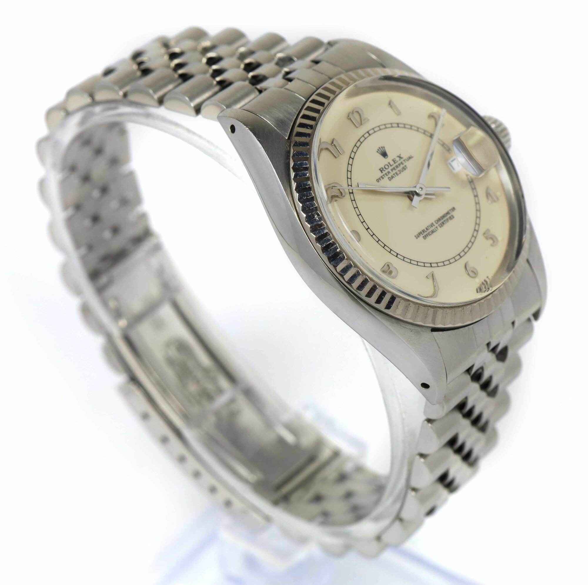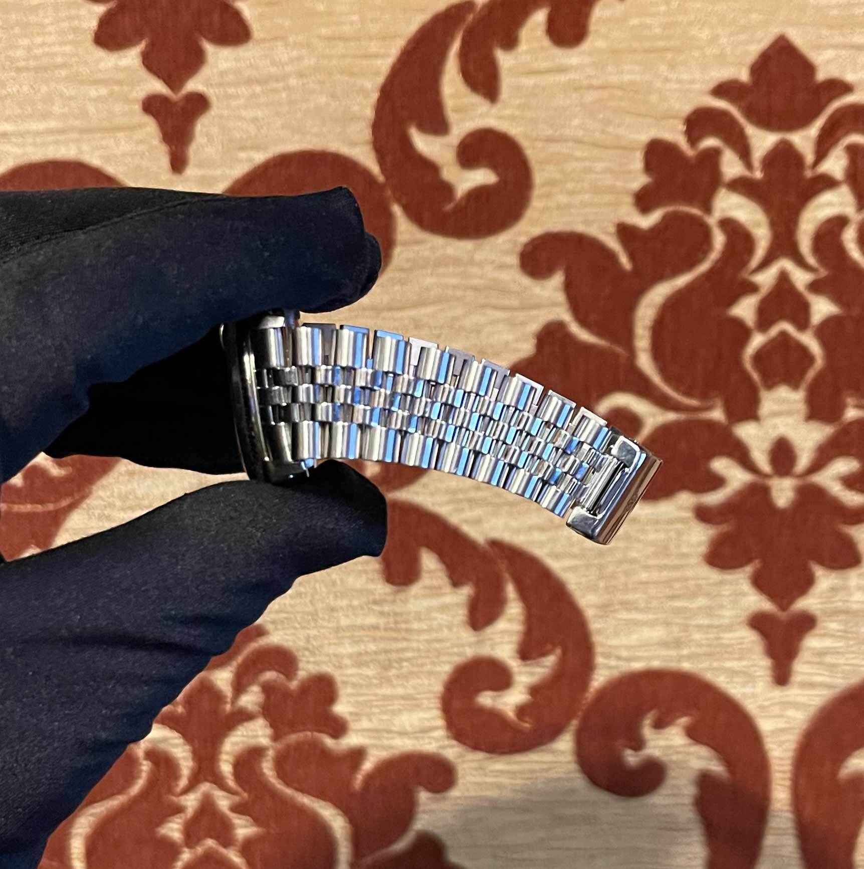 Read Morethis rolex is in excellent condition for the age of the watch and comes with its box, red hang tag, and rolex wallet as shown in the pictures attached. This rolex has a serial number beginning with 88 which dates the year of production to be approximately 1985. This watch features a 36mm stainless steel case that surrounds a cream vintage boiler gauge rolex dial with a fluted bezel and comes on a jubilee band. The band shows some stretch but is in excellent overall condition. This watch is in stock and available to ship immediately!