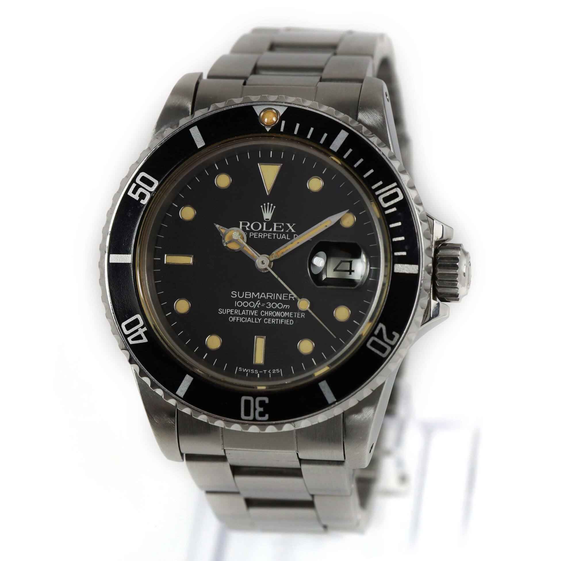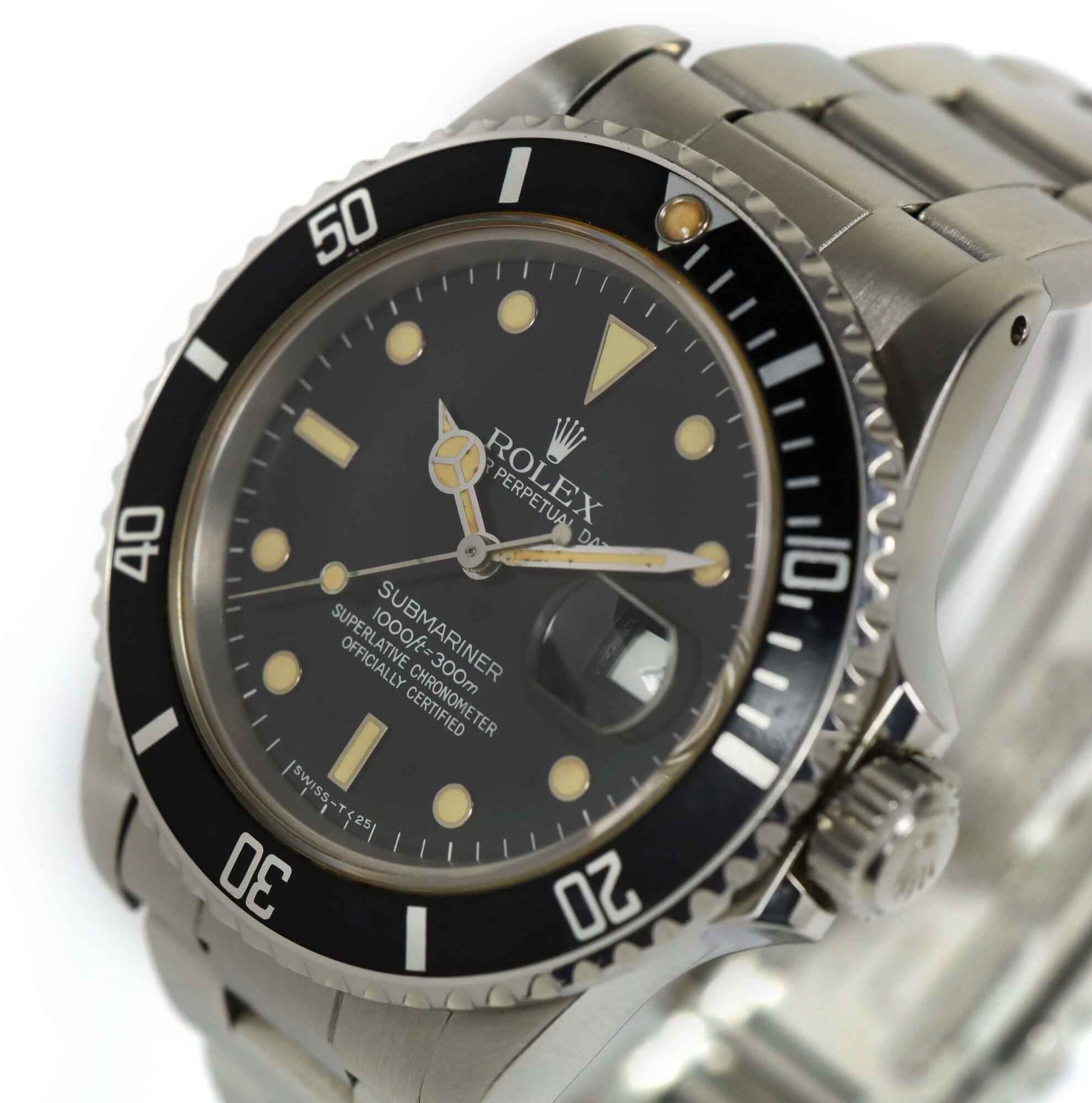 THIS ROLEX SUBMARINER IS IN EXCELLENT OVERALL CONDITION AND COMES AS WATCH ONLY AS SHOWN IN THE PICTURES ATTACHED. THIS WATCH HAS A SERIAL NUMBER BEGINNING WITH 86 WHICH DATES THE YEAR OF PRODUCTION TO BE APPROXIMATELY 1985. THIS WATCH DOES HAVE A SMALL NIC...