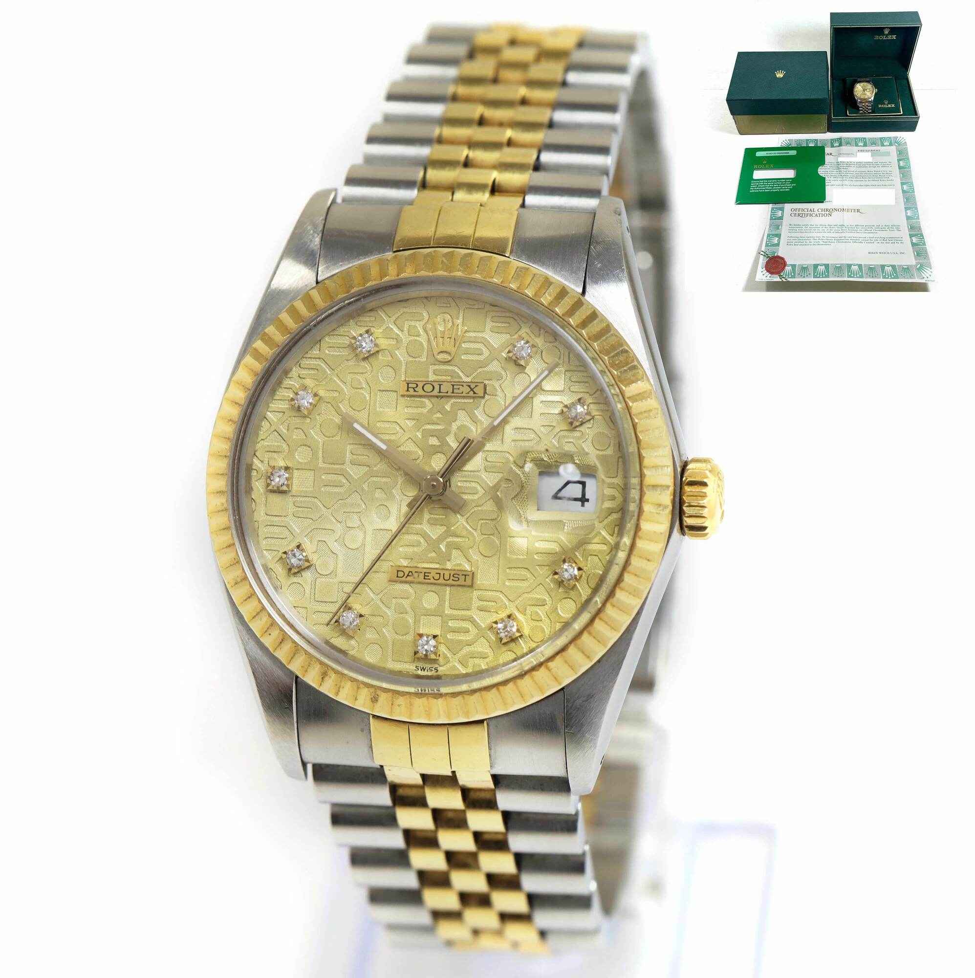 Read Morethis rolex is in good overall condition showing some signs of wear that is consistent with preowned watches. This datejust does have some small dings on the case/lugs and also a few scratches on the crystal/hands as shown in the pictures attached. This comes with its original box and warranty paper and is in stock and available to ship immediately!