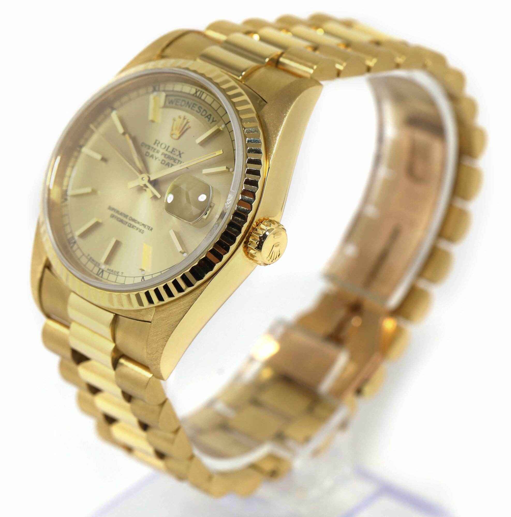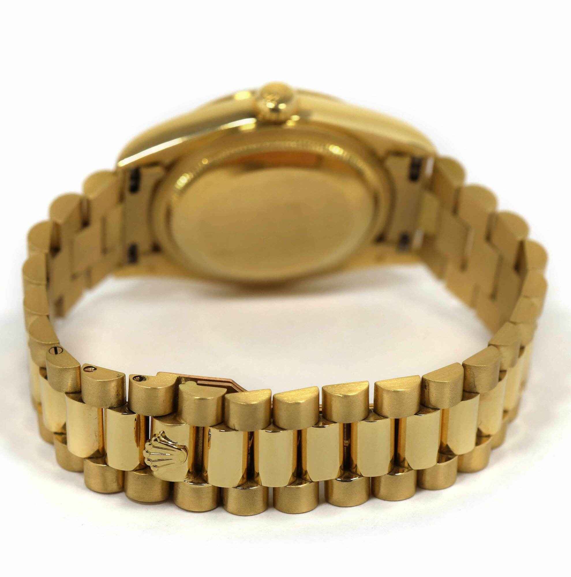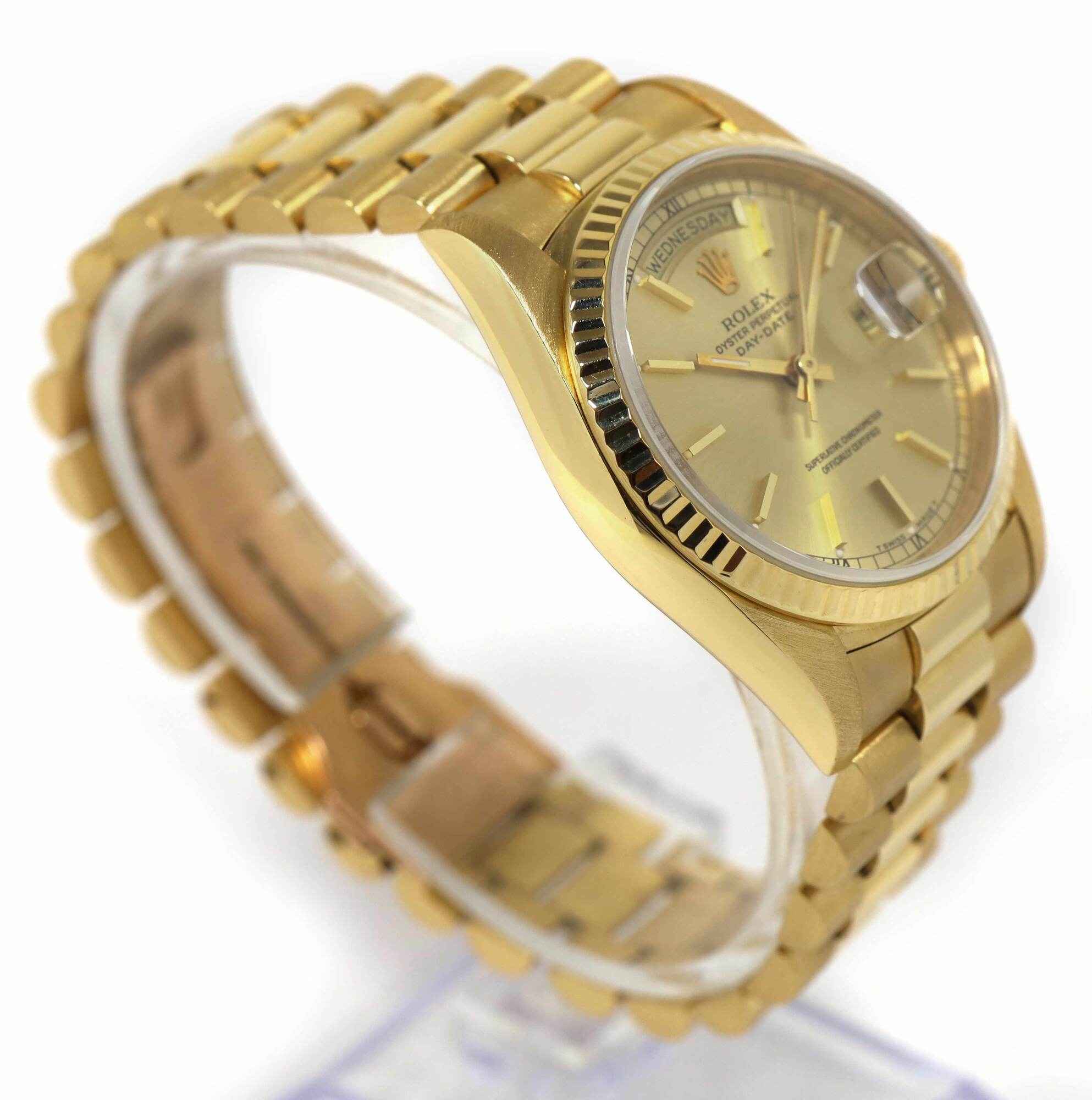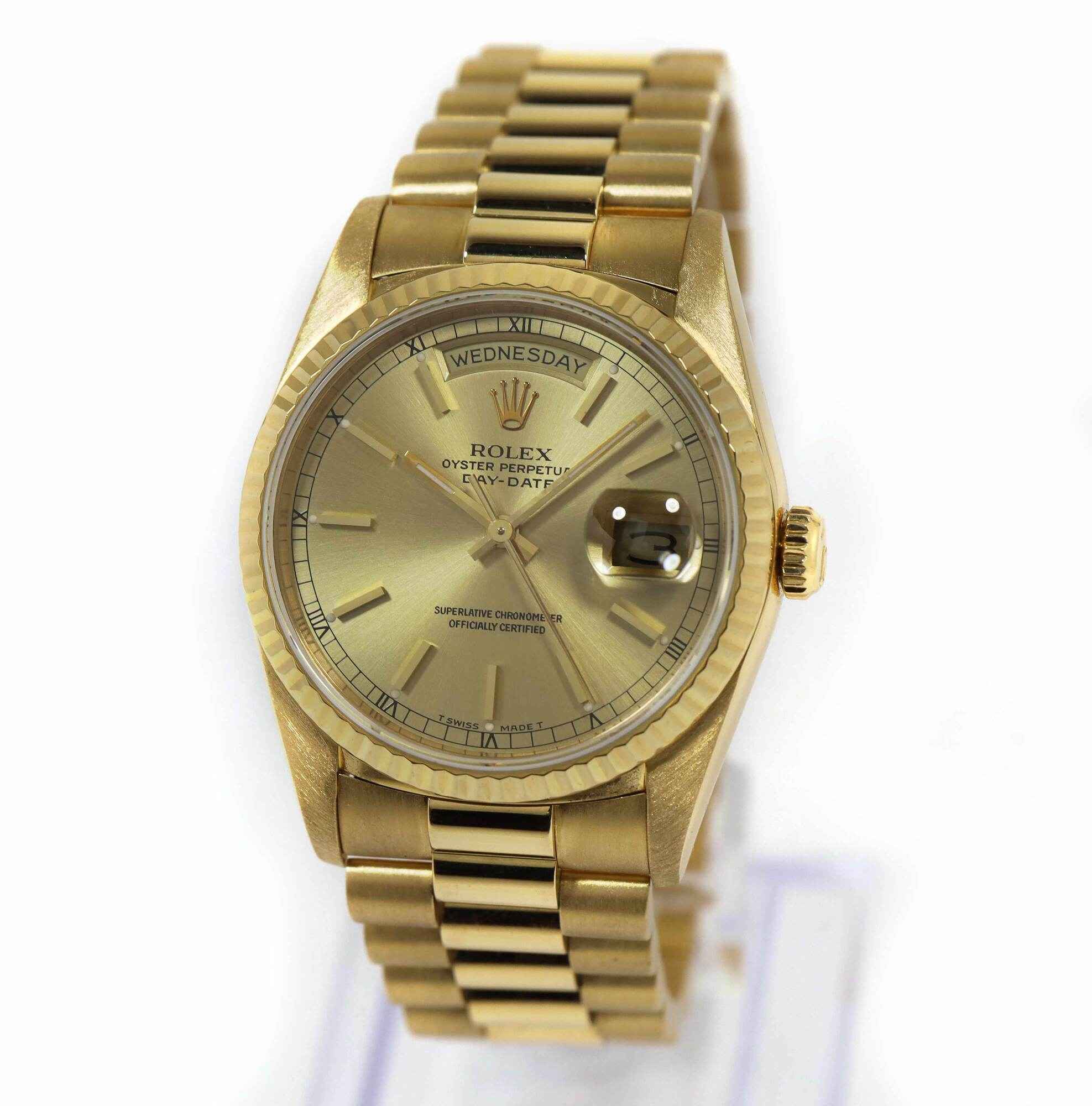 Read Morethis rolex is in excellent overall condition and was recently serviced by our expert in house watchmaker that includes a 1 year warranty. This comes as watch only as shown in the pictures attached. This president has a serial number beginning with l which dates the year of production to be approximately 1989. This watch is in stock and available to ship immediately!