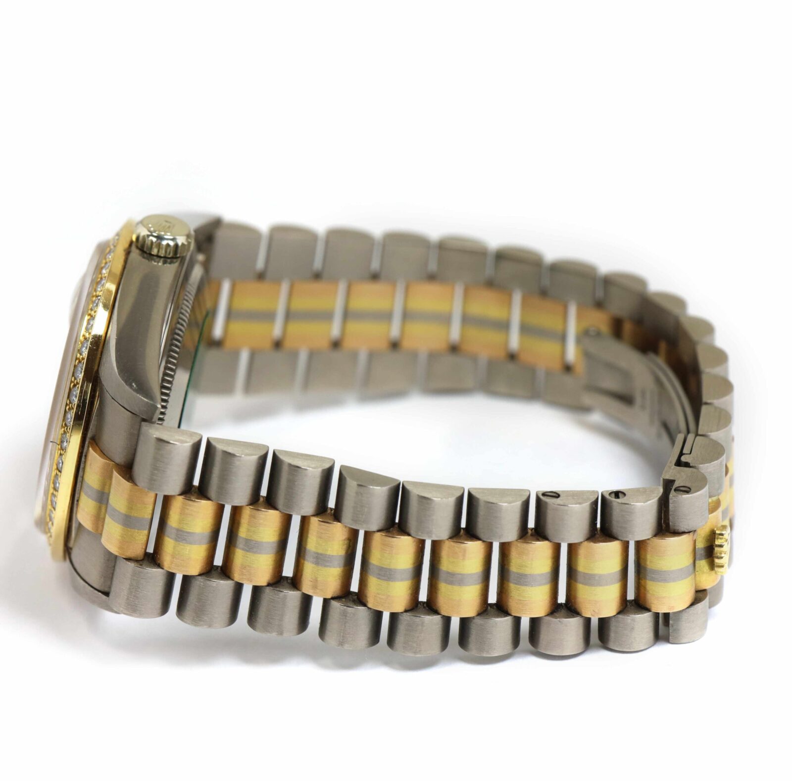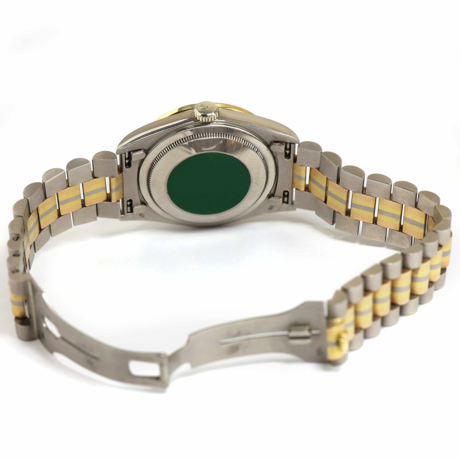 THIS ROLEX PRESIDENT IS IN GREAT CONDITION WITH THE GREEN CASEBACK STICKER ATTACHED AND COMES AS WATCH ONLY AS SHOWN IN THE PICTURES ATTACHED. THIS WATCH HAS A SERIAL NUMBER BEGINNING WITH L WHICH DATES THE YEAR OF PRODUCTION TO BE APPROXIMATELY 1989. THE S...