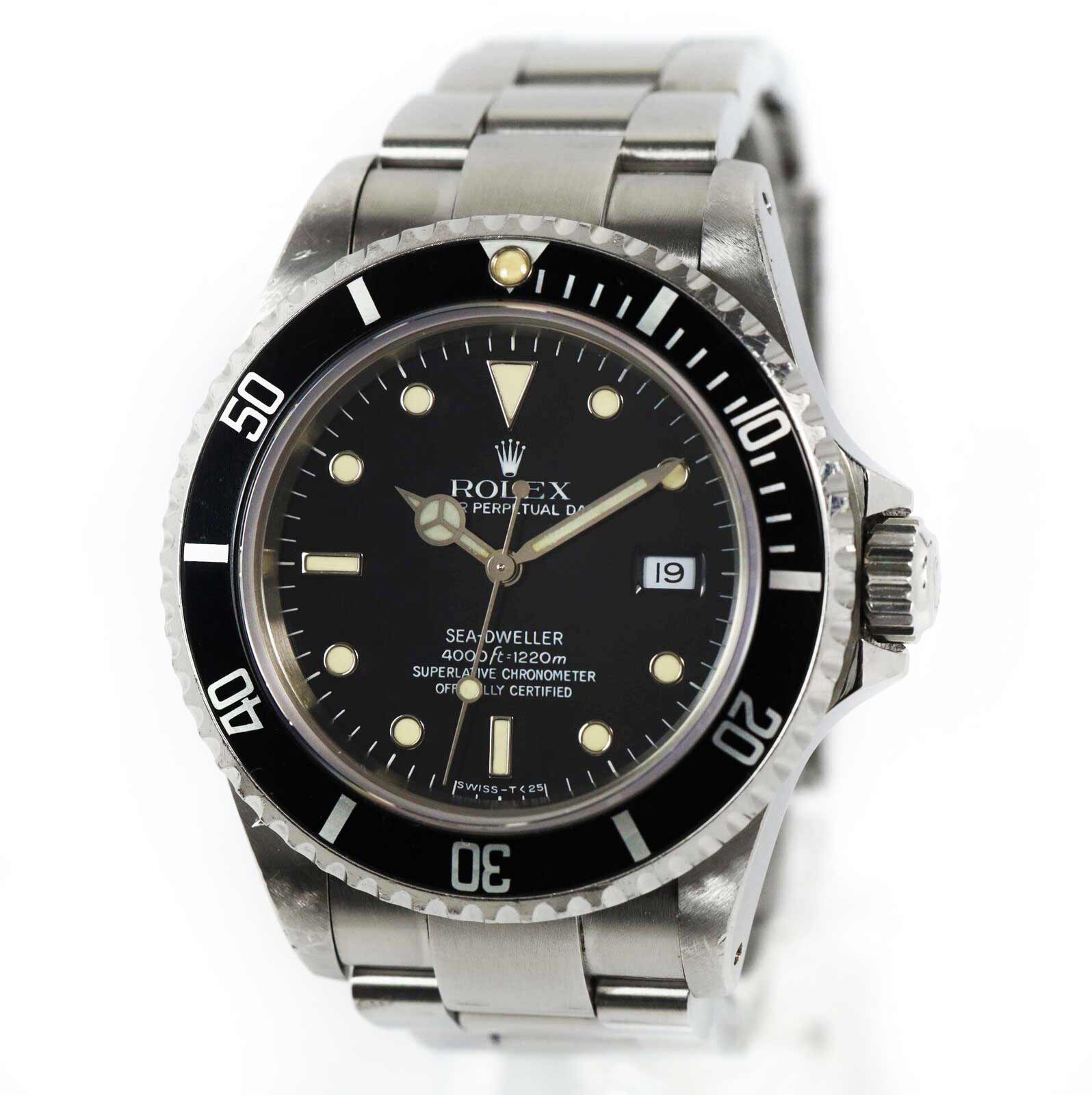 this rolex is in very good condition showing some normal surface wear consistent with preowned watches. This sea-dweller comes as watch only as shown in the pictures attached. This watch has a serial number beginning with e which dates the year of production to be approximately 1990. This rolex is in stock and available to ship immediately!