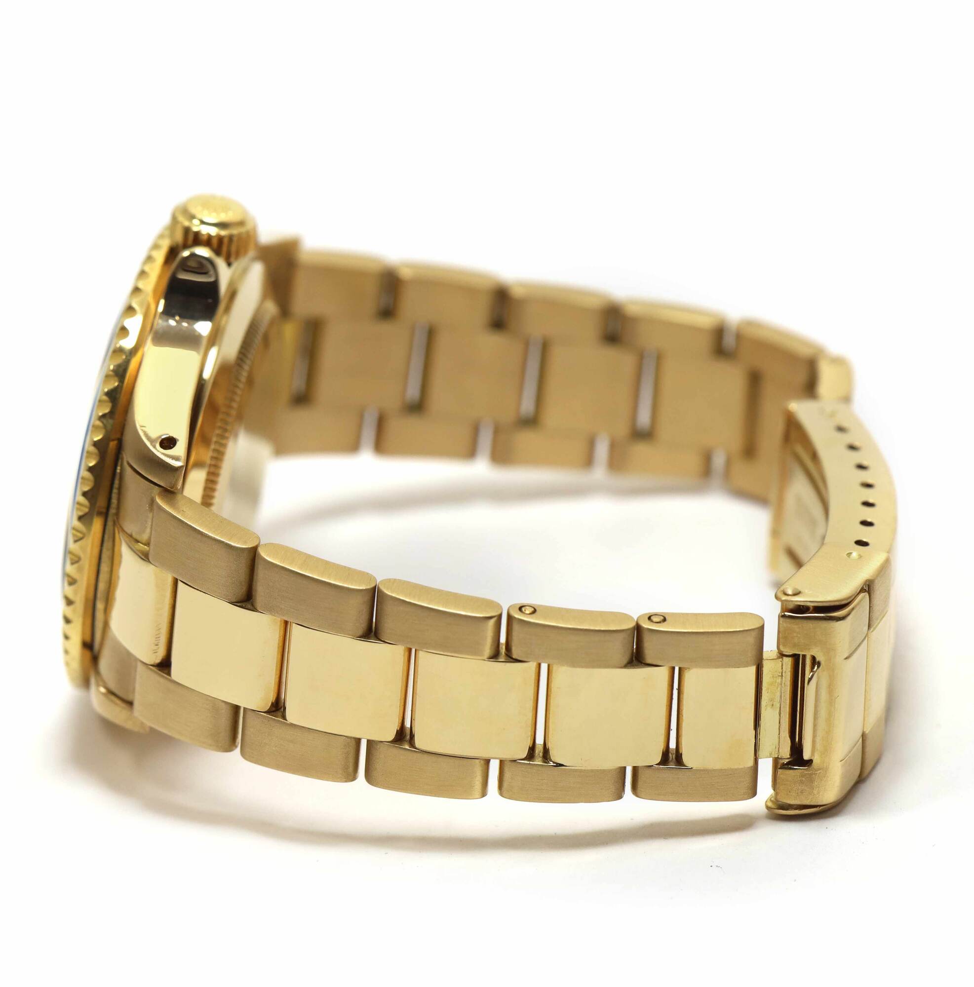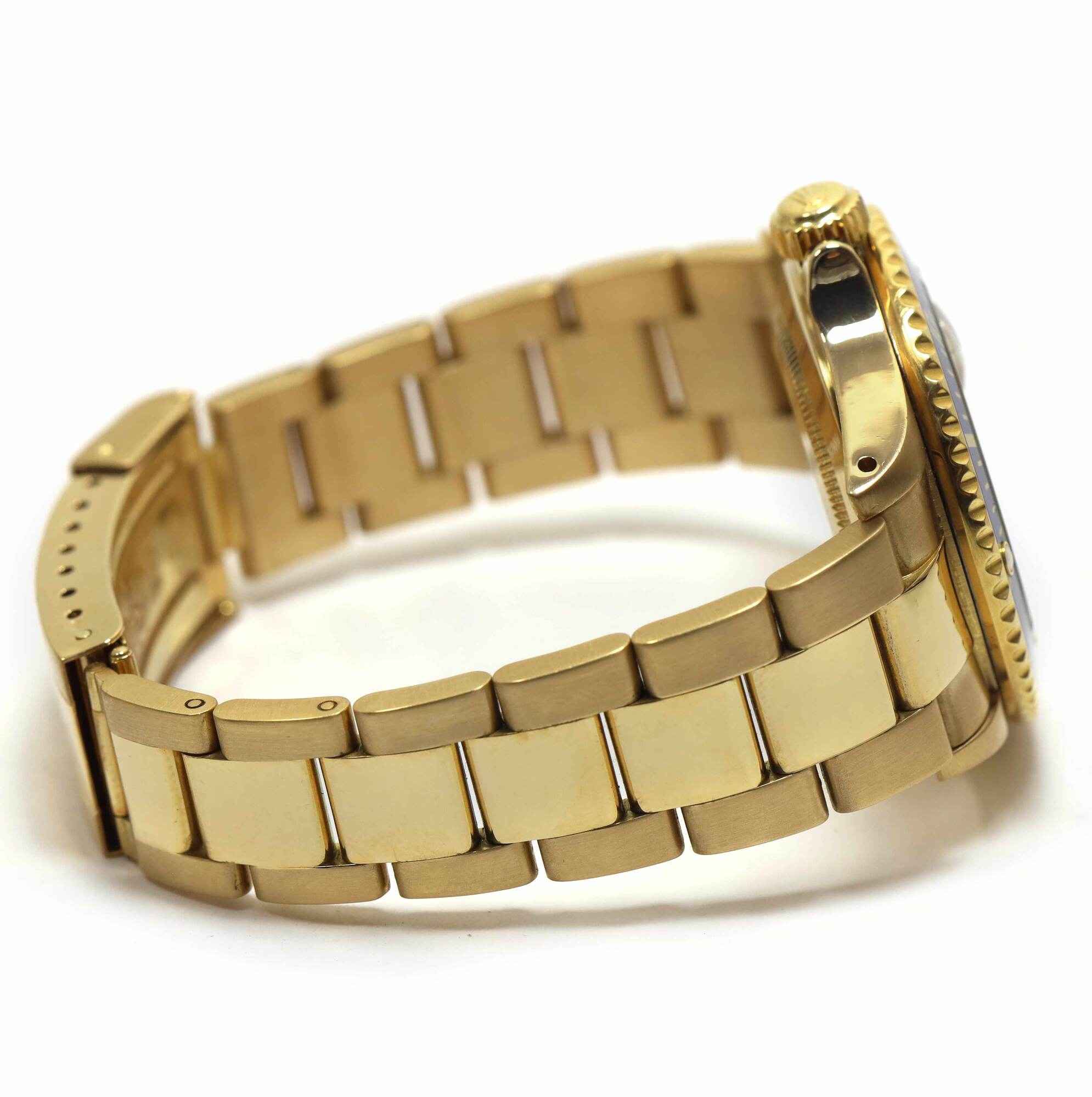 THIS ROLEX IS IN EXCELLENT CONDITION FOR THE AGE OF THE WATCH AND COMES AS WATCH ONLY. THIS WATCH FEATURES A 40MM 18K YELLOW GOLD CASE THAT SURROUNDS A FACTORY SLATE SERTI DIAL WITH 8 ROUND DIAMONDS AND 3 BLUE SAPPHIRES WITH A BLUE BEZEL AND COMES ON A YELL...