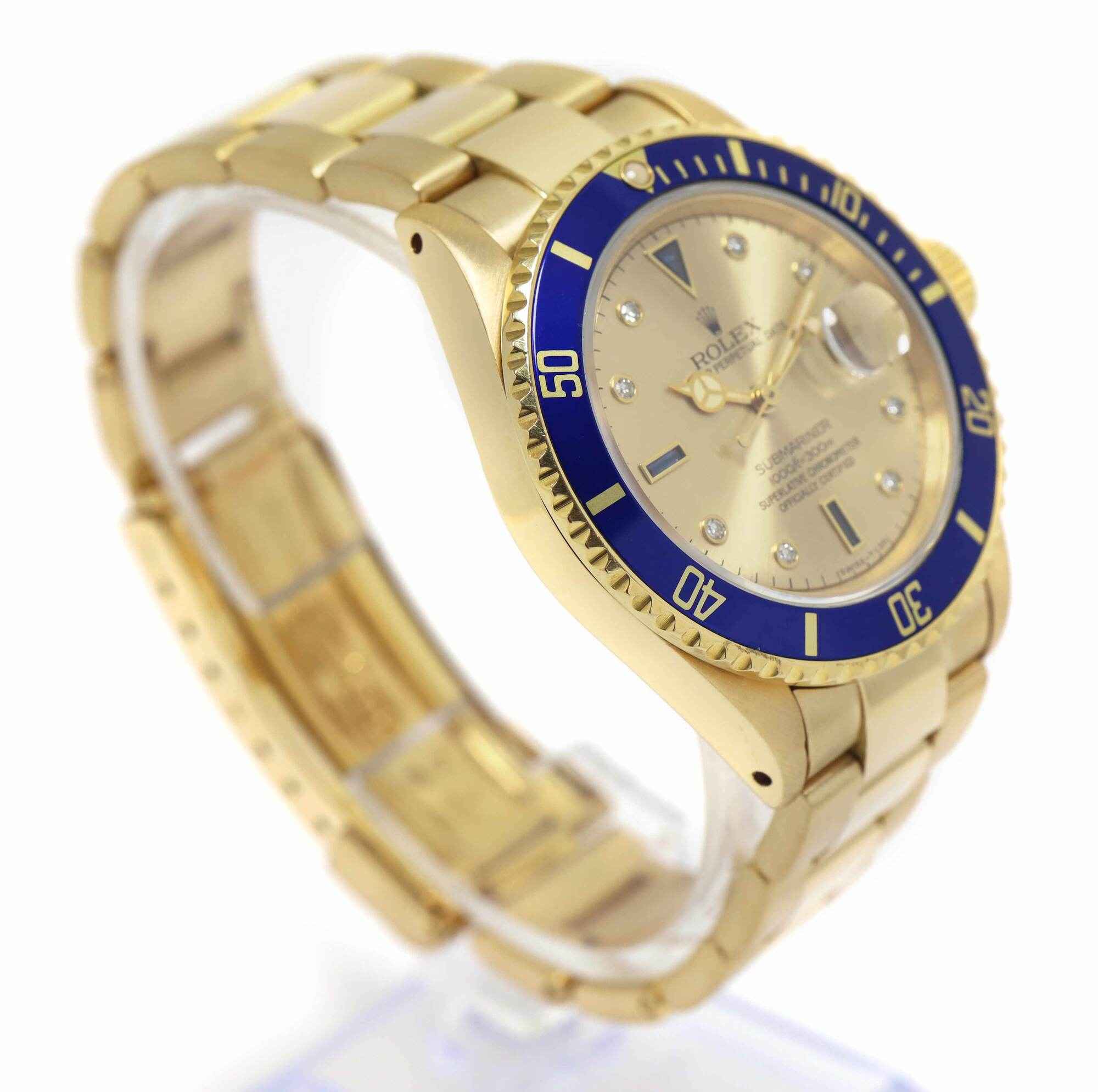 1990 Rolex Submariner Date Slate Serti 16808 40MM 18K Yg Blue Bezel E-Serial