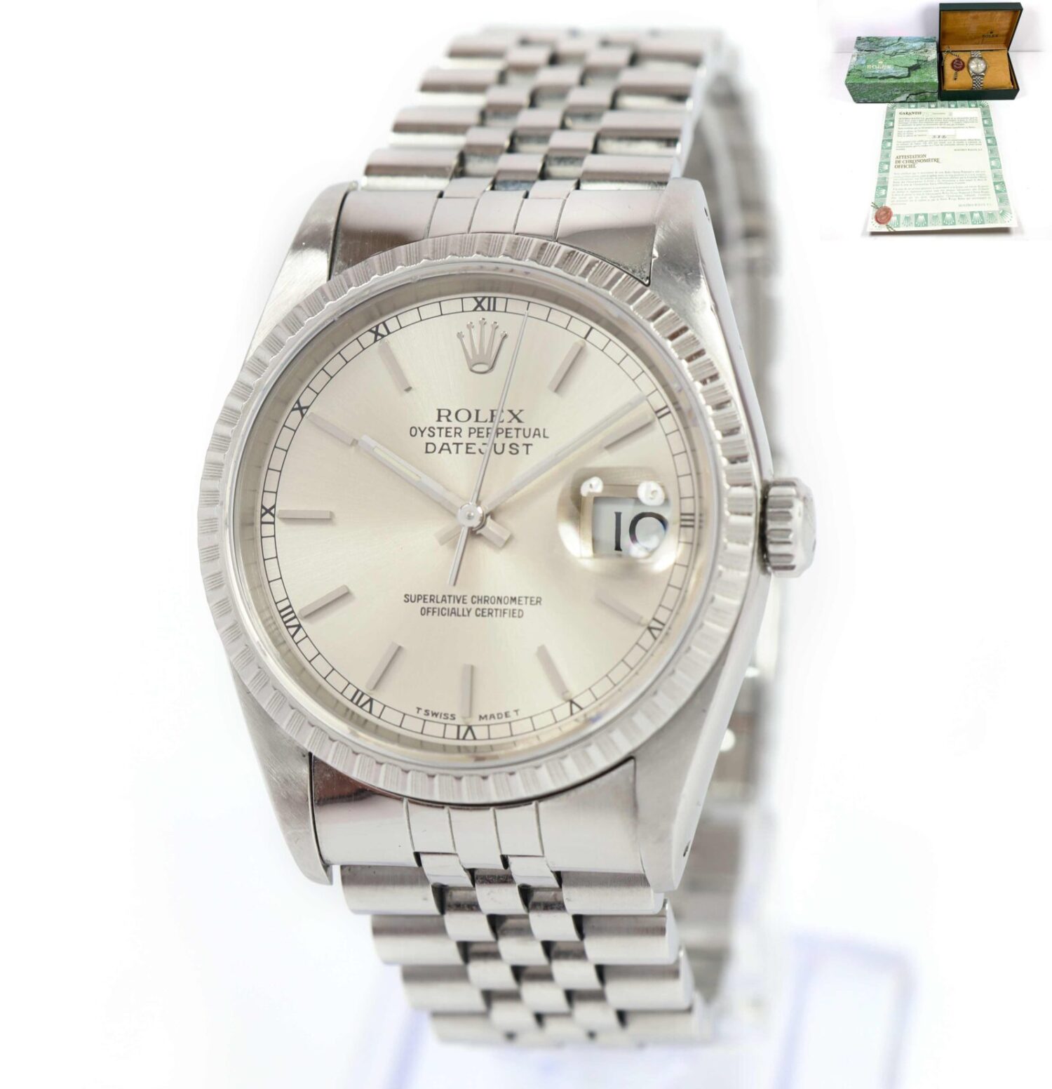 THIS ROLEX IS IN GREAT OVERALL CONDITION FOR THE AGE OF THE WATCH SHOWING SOME SIGNS OF WEAR CONSISTENT WITH PREOWNED WATCHES. THIS COMES WITH ITS BOX AND WARRANTY PAPER DATED MARCH 8TH, 1991 AS SHOWN IN THE PICTURES ATTACHED. THIS WATCH IS IN STOCK AND AVA...