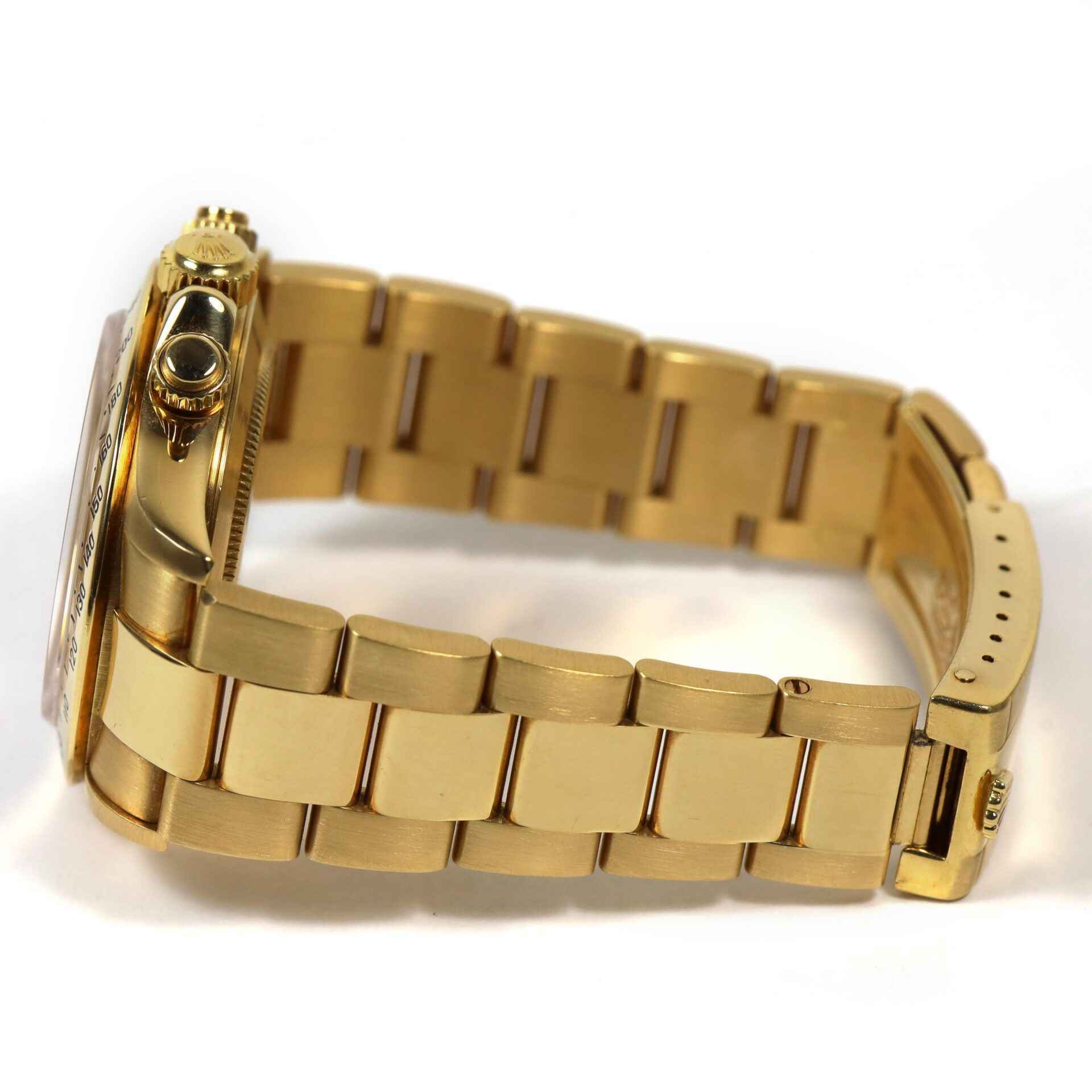 Read Morethis rolex daytona is in excellent condition and comes as watch only as shown in the pictures attached. This watch features a 40mm 18k yellow gold case that surrounds a champagne dial and comes on a gold bracelet. This watch has a serial number beginning with n which dates the year of production to be approximately 1991. This watch is in stock and available to ship immediately!