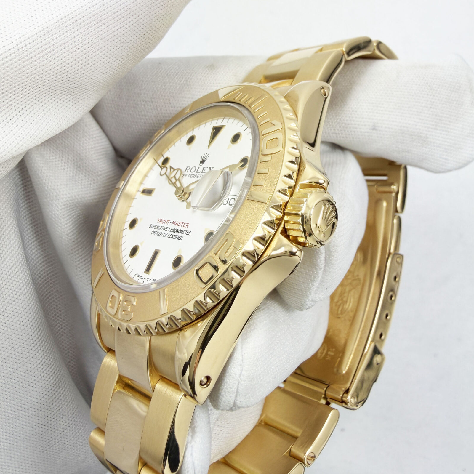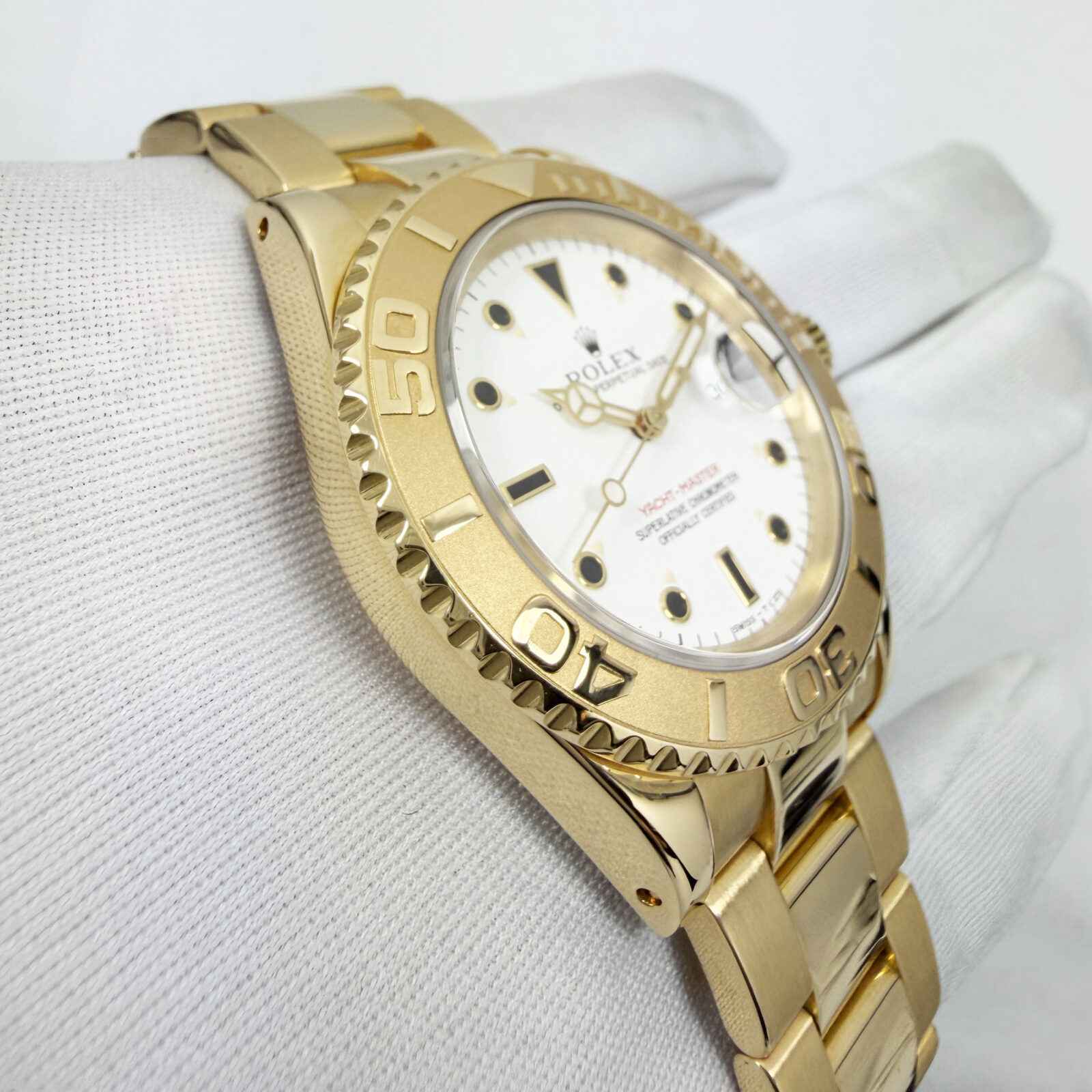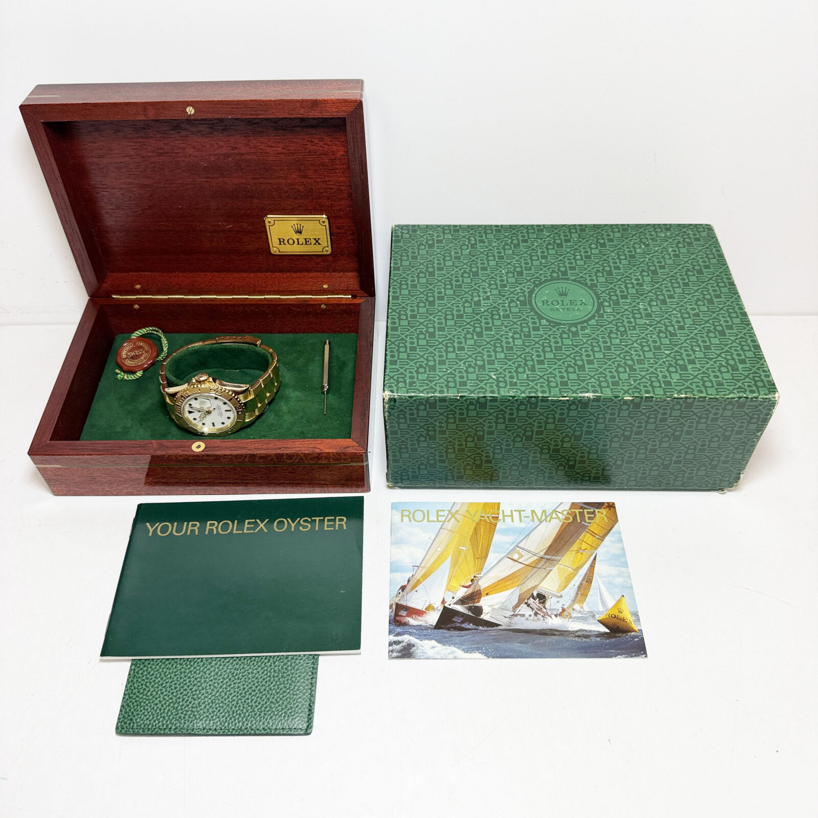 This X-serial Rolex Yacht-Master comes with its box, booklets, hangtag, and pusher tool. The photos shown are of the exact watch being sold and accurately represent its condition. This watch is in stock and ready to ship immediately!