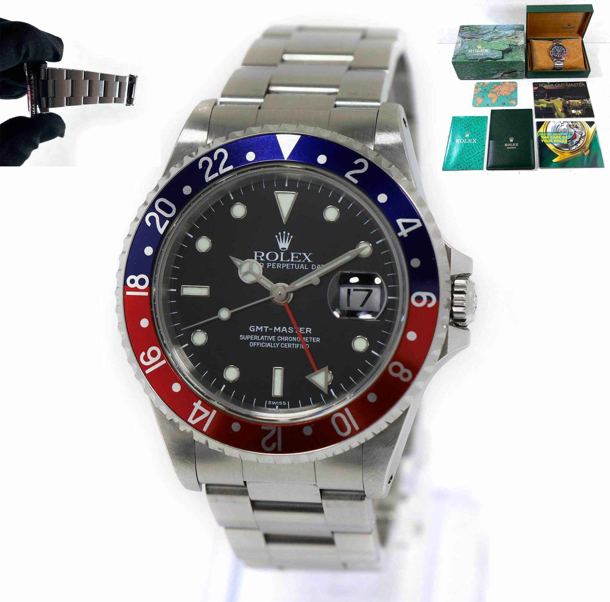 THIS ROLEX GMT-MASTER IS IN MINT UNPOLISHED CONDITION AND IS A RARE EXAMPLE OF A WATCH AROUND 25 YEARS OLD WITH THIS REFERENCE. THIS COMES WITH ITS BOX AND BOOKLETS ONLY AS SHOWN IN THE PICTURES ATTACHED. THE OYSTER BRACELET ON THIS ROLEX IS IN AMAZING OVER...