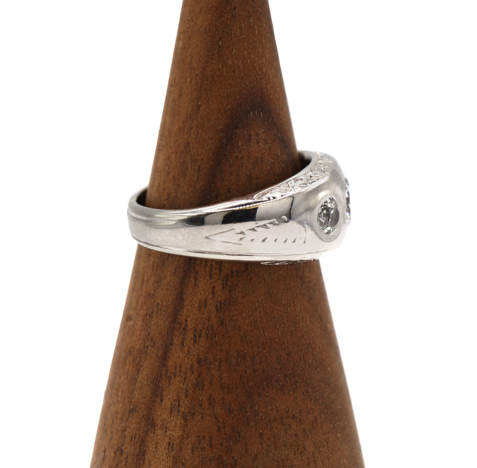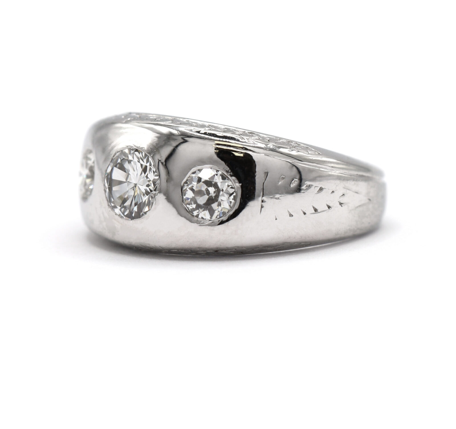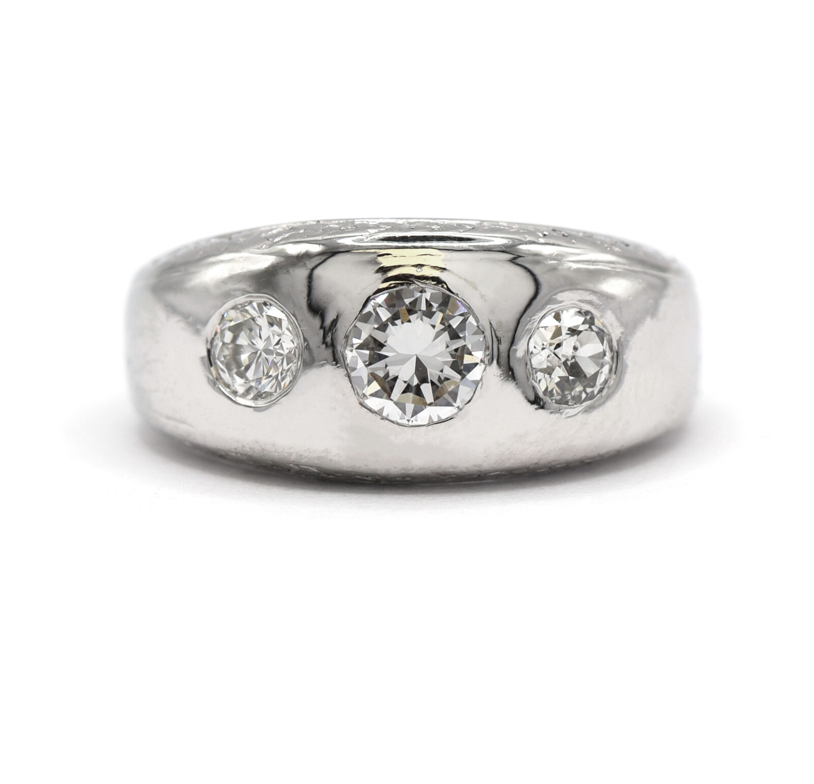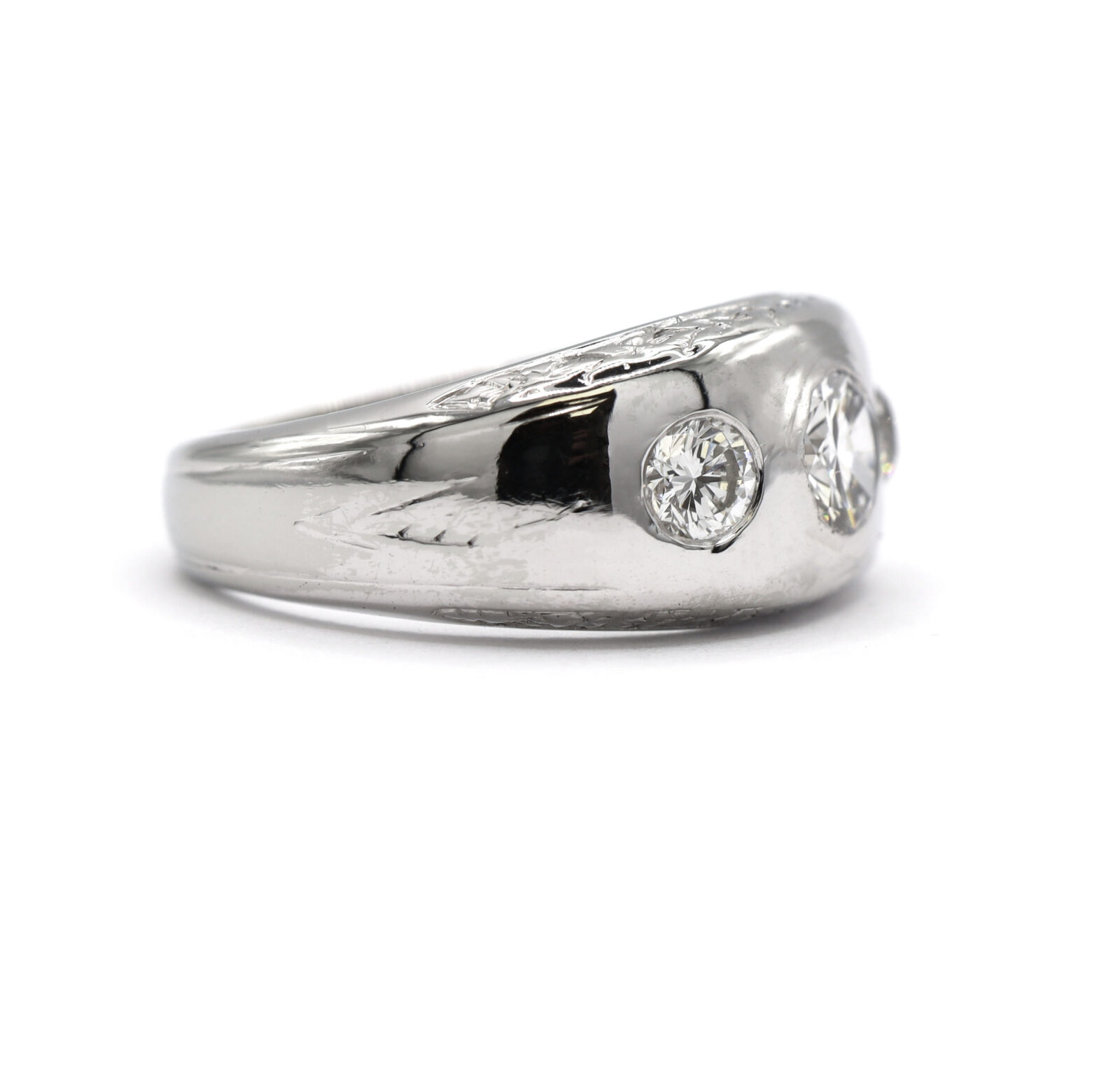 Material: 18k White Gold Ring Size: 6.5 Front Width: 9.3mm Back Width: 3.5mm Weight: 8.8 Grams Gemstone: Natural Diamond Carat Weight: 1.00 Carat Clarity: VS2 Color: F Cut: Round Brilliant