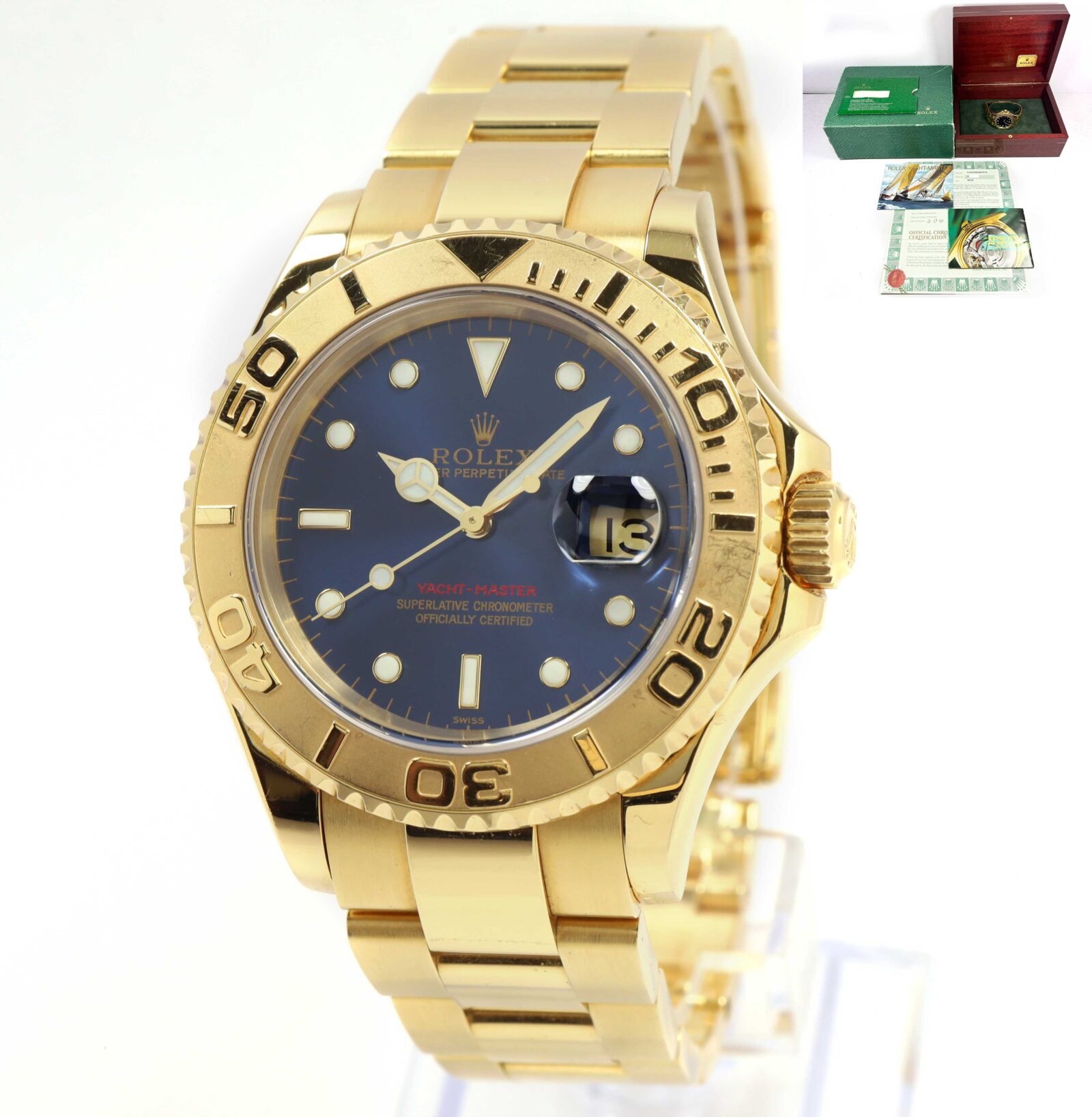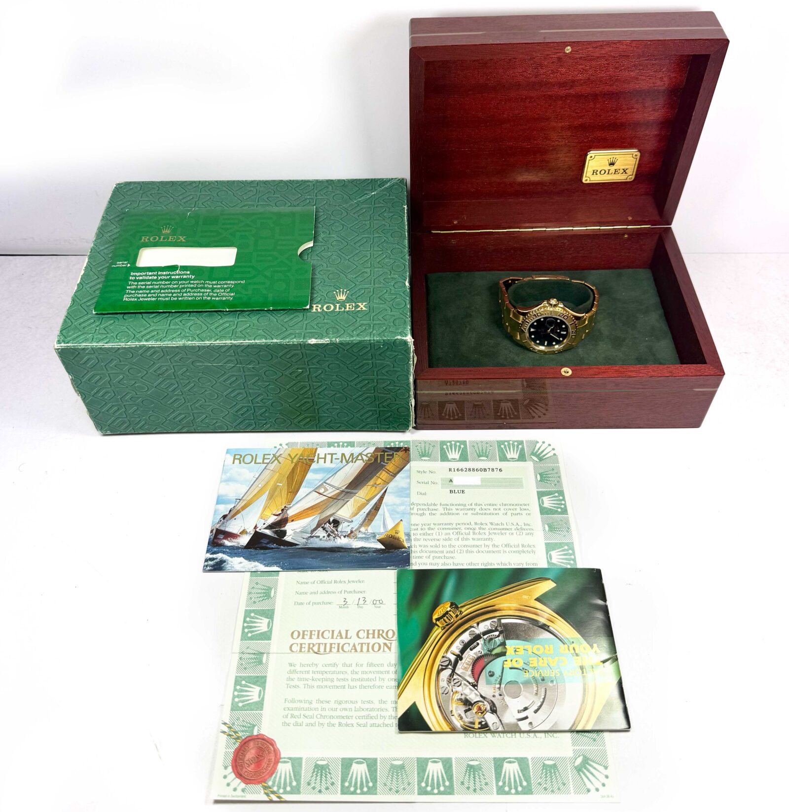2000 Rolex Yacht-Master 40 16628 Blue 18K Yellow Gold Box Papers