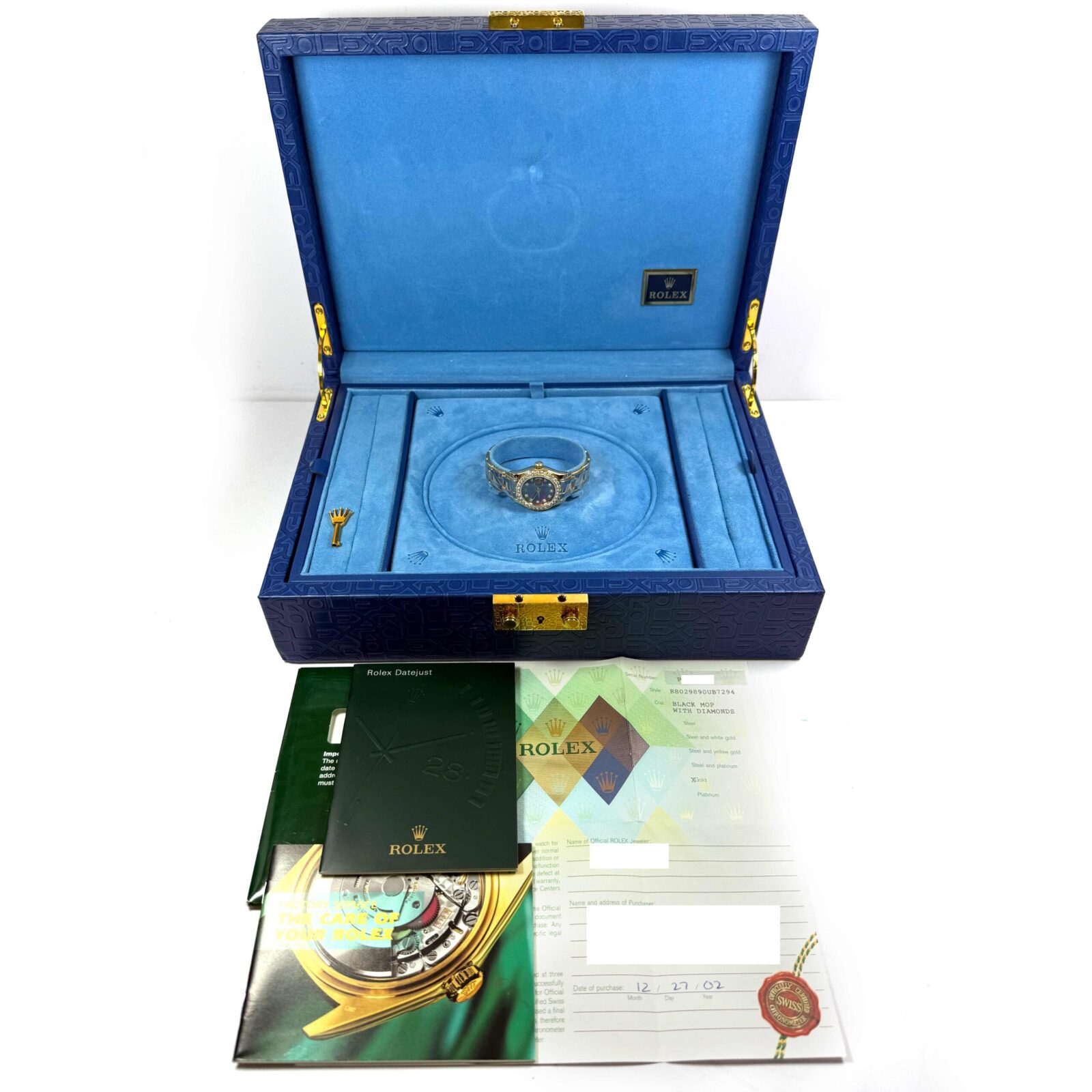 Read Morethis rolex is in excellent overall condition showing some light signs of wear on the case and bracelet consistent with preowned watches. This comes with its box, booklets, box key, and warranty paper dated december 27th, 2002 as shown in the pictures attached. This watch is in stock and available to ship immediately!