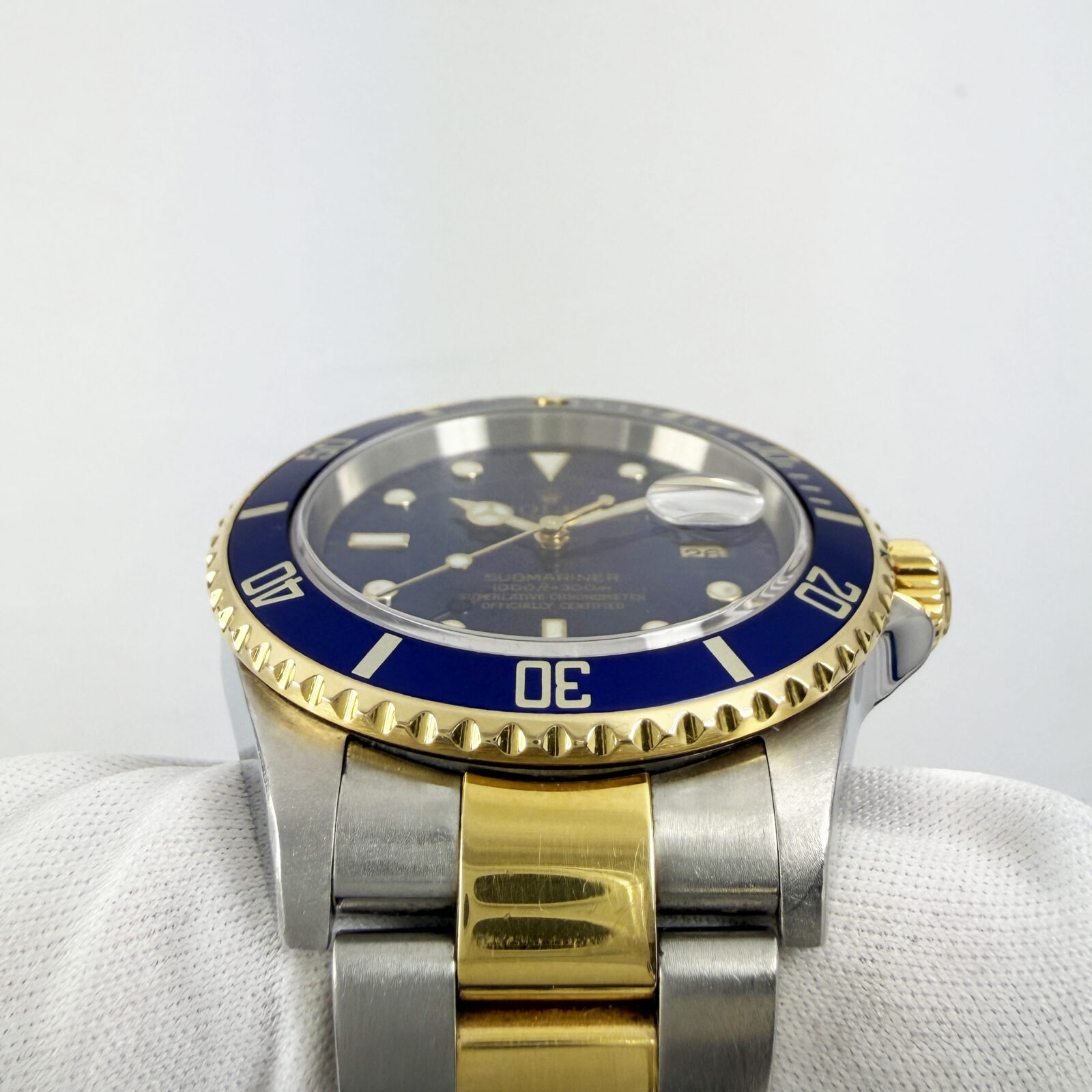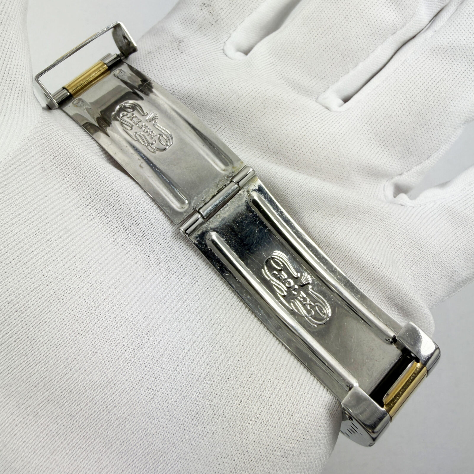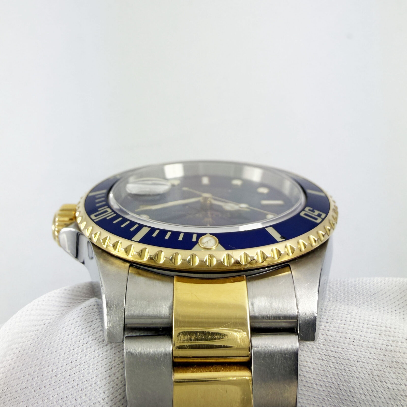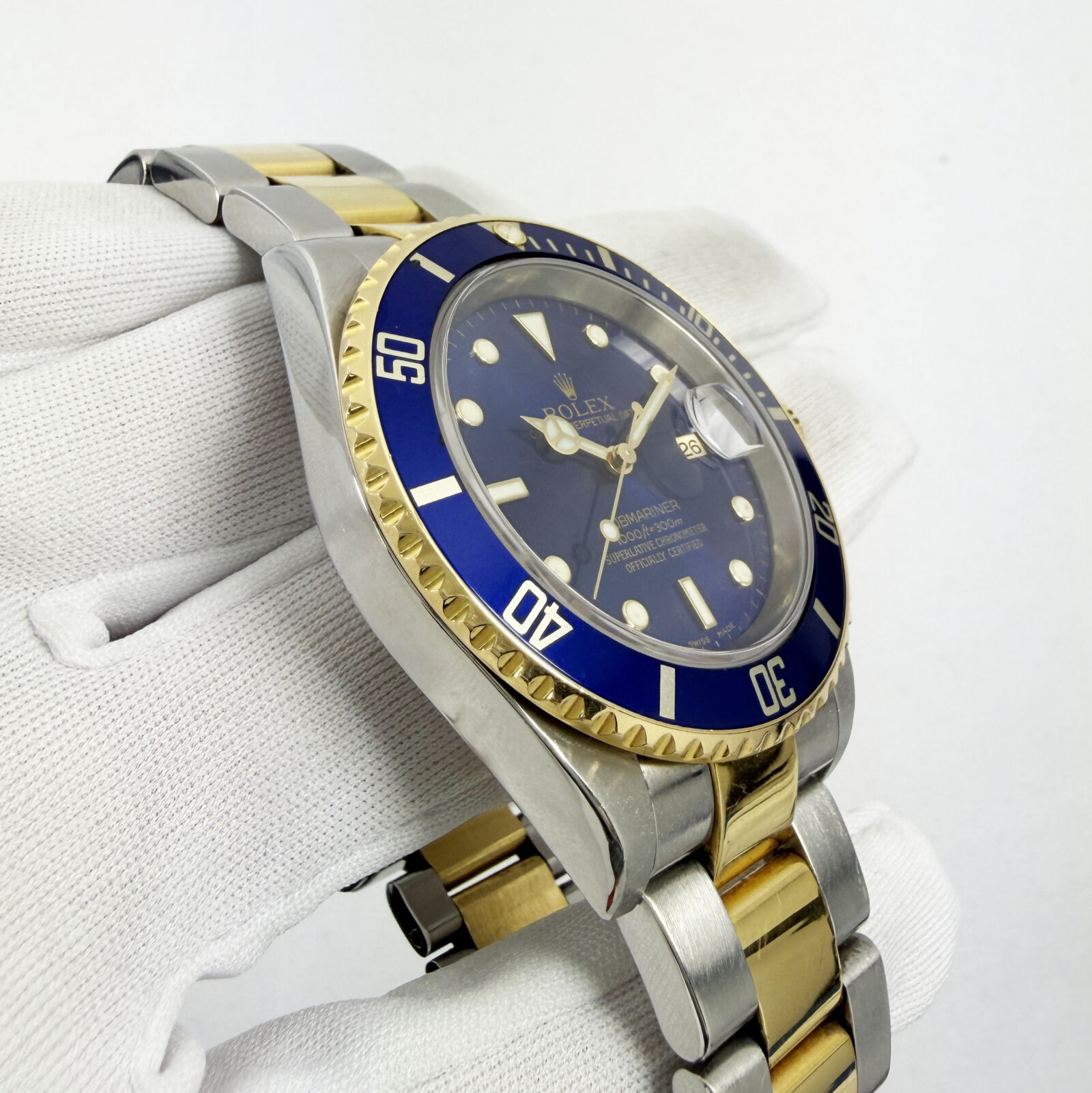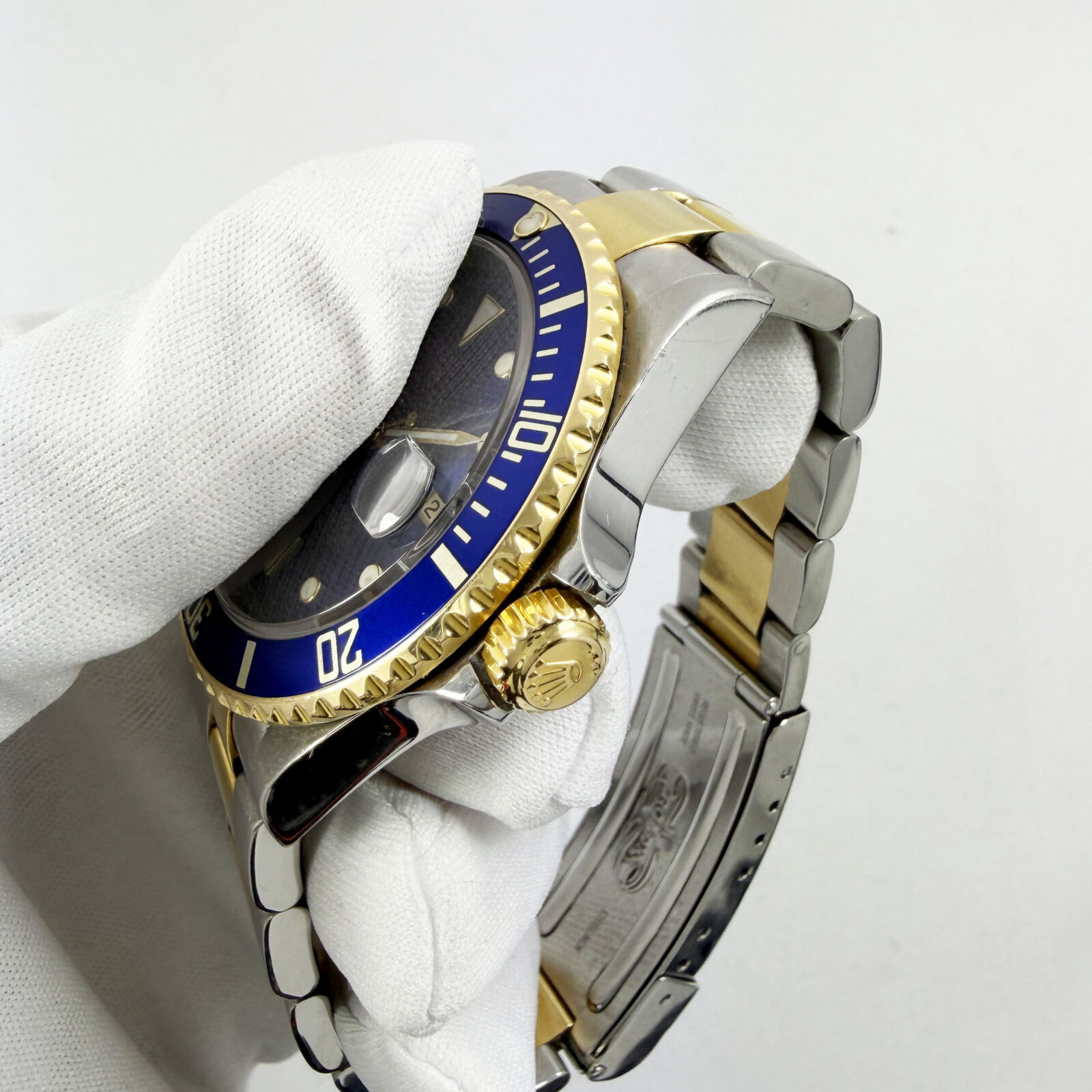 this rolex submariner date f-serial watch comes with watch only. There is a small dent on the bezel and a crack on the pearl as shown in the pictures. The photos shown are of the exact watch being sold and accurately represent its condition. This watch is in stock and ready to ship immediately!