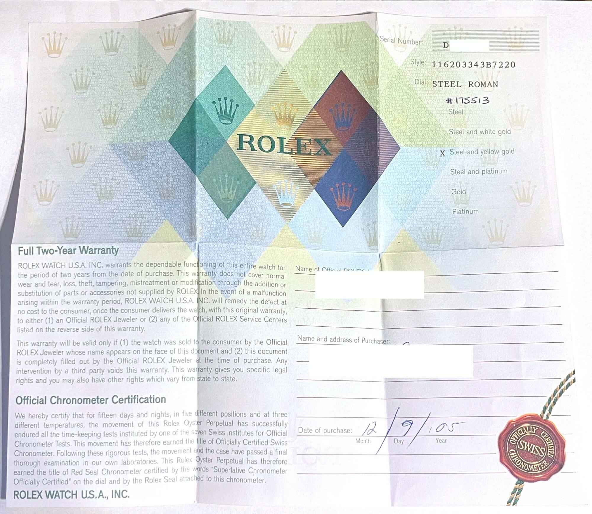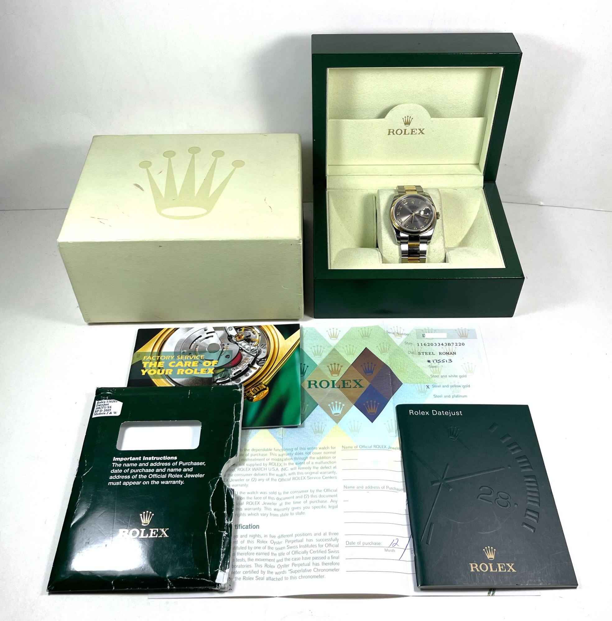 THIS ROLEX IS IN EXCELLENT CONDITION SHOWING SOME SIGNS OF WEAR ON THE CASE AND BRACELET CONSISTENT WITH PREOWNED WATCHES OF THIS AGE. THIS WATCH COMES WITH ITS BOX, BOOKLETS, AND WARRANTY PAPER DATED DECEMBER 9TH, 2005. THIS WATCH IS IN STOCK AND AVAILABLE...