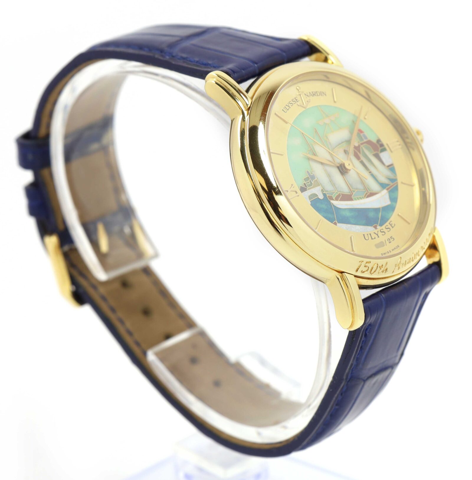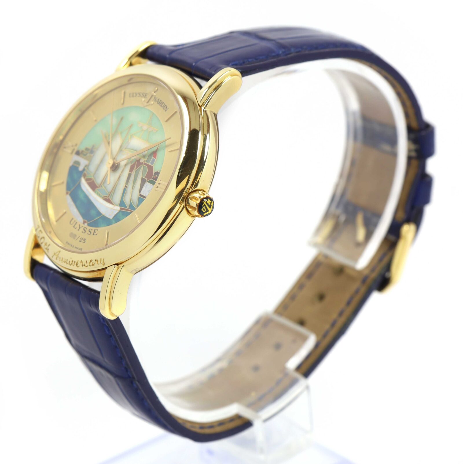 Read Morethis ulysse nardin watch is in excellent overall condition for the age of the watch showing some light signs of surface wear consistent with preowned watches. A true collector’s item, this piece is part of a rare 25 piece limited edition created to celebrate ulysse nardin’s 150th anniversary. Even more special, this watch features a unique 1 of 1 dial making it a standout in an already exclusive collection along with being the only one with the 150th anniversary engraved on the bezel. This comes with its box, booklets, and warranty paper dated february 9th, 2005 as shown in the pictures attached. This watch is in stock and available to ship immediately!