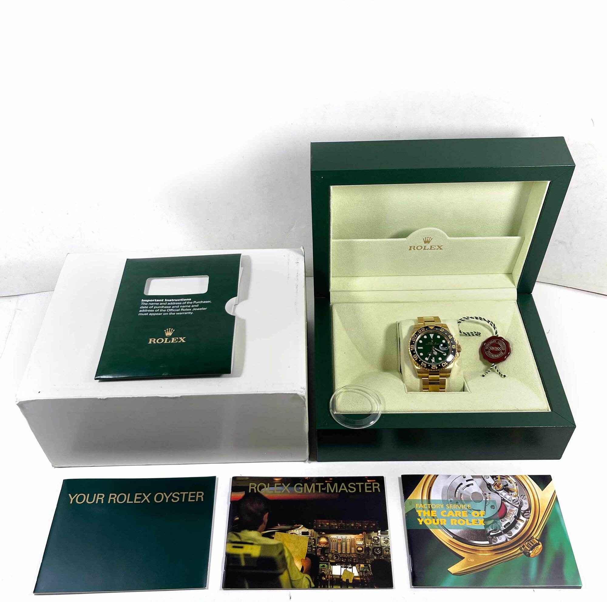 THIS ROLEX IS IN UNPOLISHED CONDITION WITH THE GREEN CASEBACK STICKER ATTACHED AND COMES WITH ITS BOX, BOOKLETS, RED HANG TAG, AND BEZEL PROTECTOR ONLY AS SHOWN IN THE PICTURES ATTACHED. IT DOES SHOW SOME SURFACE WEAR THROUGHOUT THE BRACELET FROM NORMAL WEA...
