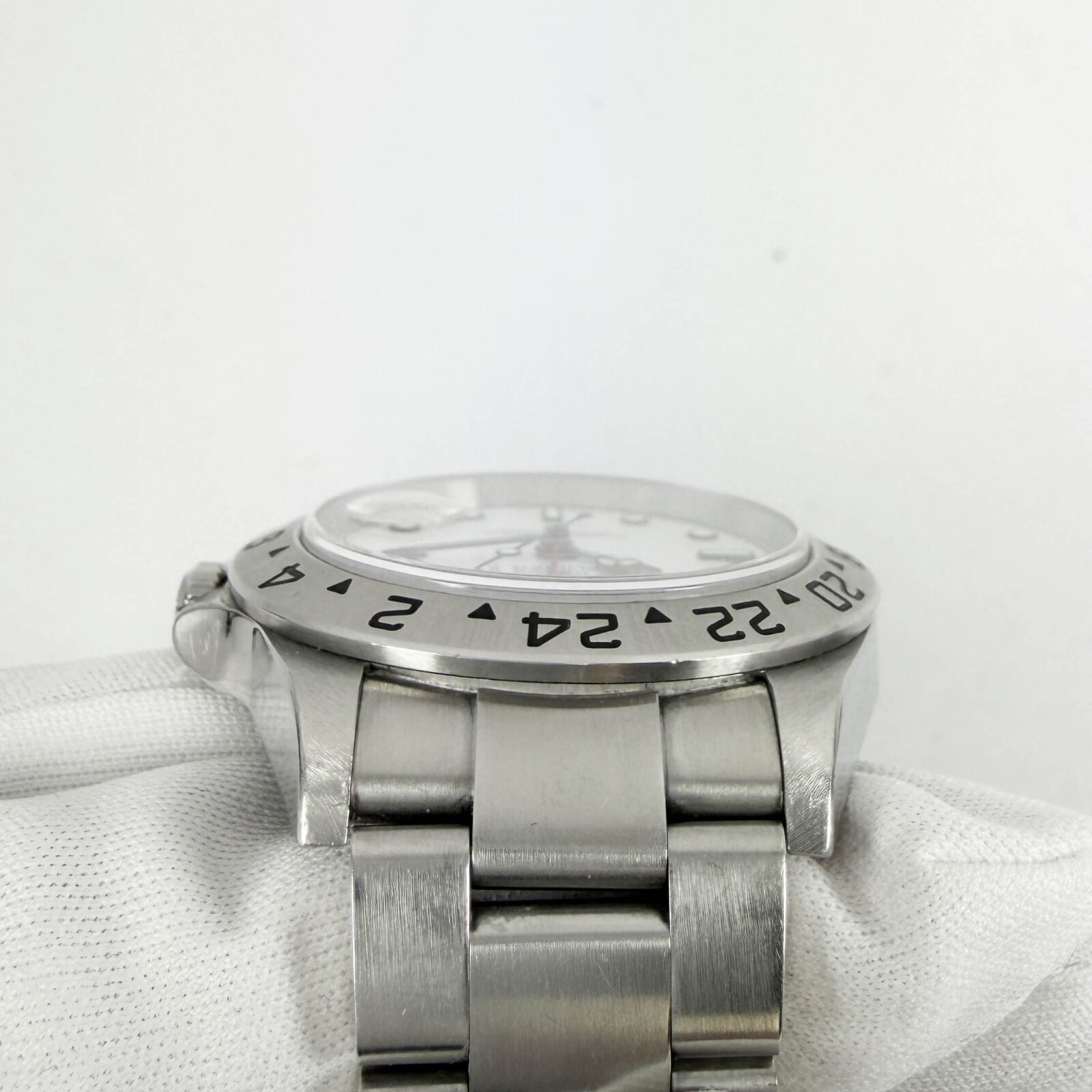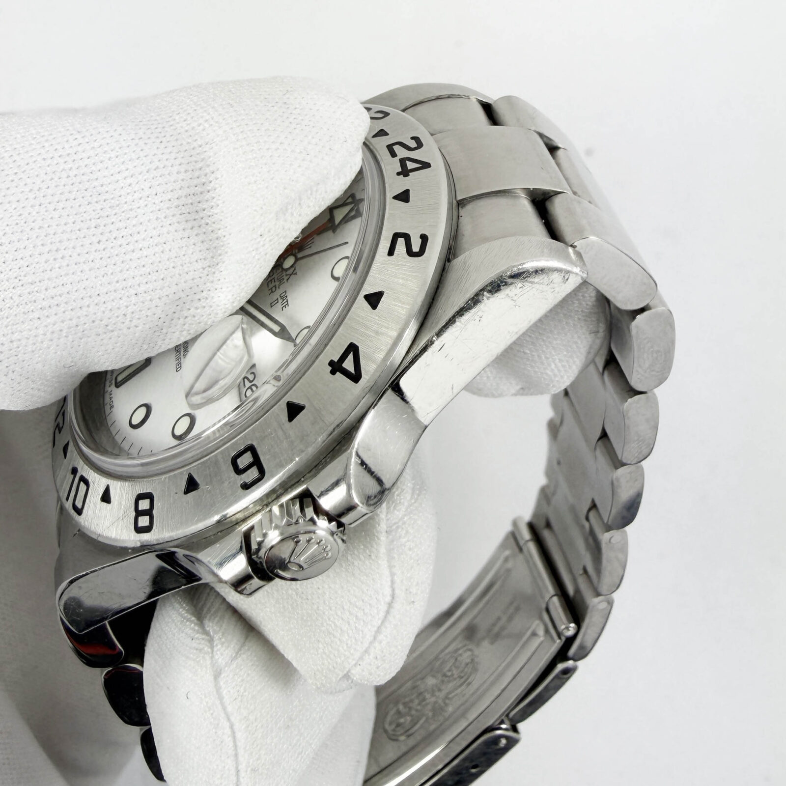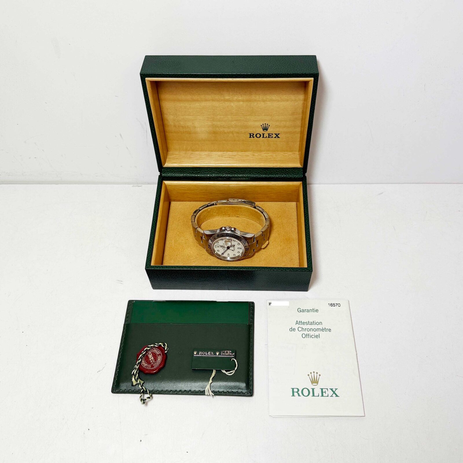 this rolex explorer ii watch comes with its box, booklet, hangtags, and warranty paper dated july 23, 2006. The photos shown are of the exact watch being sold and accurately represent its condition. This watch is in stock and ready to ship immediately!