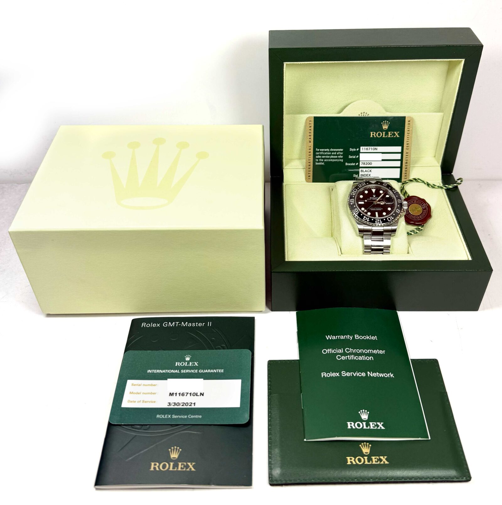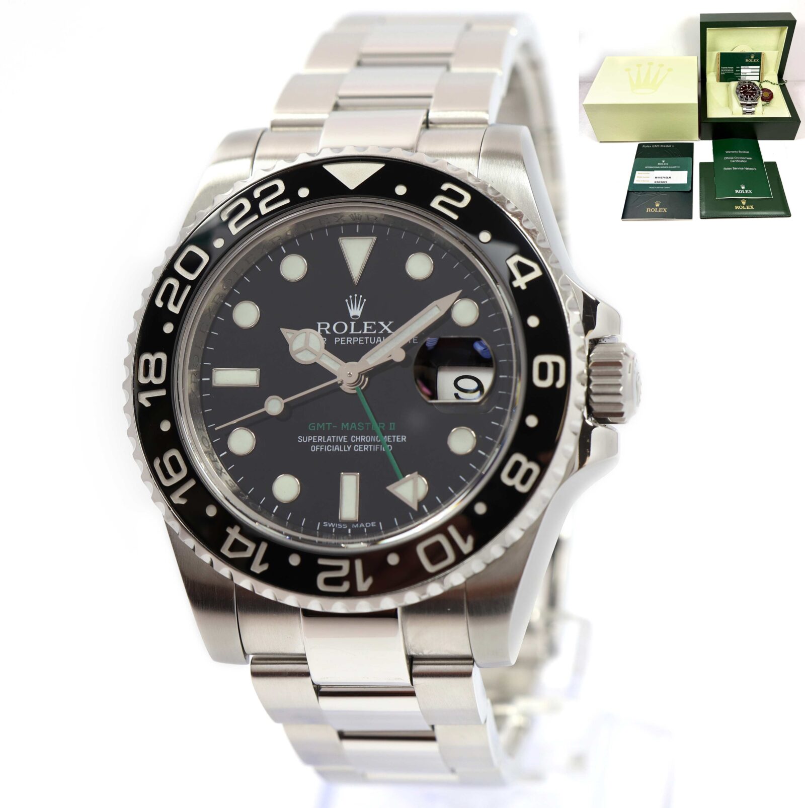 this rolex watch is in excellent overall condition showing some light signs of surface wear consistent with preowned watches. This comes with its box, booklets, hang tag, 2021 rolex service card, and warranty card dated october 8th, 2007 as shown in the pictures attached. This watch is in stock and available to ship immediately!