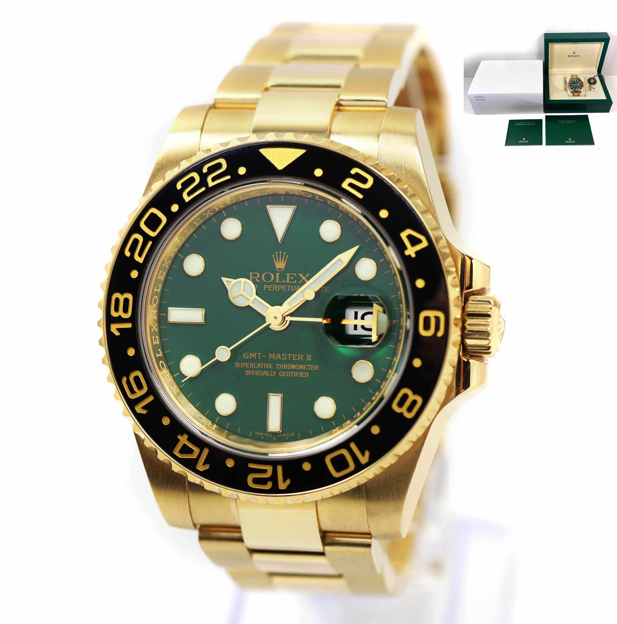 2007 Rolex GMT-Master II 116718LN 40MM 18K Yg Green Dial Box Booklets Z-Serial