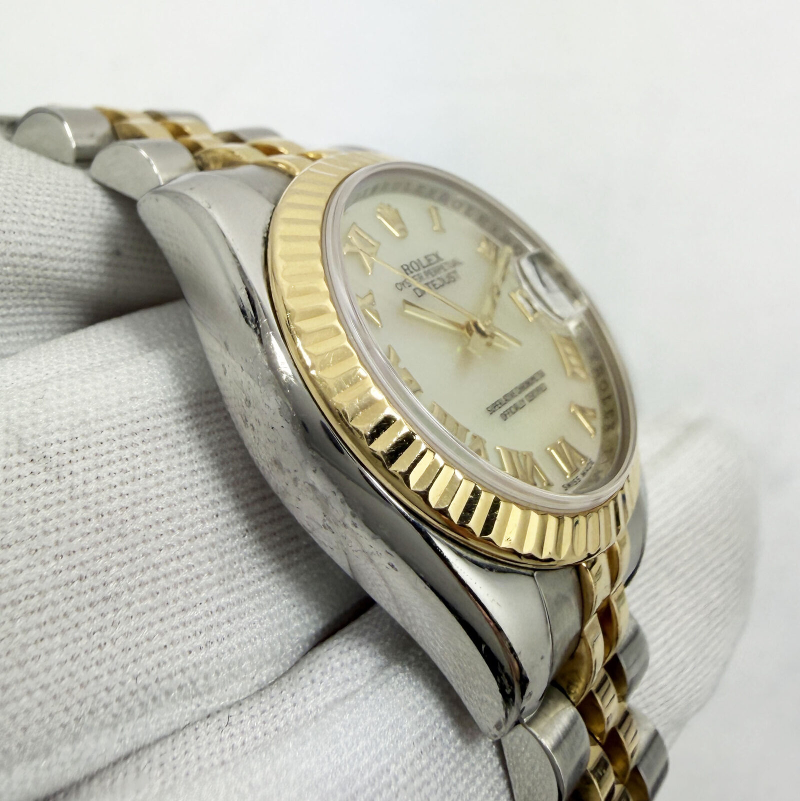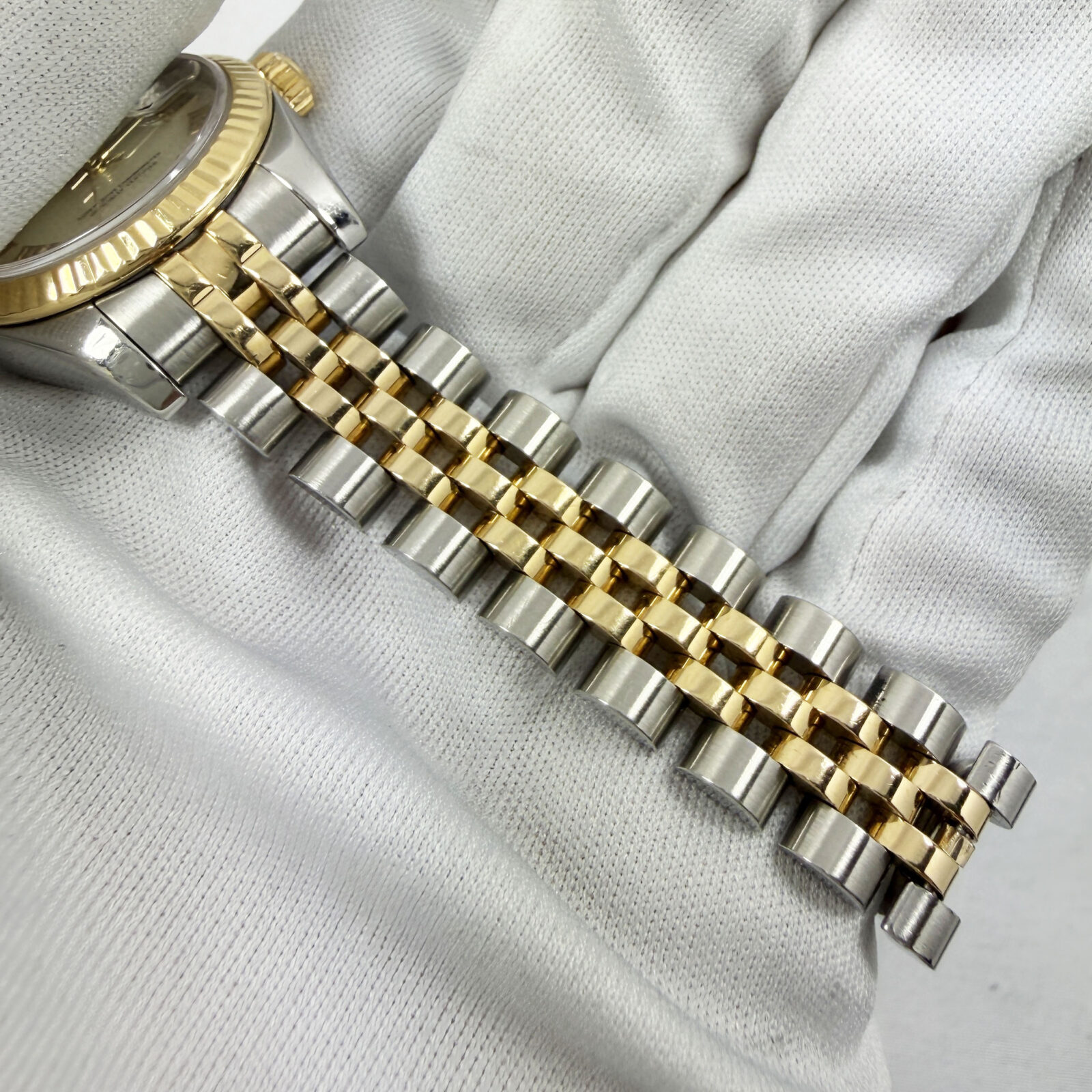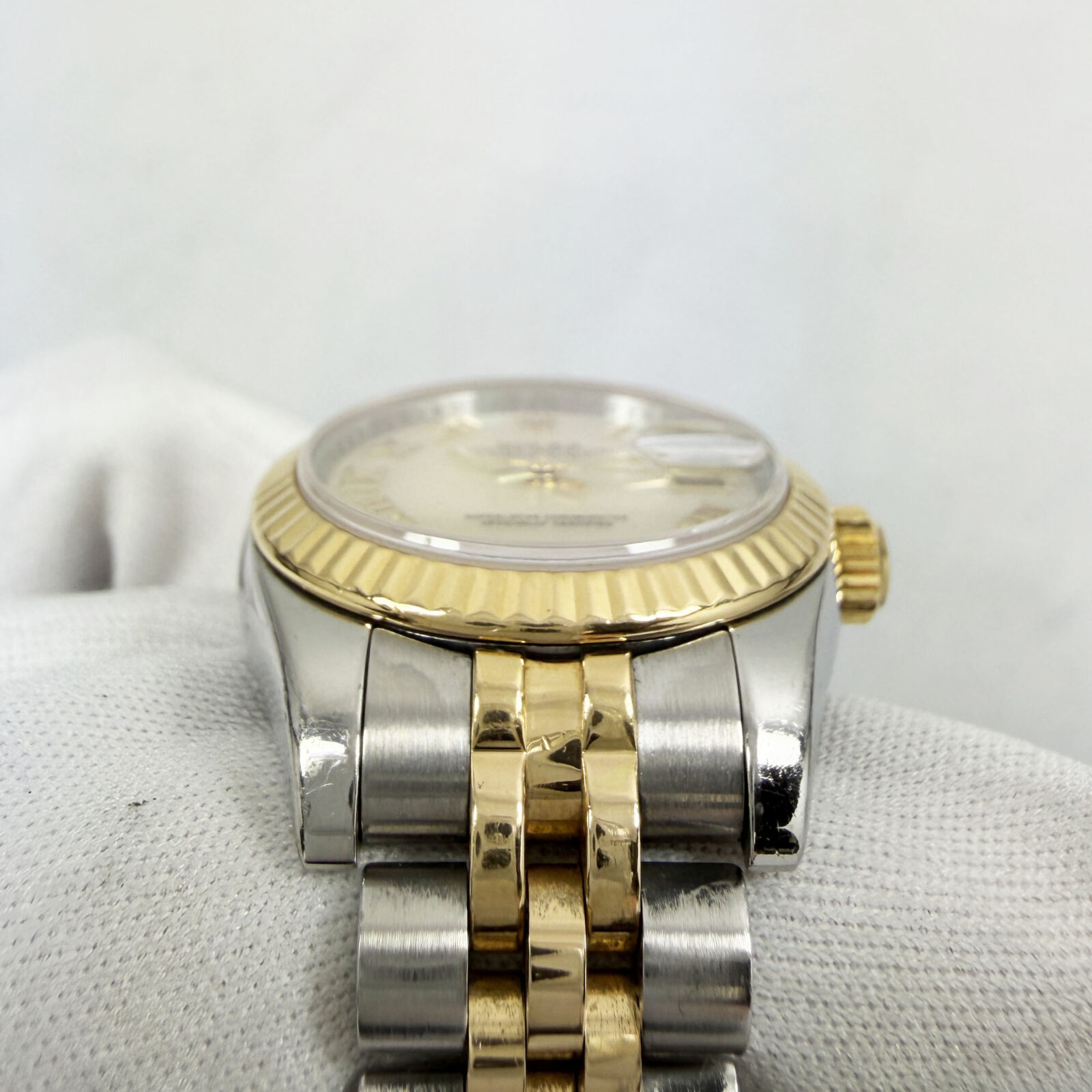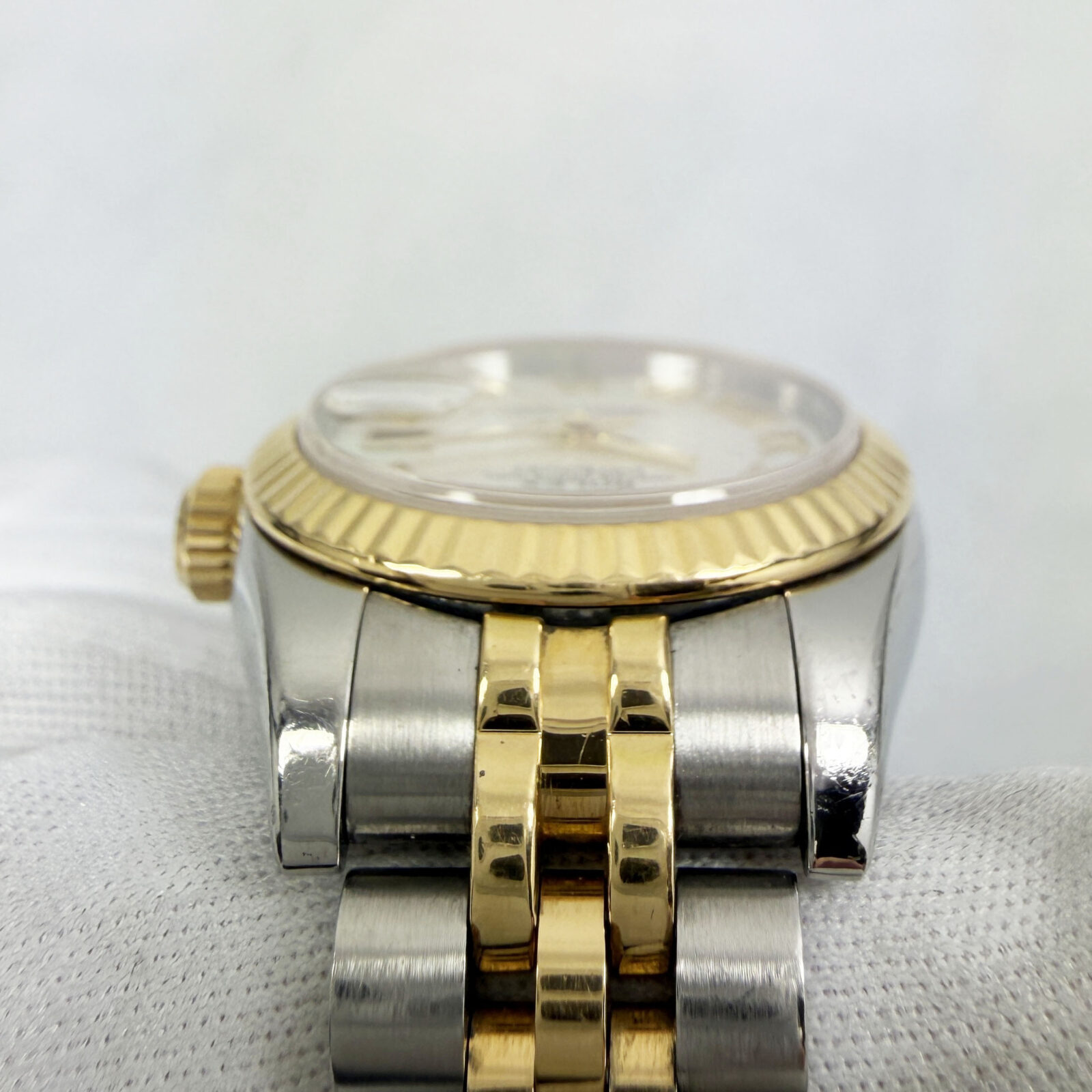 This Rolex Lady-Datejust watch comes with its booklets, hangtags, service papers, extra links, and warranty booklets dated June, 2007. The photos shown are of the exact watch being sold and accurately represent its condition. This watch is in stock and ready t...