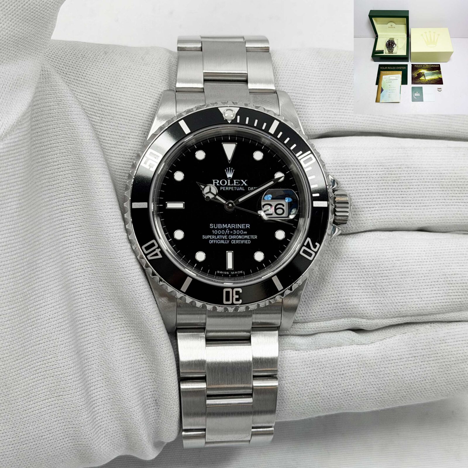 This Rolex Submariner Date watch comes with its box, booklets, service card, hangtag, extra link, and warranty paper dated March, 2007. This watch was serviced in 2025 and is still under factory warranty. The photos shown are of the exact watch being sold and ...