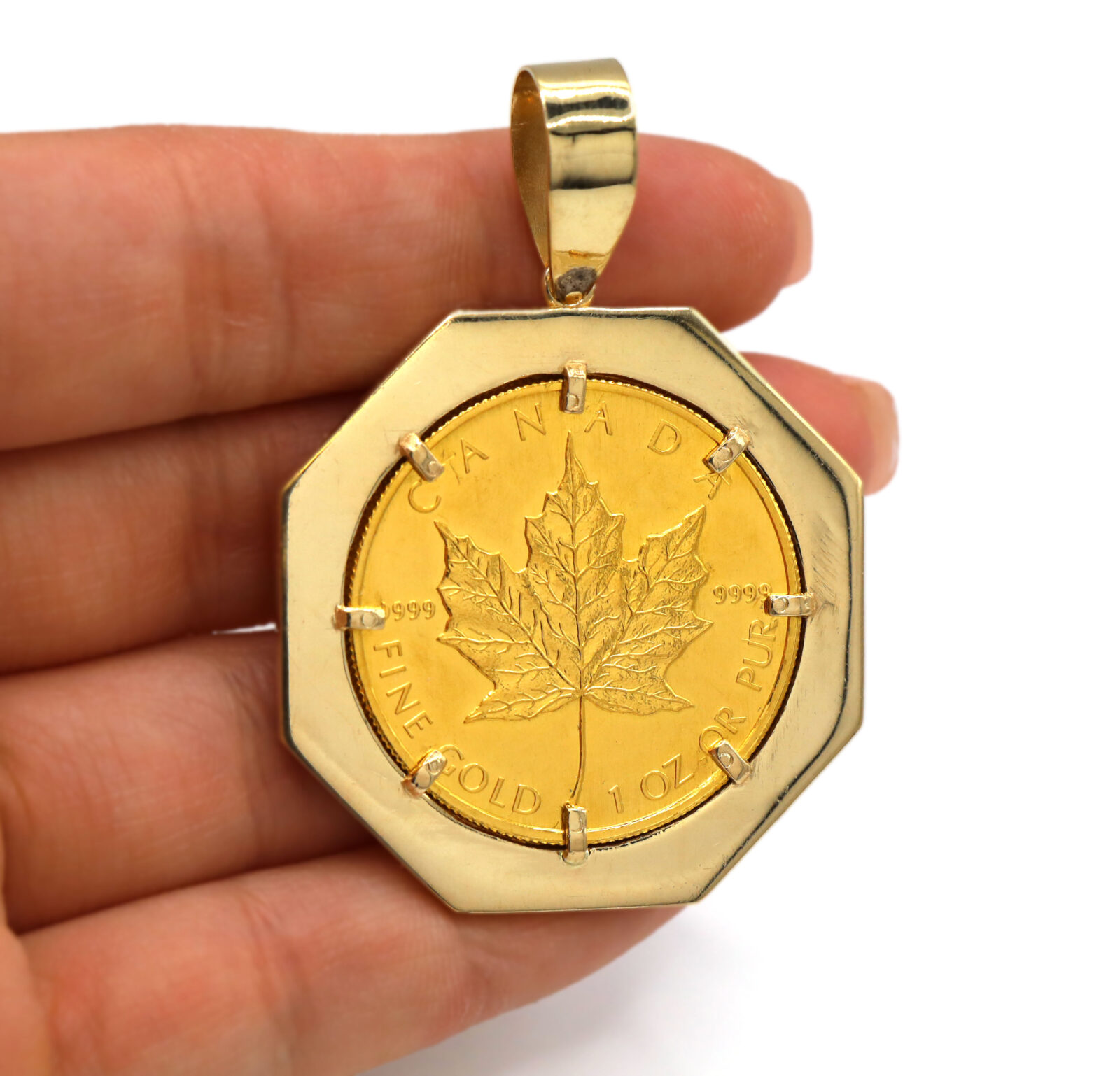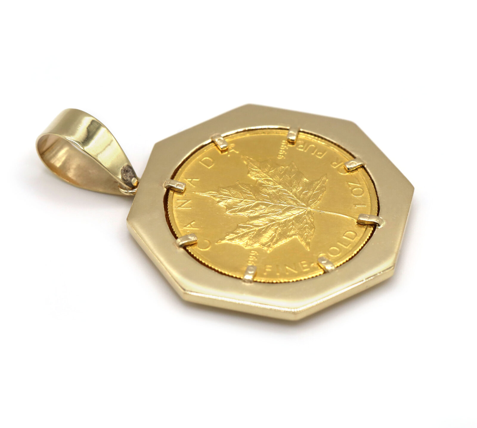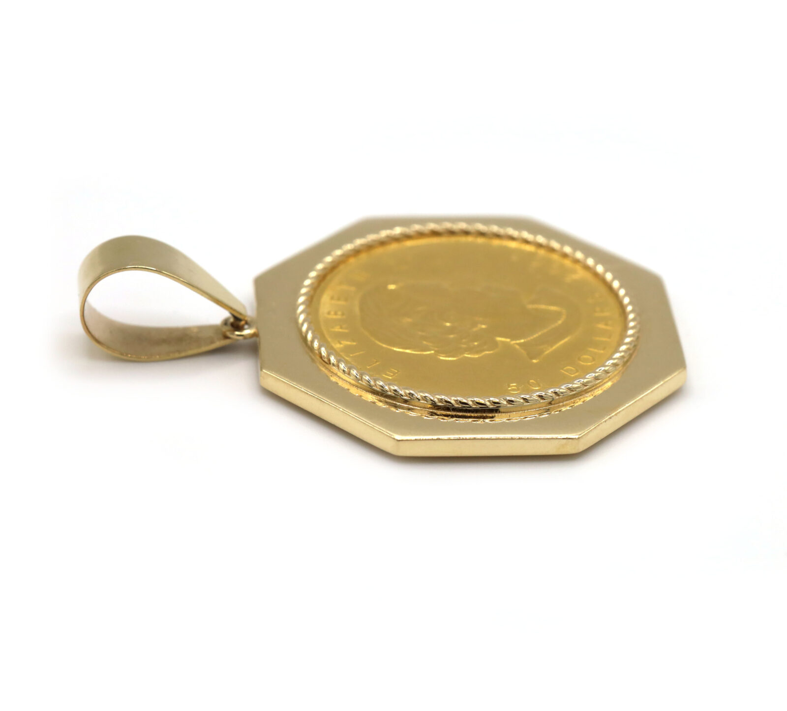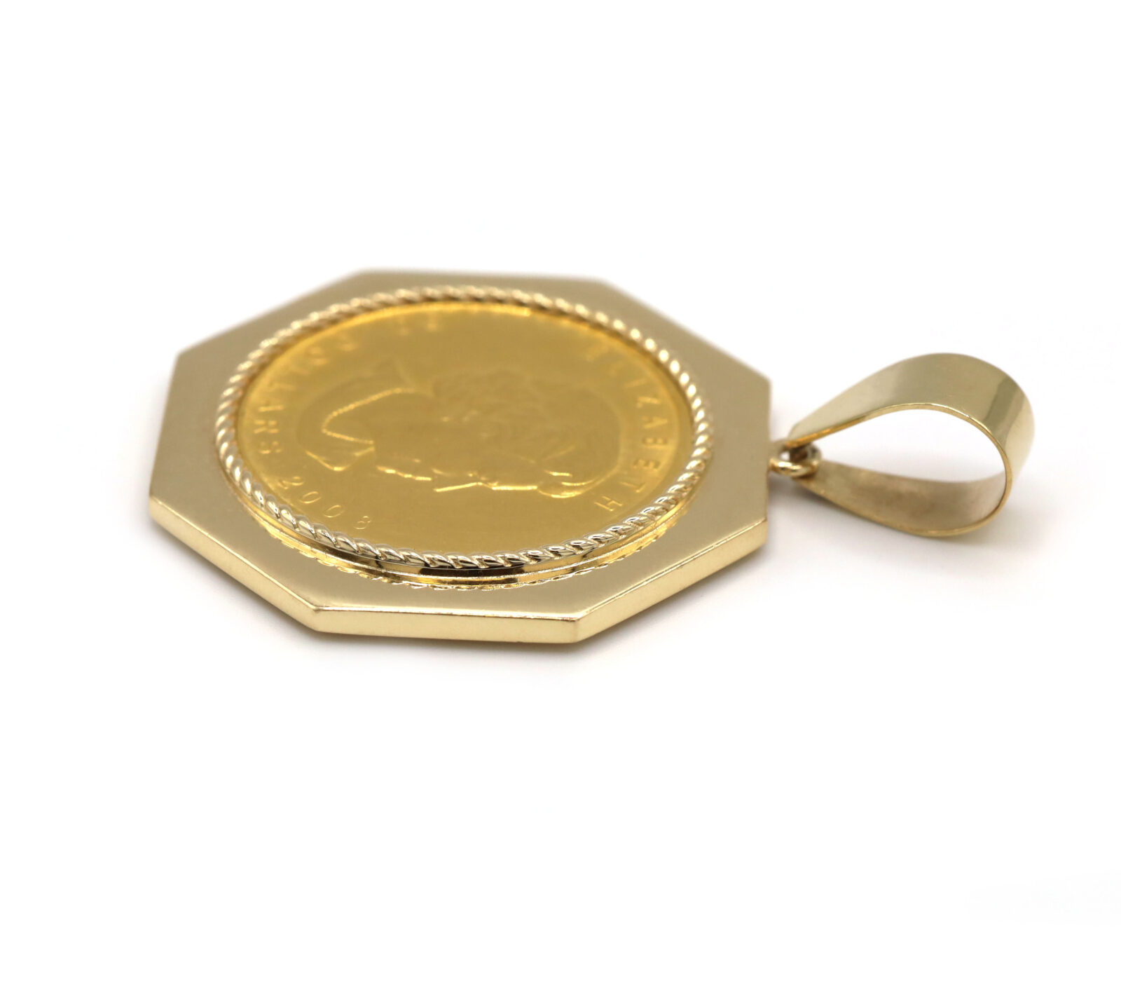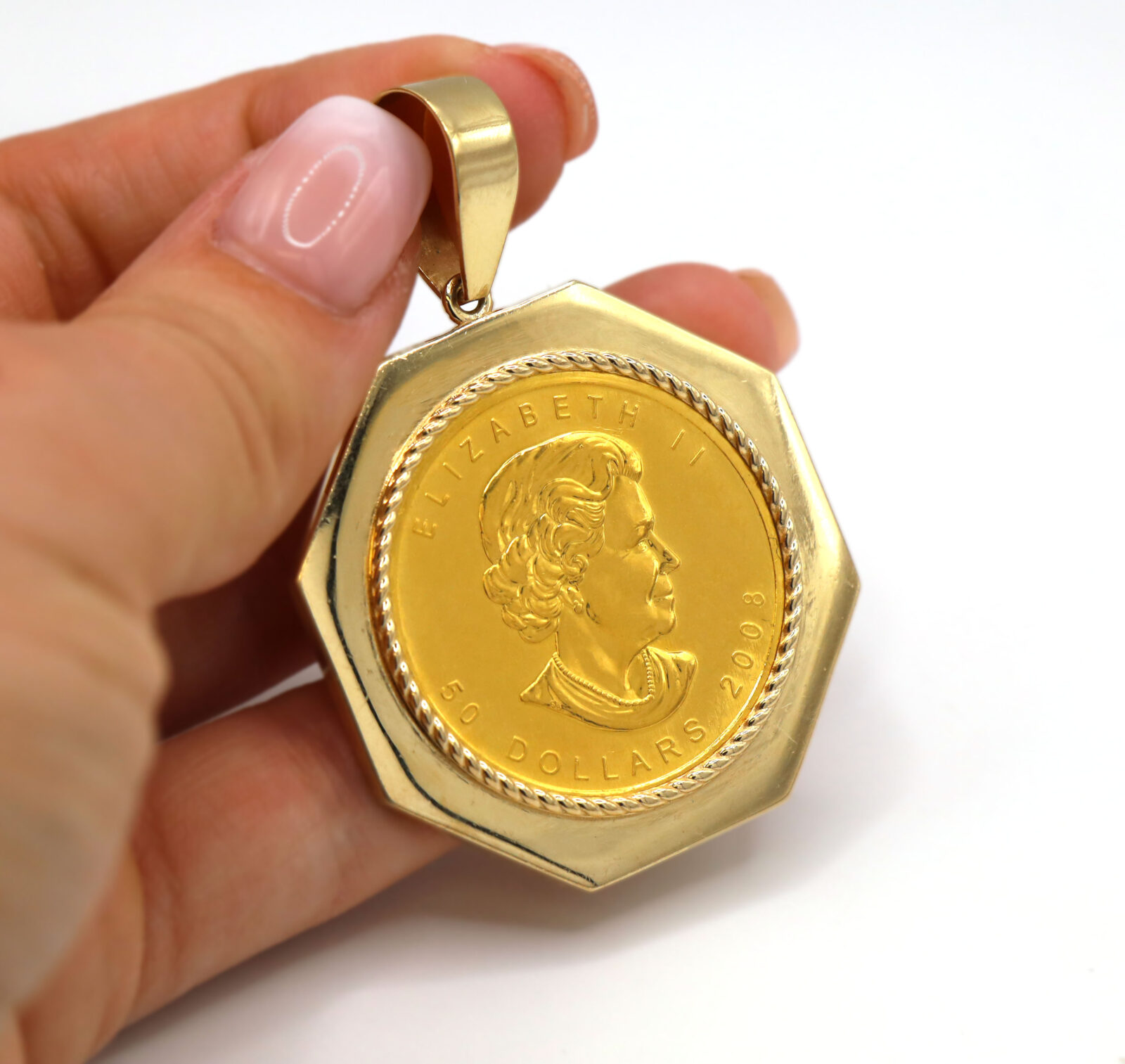 2008 $50 Canadian 1 Oz Coin Maple Leaf Elizabeth II Coin 14K Gold Bezel Pendant