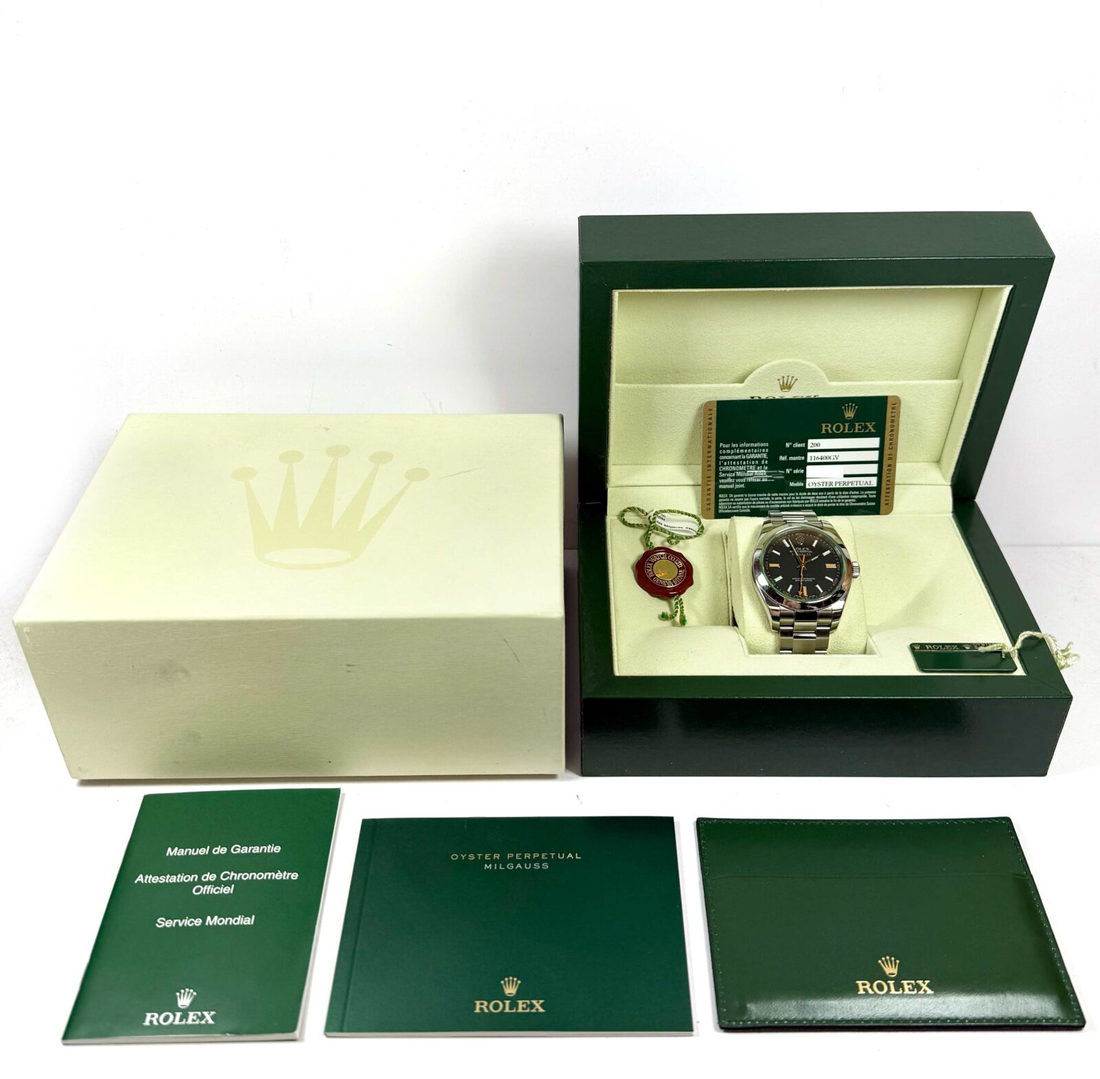 2008 Rolex Milgauss 116400GV 40MM Black Dial Green Crystal Box Papers V-Serial