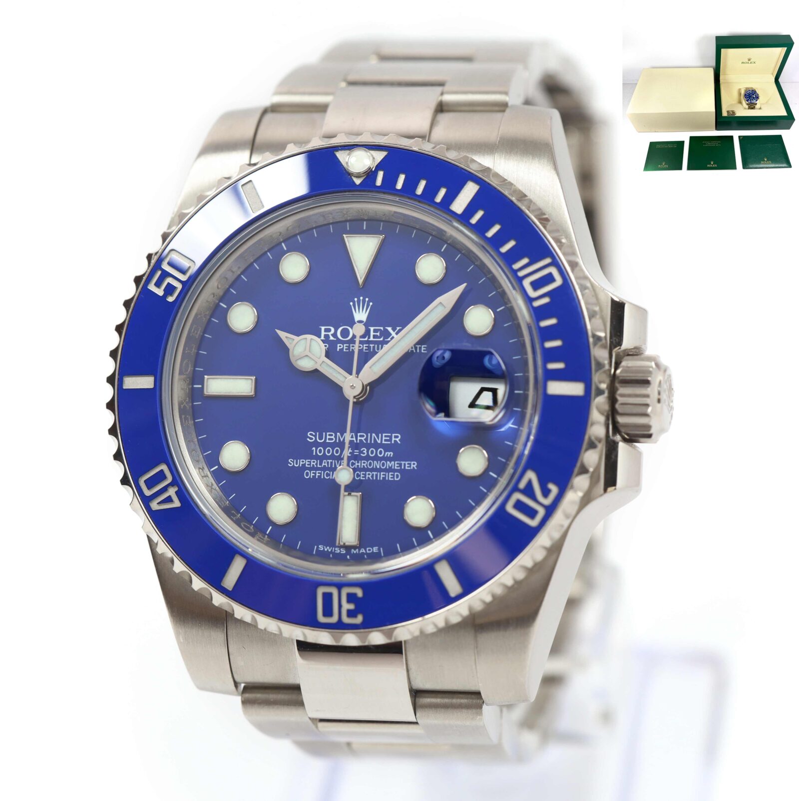 2008 Rolex Submariner Smurf 116619LB 40MM 18K Wg Blue Box Booklets M-Serial