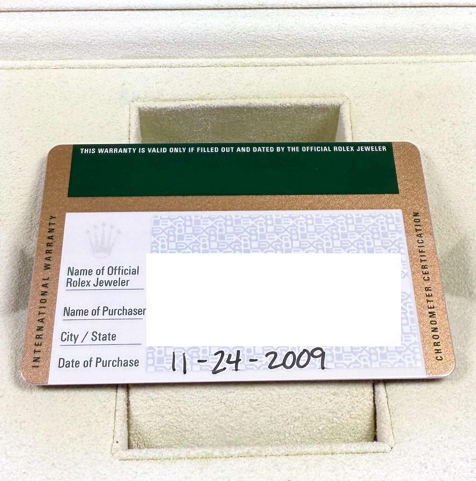 Read Morethis rolex is in excellent overall condition showing some light signs of surface wear consistent with preowned watches. This comes with its box, booklets, and warranty card dated november 24th, 2009 as shown in the pictures attached. This watch is in stock and available to ship immediately!