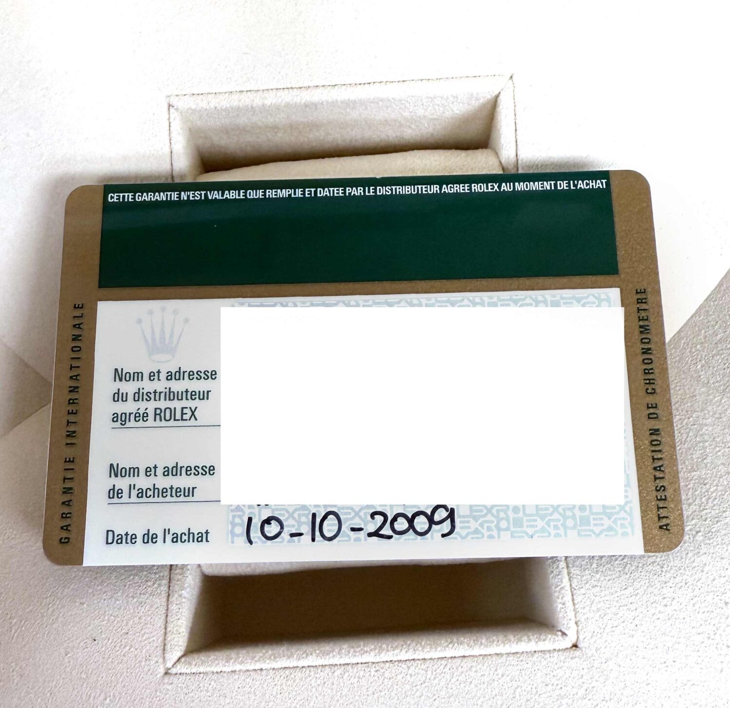 THIS ROLEX IS IN EXCELLENT OVERALL CONDITION SHOWING SOME LIGHT SIGNS OF SURFACE WEAR CONSISTENT WITH PREOWNED WATCHES. THIS COMES WITH ITS BOX, BOOKLETS, SPARE LINK, RED HANG TAG, AND WARRANTY CARD DATED OCTOBER 10TH, 2009 AS SHOWN IN THE PICTURES ATTACHED...