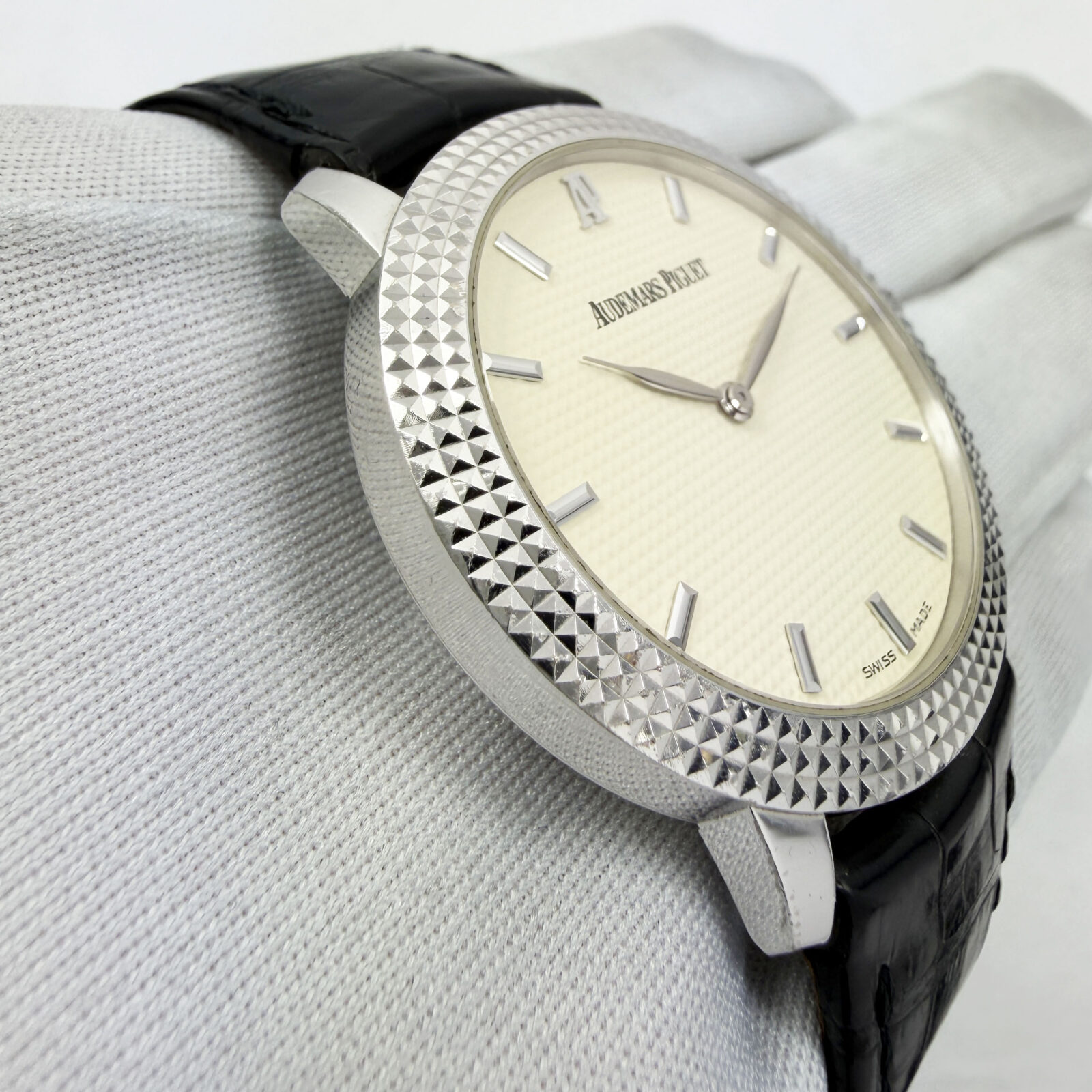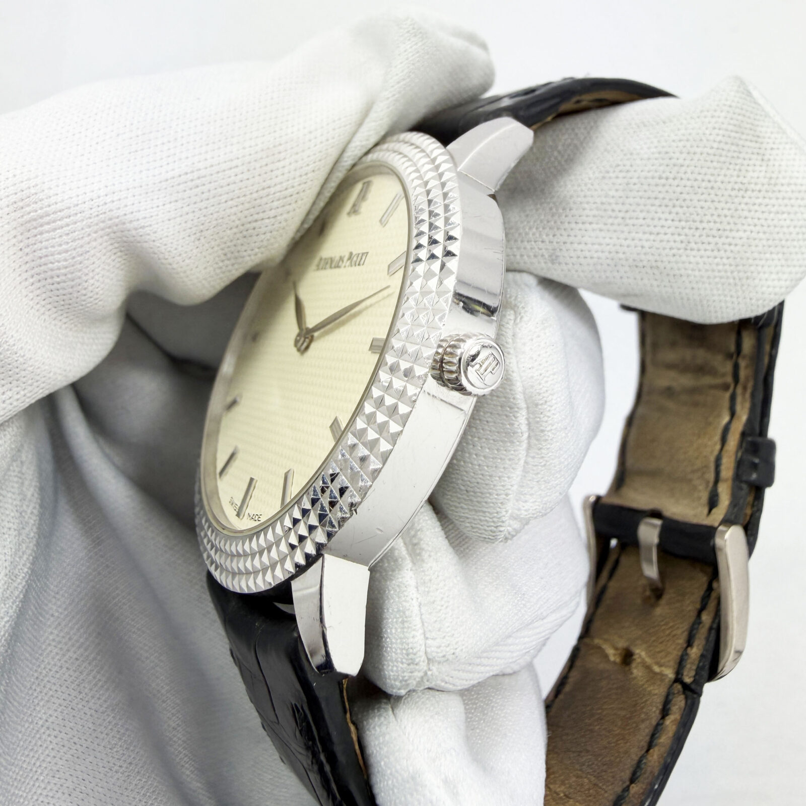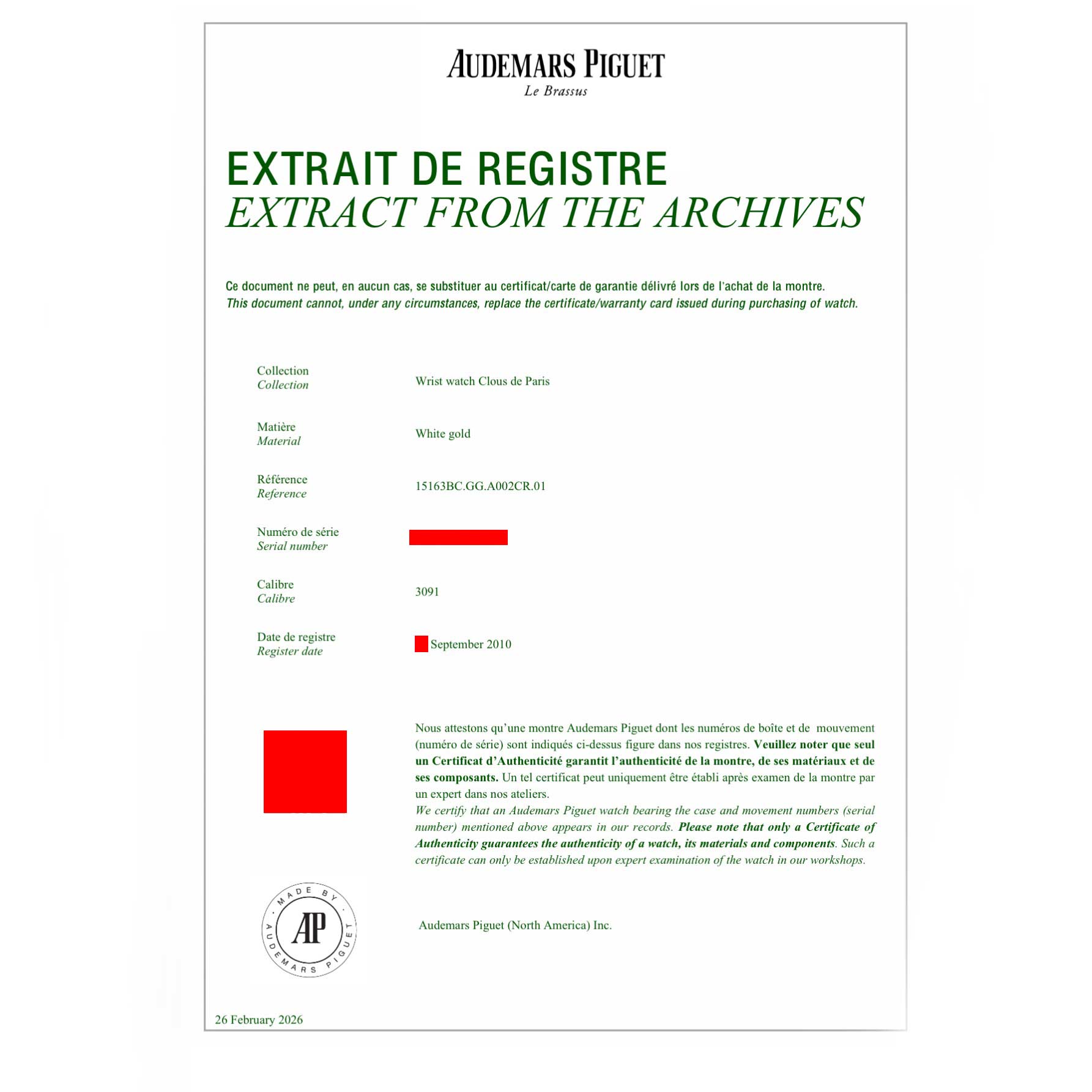 This Audemars Piguet Classique watch comes with its box and archive paper dated September, 2010. The photos shown are of the exact watch being sold and accurately represent its condition. This watch is in stock and ready to ship immediately!
