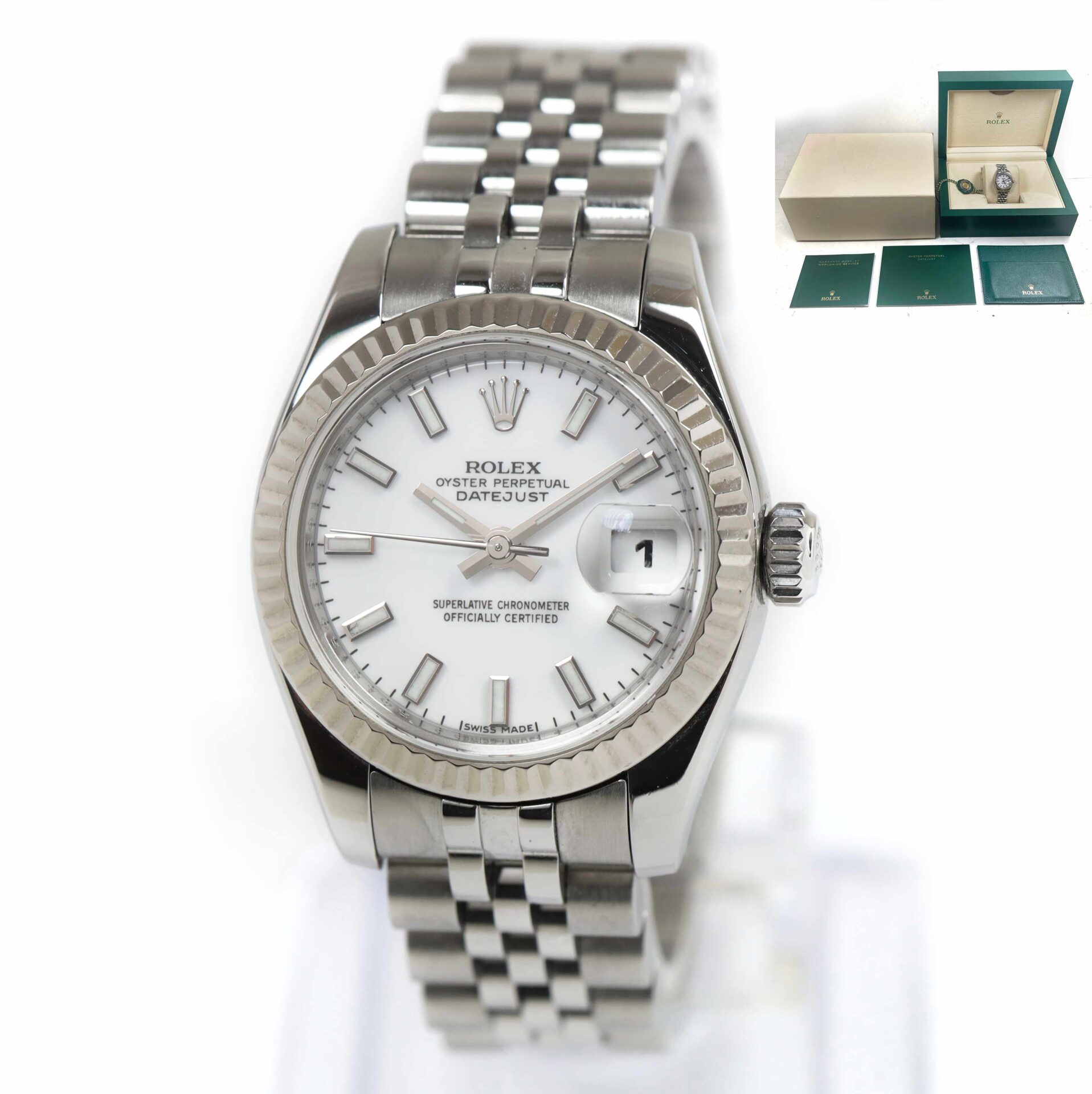 THIS ROLEX IS IN GREAT CONDITION AND COMES WITH ITS BOX AND BOOKLETS ONLY AS SHOWN IN THE PICTURES ATTACHED. THIS WATCH HAS A SERIAL NUMBER BEGINNING WITH G WHICH DATES THE YEAR OF PRODUCTION TO BE APPROXIMATELY 2010. THIS WATCH IS IN STOCK AND AVAILABLE TO...