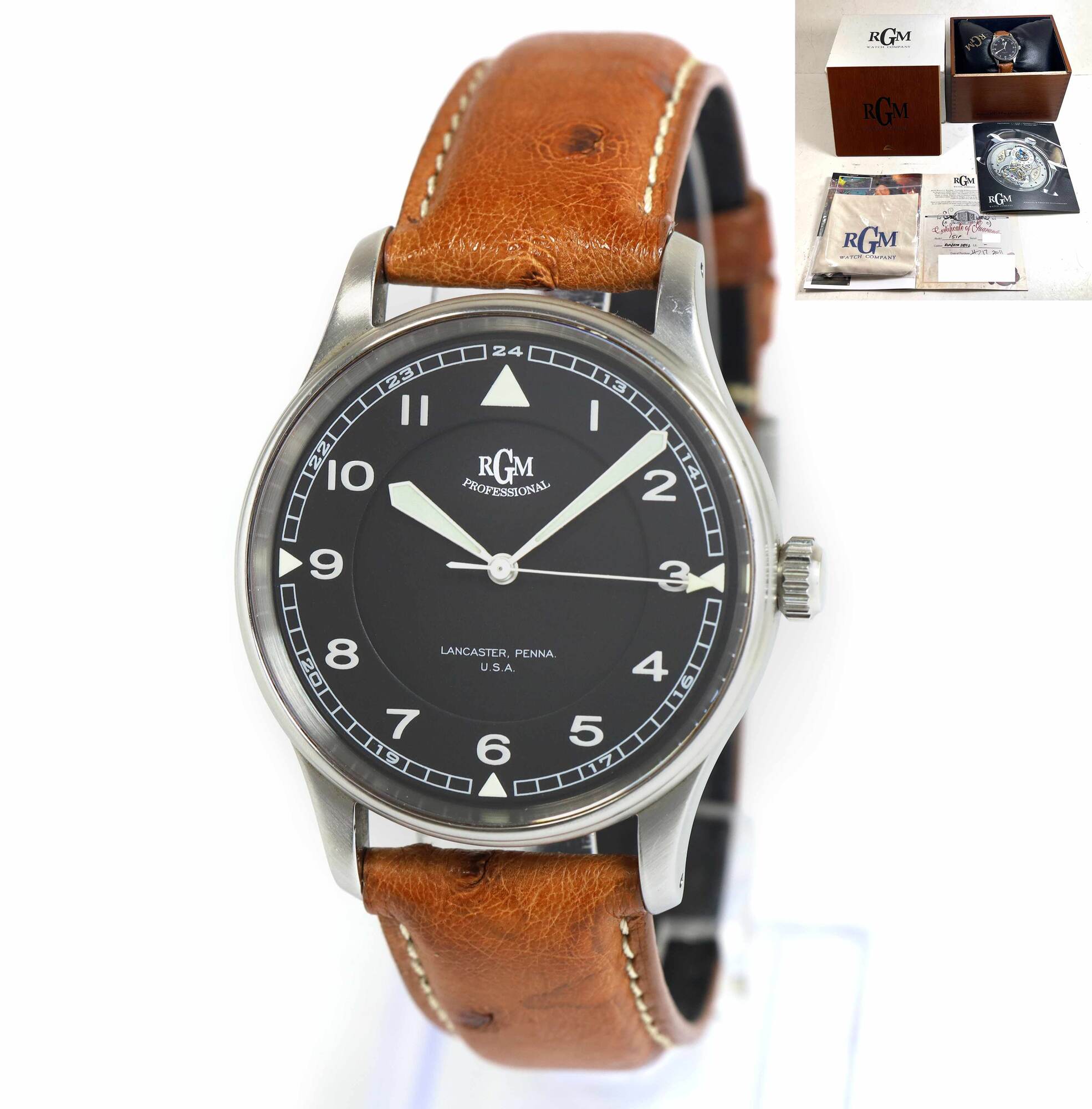 Read Morethis rgm watch is in excellent condition showing some minor signs of wear on the case consistent with preowned watches. This comes with its box, booklets, and warranty paper dated november 17th, 2011 as shown in the pictures attached. This watch is in stock and available to ship immediately!