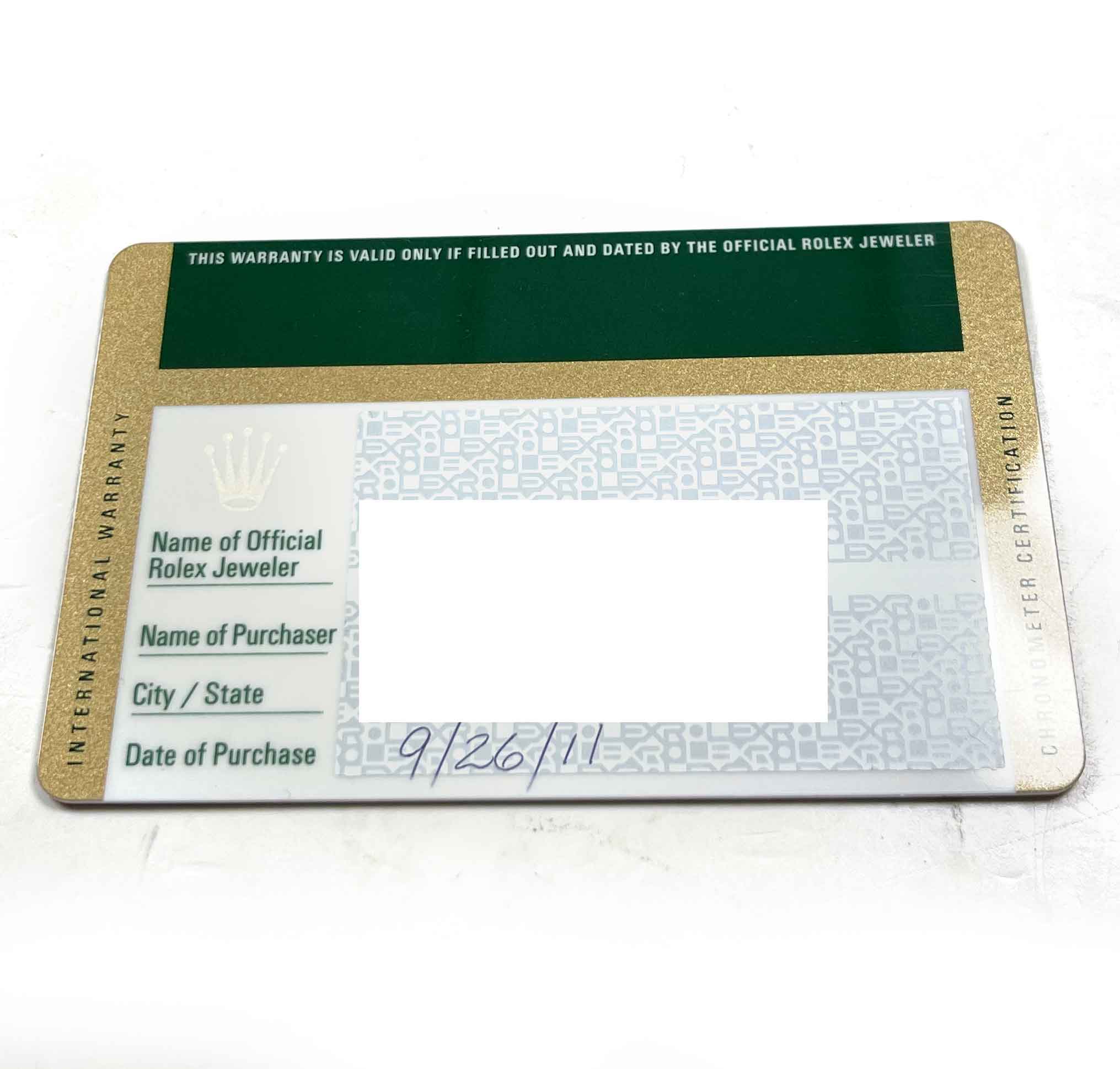 this rolex is in excellent overall condition and comes with its box, booklets, both hang tags, and warranty card dated september 26th, 2011 as shown in the pictures attached. This watch is in stock and available to ship immediately!