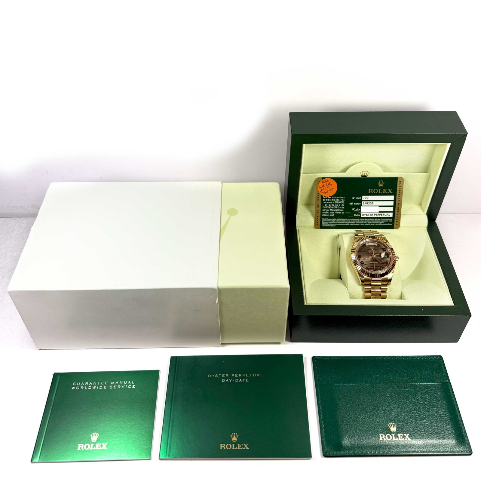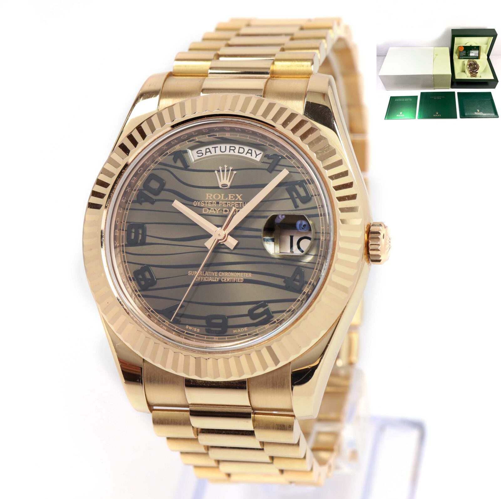 2012 Rolex Day-Date II President Chocolate Wave 218235 41MM 18K Rg Box Papers