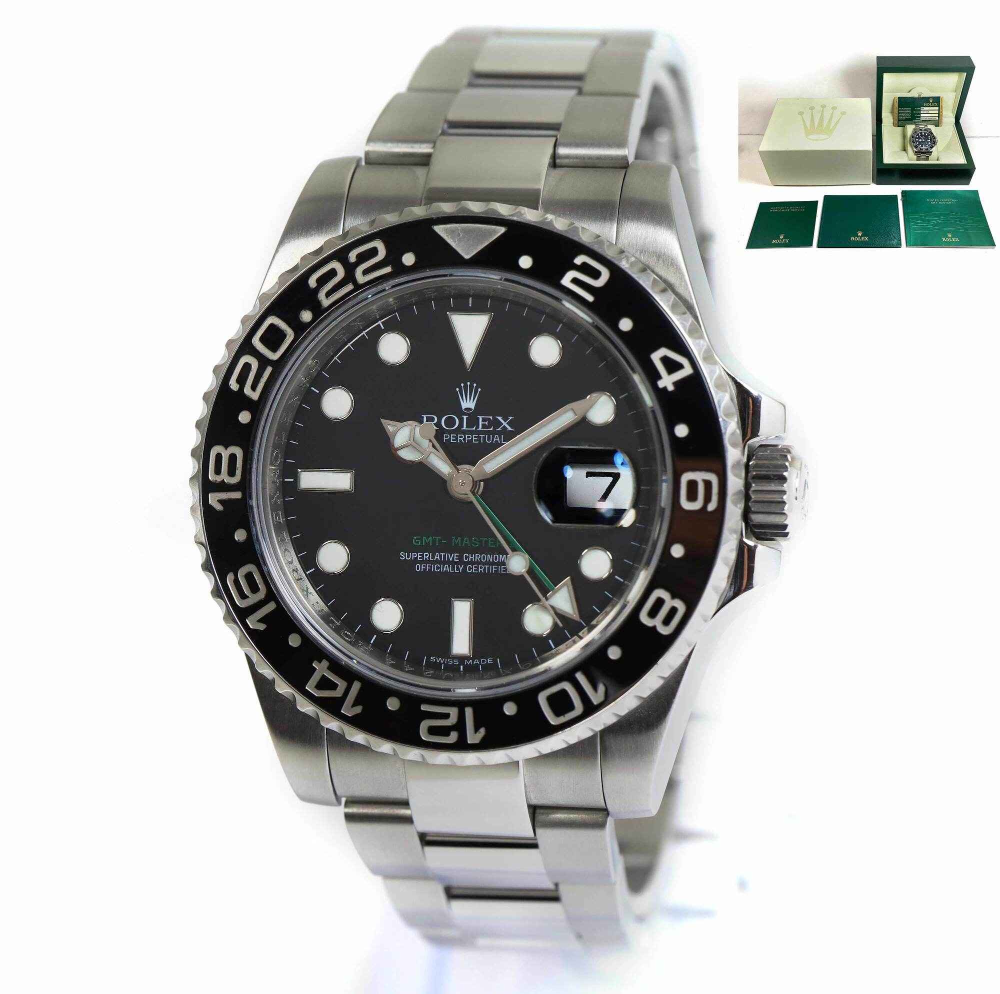 Read Morethis rolex is in good overall condition showing some minor signs of surface wear consistent with preowned watches. This comes with its box, booklets, and warranty card dated january 2nd, 2012 as shown in the pictures attached. The warranty card for this watch is slightly peeling in the corner. This watch is in stock and available to ship immediately!