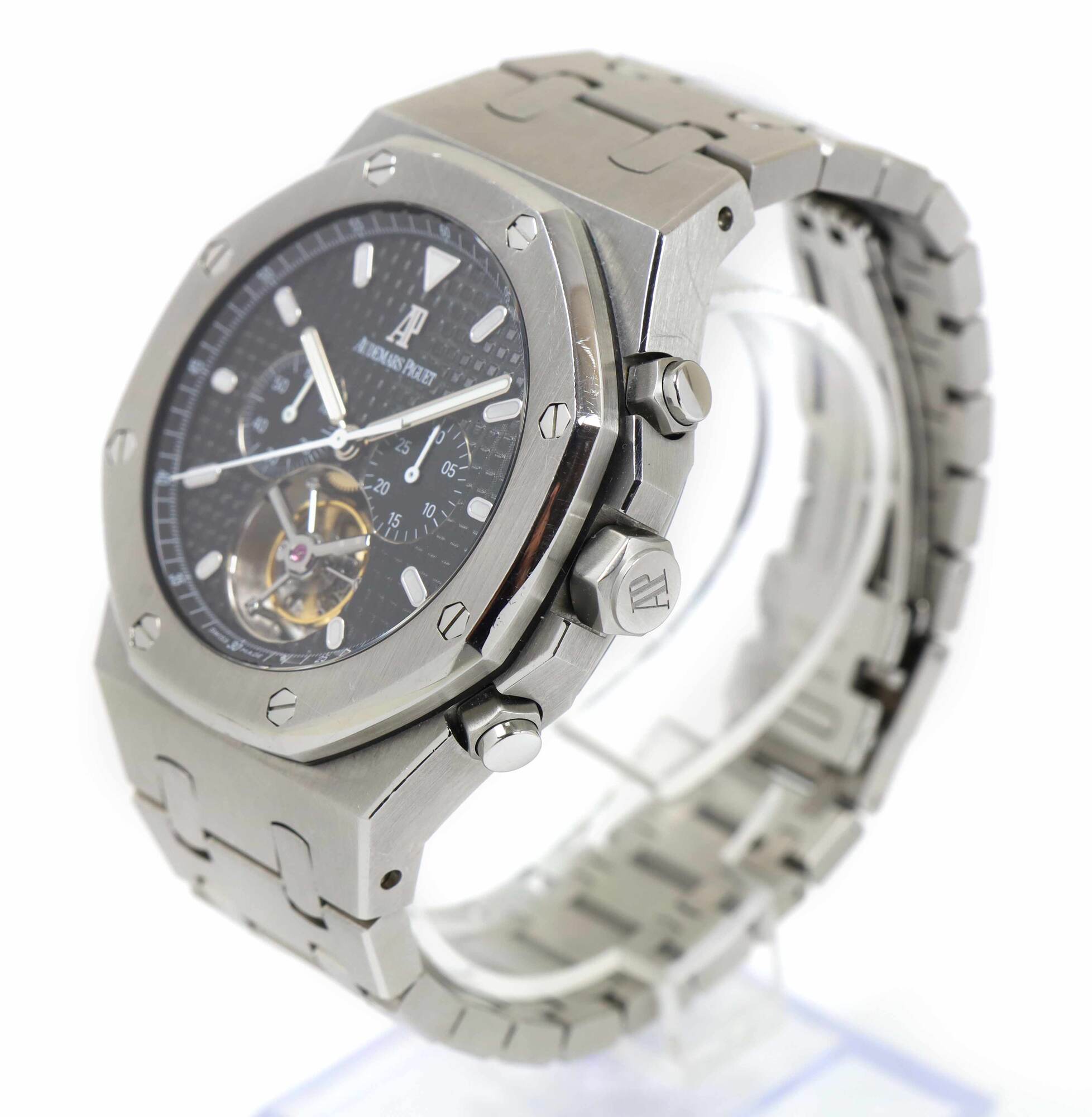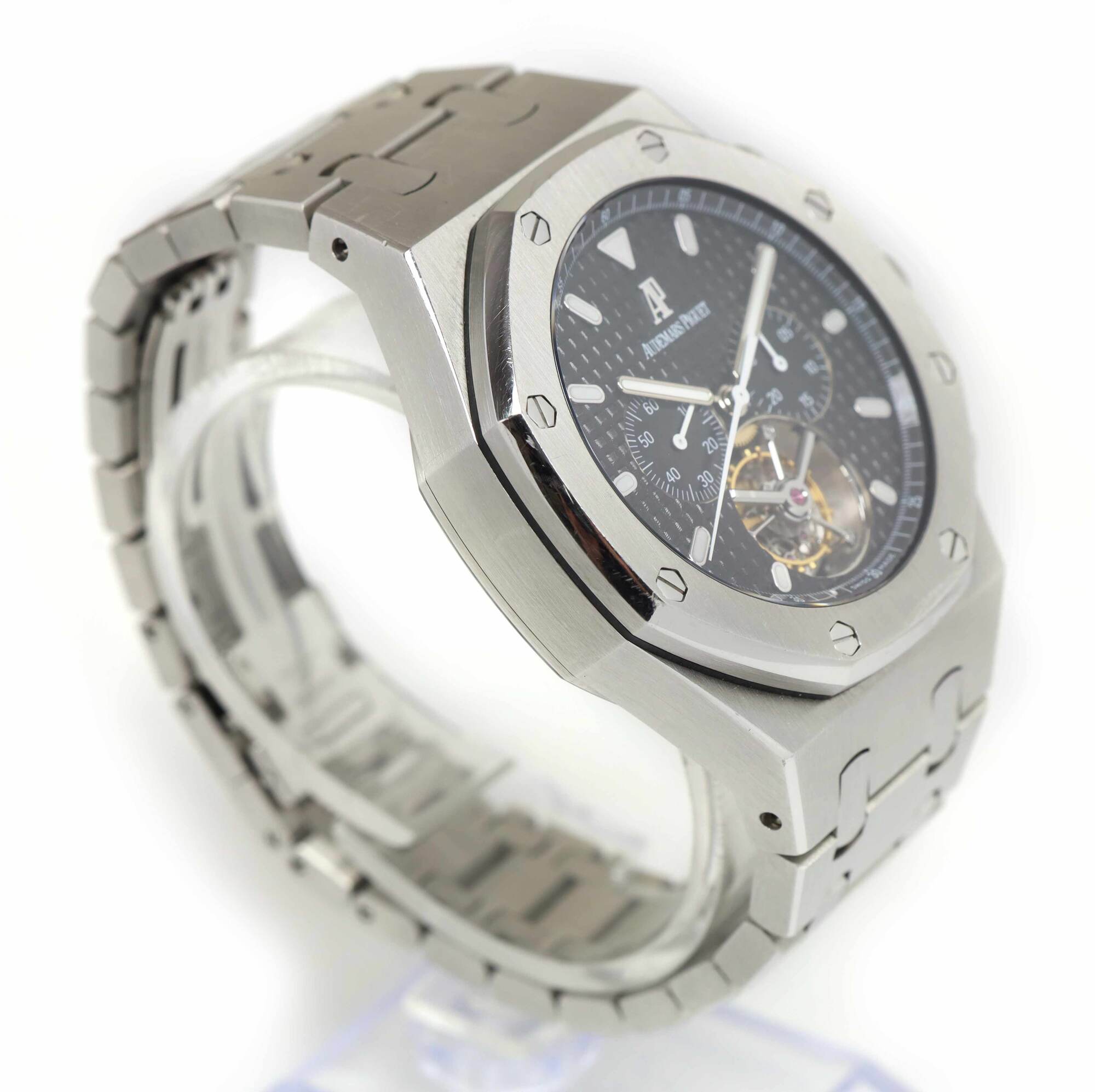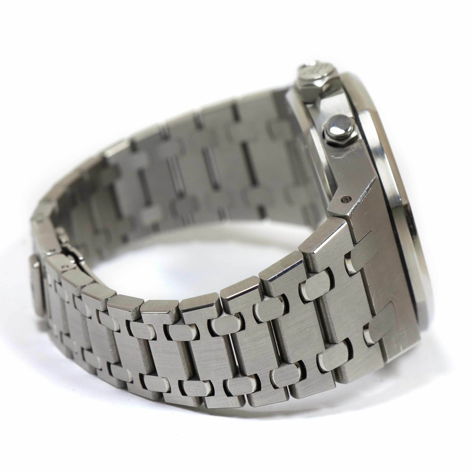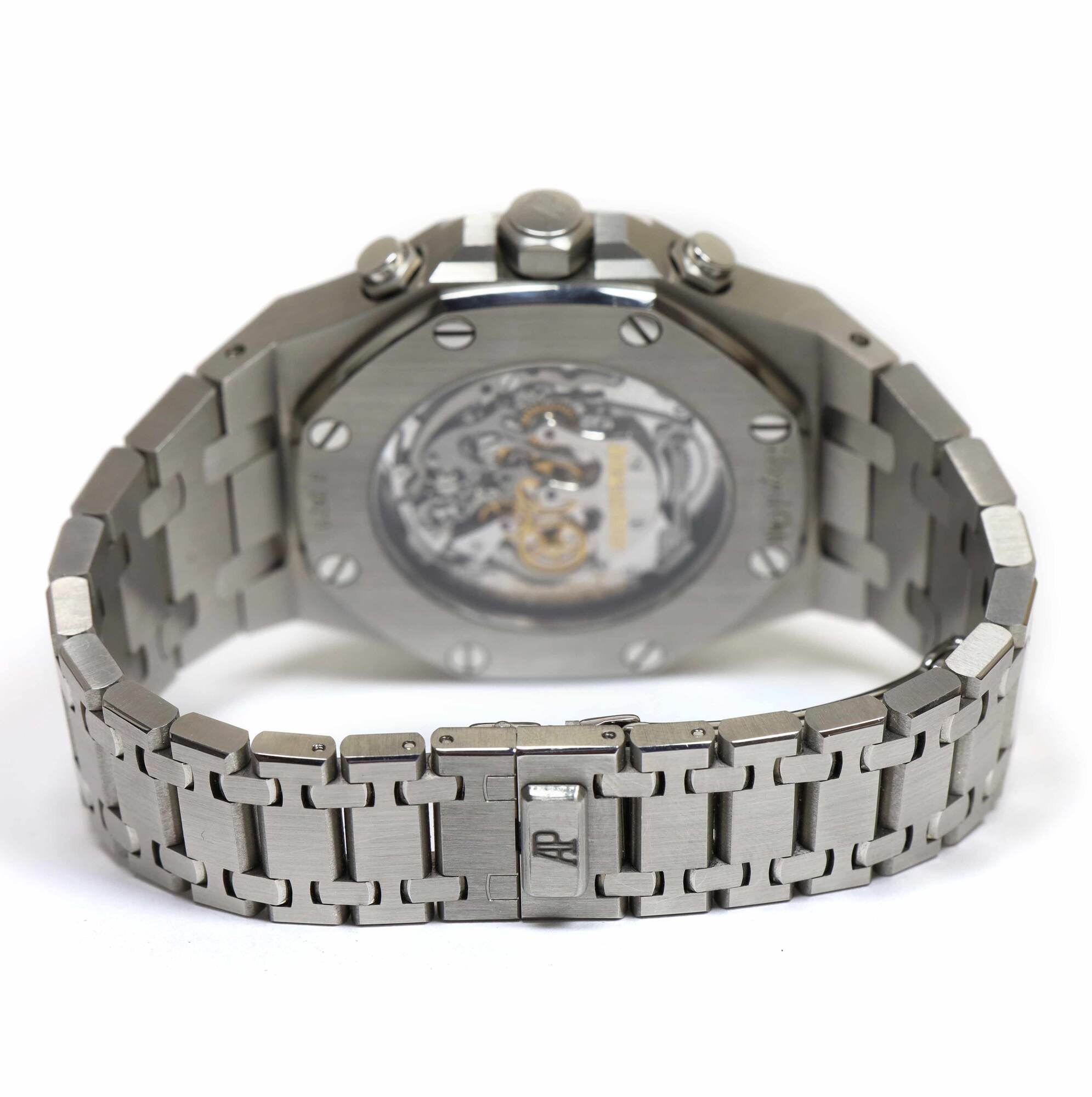 THIS AUDEMARS PIGUET IS IN GREAT CONDITION SHOWING SOME NORMAL SIGNS OF WEAR ON THE CASE AND BRACELET CONSISTENT WITH PREOWNED WATCHES. THIS COMES WITH ITS BOX, BOOKLETS, SPARE LINKS, TWO ADDITIONAL STRAP, AND WARRANTY PAPER DATED OCTOBER 6TH, 2013 AS SHOWN...