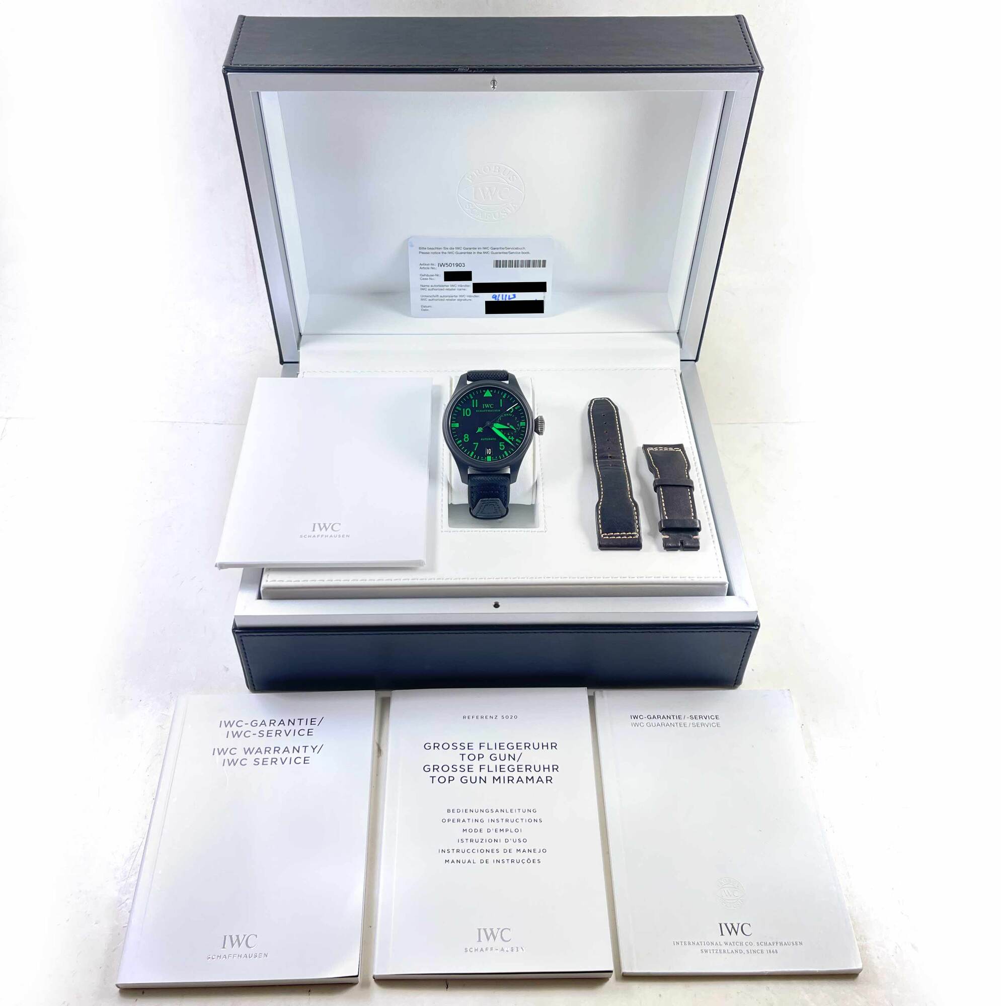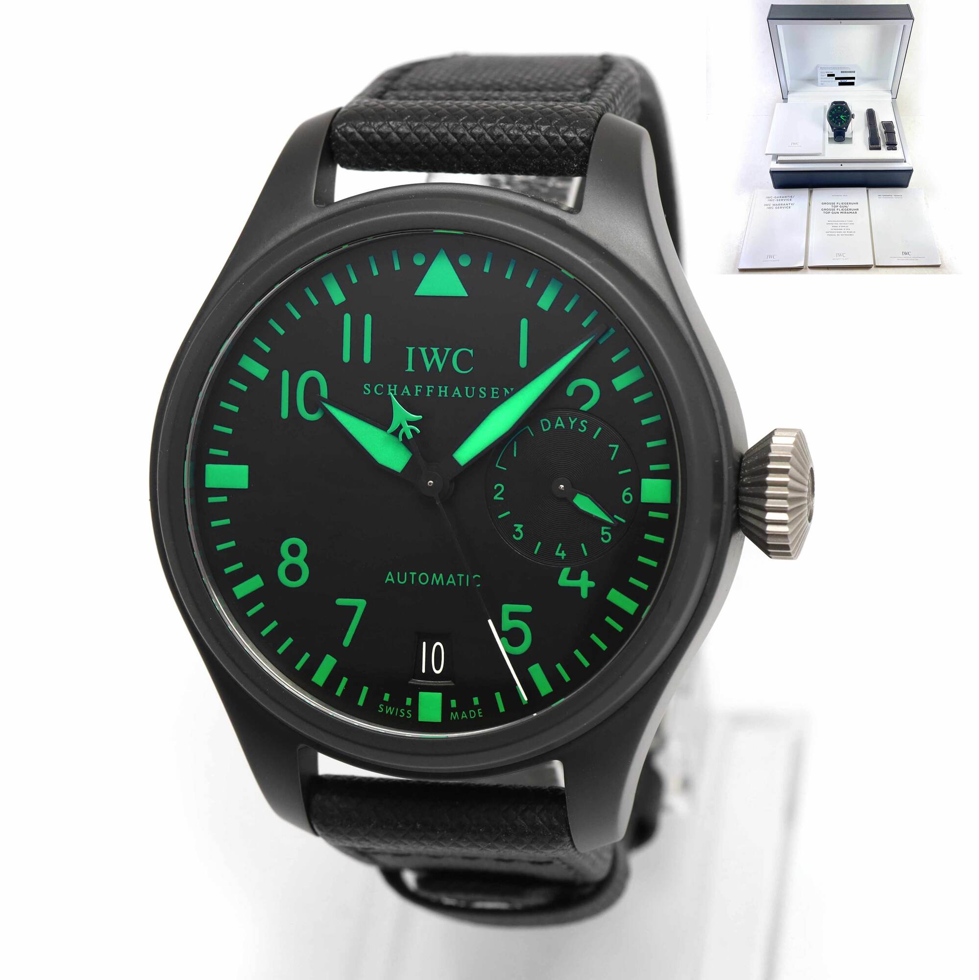 THIS IWC IS IN GREAT OVERALL CONDITION SHOWING SOME NORMAL SIGNS OF WEAR ON THE CASE CONSISTENT WITH PREOWNED WATCHES. THIS COMES WITH ITS BOX, BOOKLETS, ONE ADDITIONAL BROWN LEATHER STRAP, AND WARRANTY CARD DATED SEPTEMBER 1ST, 2013. THIS WATCH IS IN STOCK...
