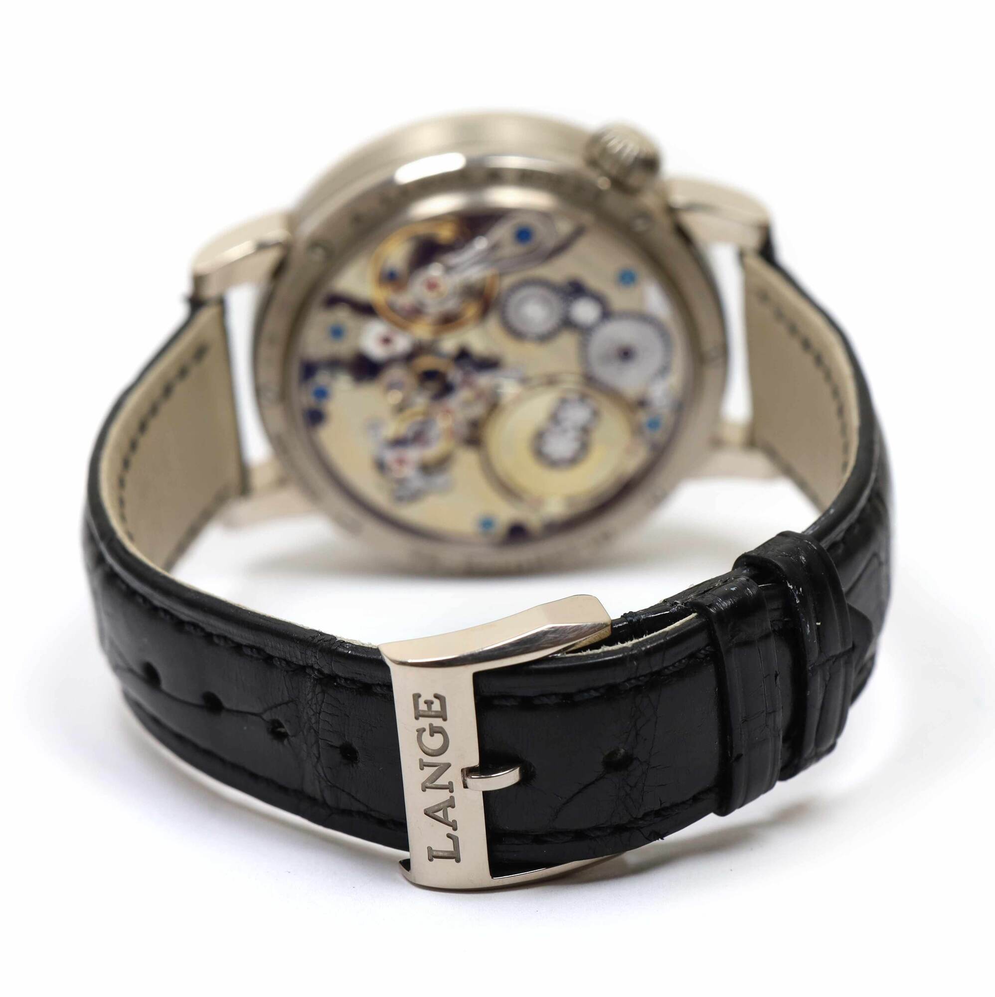 THIS A. LANGE WATCH IS IN GREAT OVERALL CONDITION SHOWING SOME NORMAL SIGNS OF WEAR ON THE CASE CONSISTENT WITH PREOWNED WATCHES. THIS COMES WITH ITS BOX, BOOKLETS, AND WARRANTY PAPER DATED JUNE 20TH, 2014 AS SHOWN IN THE PICTURES ATTACHED. THIS WATCH IS IN...