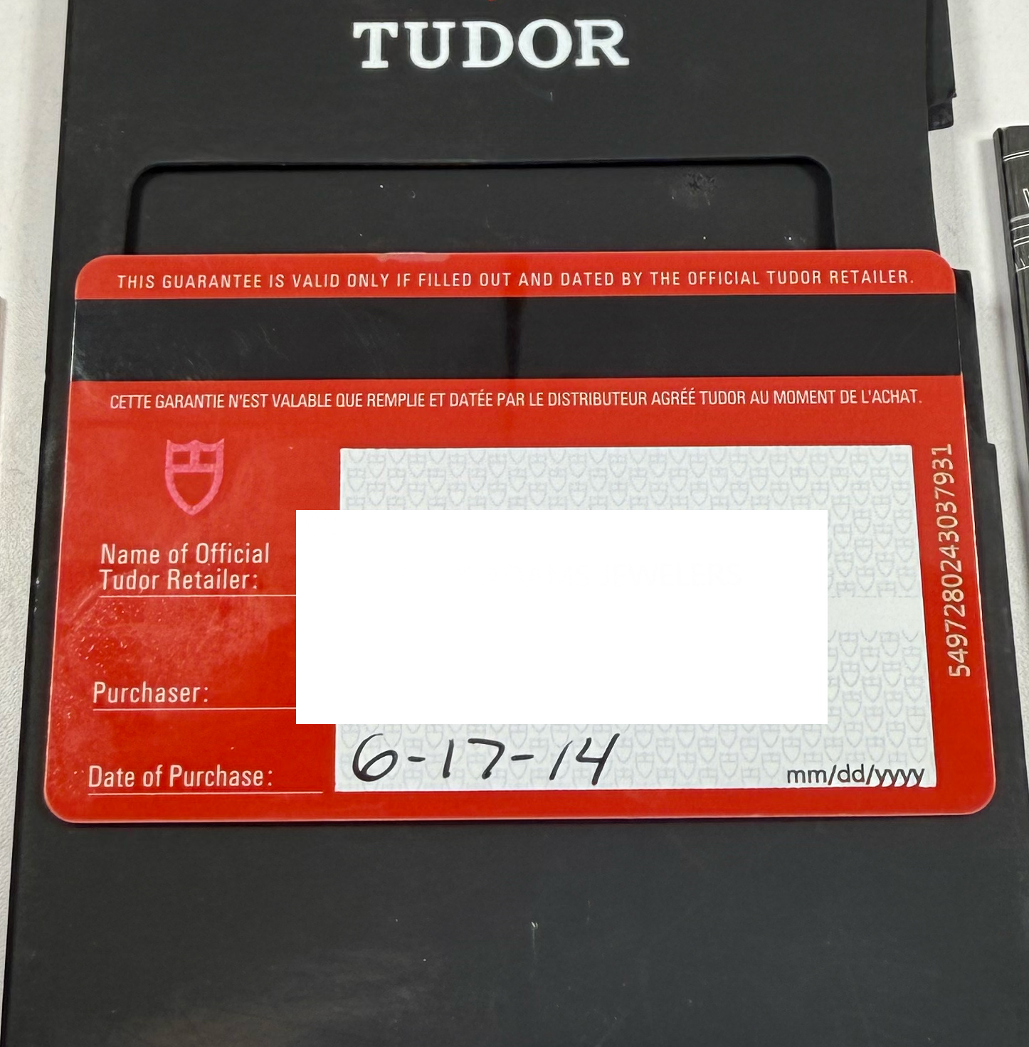 this tudor watch is in excellent overall condition showing some light signs of surface wear consistent with preowned watches. This comes with its box, booklets, hang tags, and warranty card dated june 17th, 2014 as shown in the pictures attached. This watch is in stock and available to ship immediately!