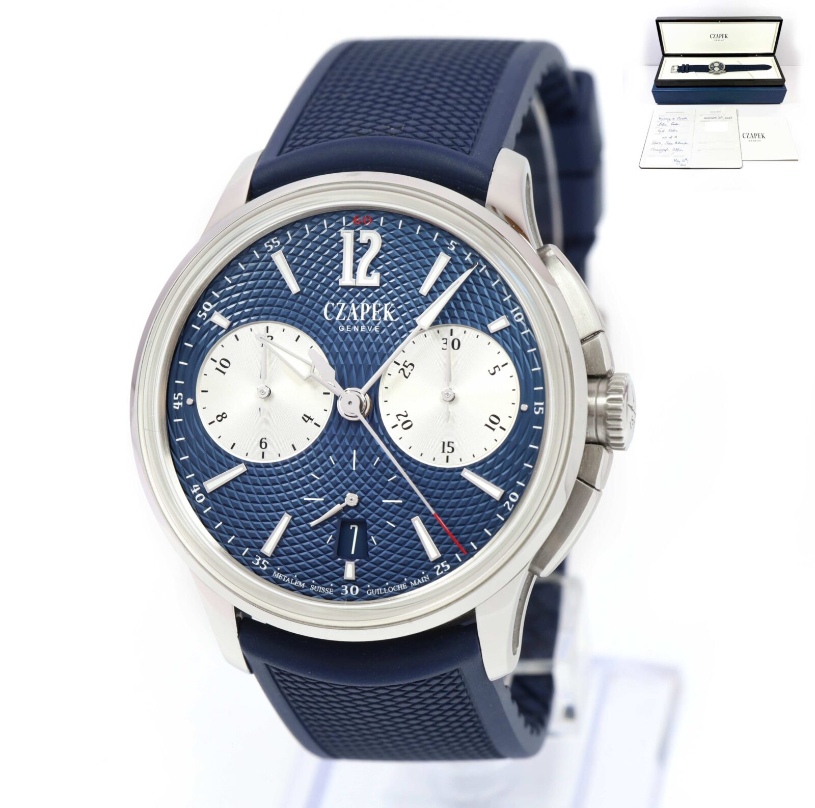 THIS CZAPEK WATCH IS IN EXCELLENT OVERALL CONDITION SHOWING SOME LIGHT SIGNS OF WEAR ON THE CASE CONSISTENT WITH PREOWNED WATCHES. THIS COMES WITH ITS BOX, BOOKLETS, AND WARRANTY PAPER DATED MAY 13TH, 2015 AS SHOWN IN THE PICTURES ATTACHED. THIS WATCH IS PA...
