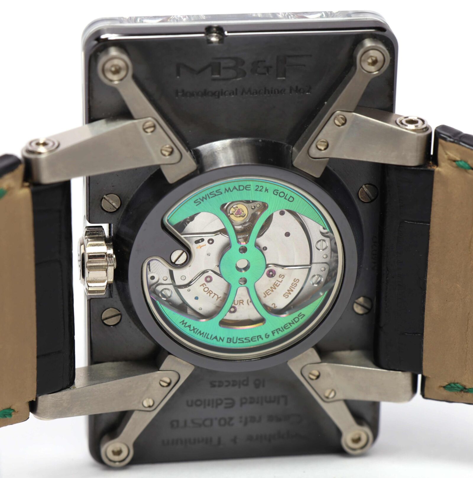 THIS MB&F WATCH IS IN EXCELLENT CONDITION AND COMES WITH ITS BOX, BOOKLETS, ONE ADDITIONAL STRAP, AND WARRANTY PAPER DATED JANUARY, 2015 AS SHOWN IN THE PICTURES ATTACHED. THIS WATCH IS IN STOCK AND AVAILABLE TO SHIP IMMEDIATELY!